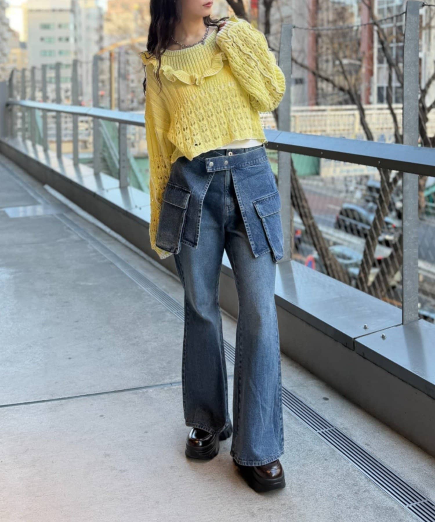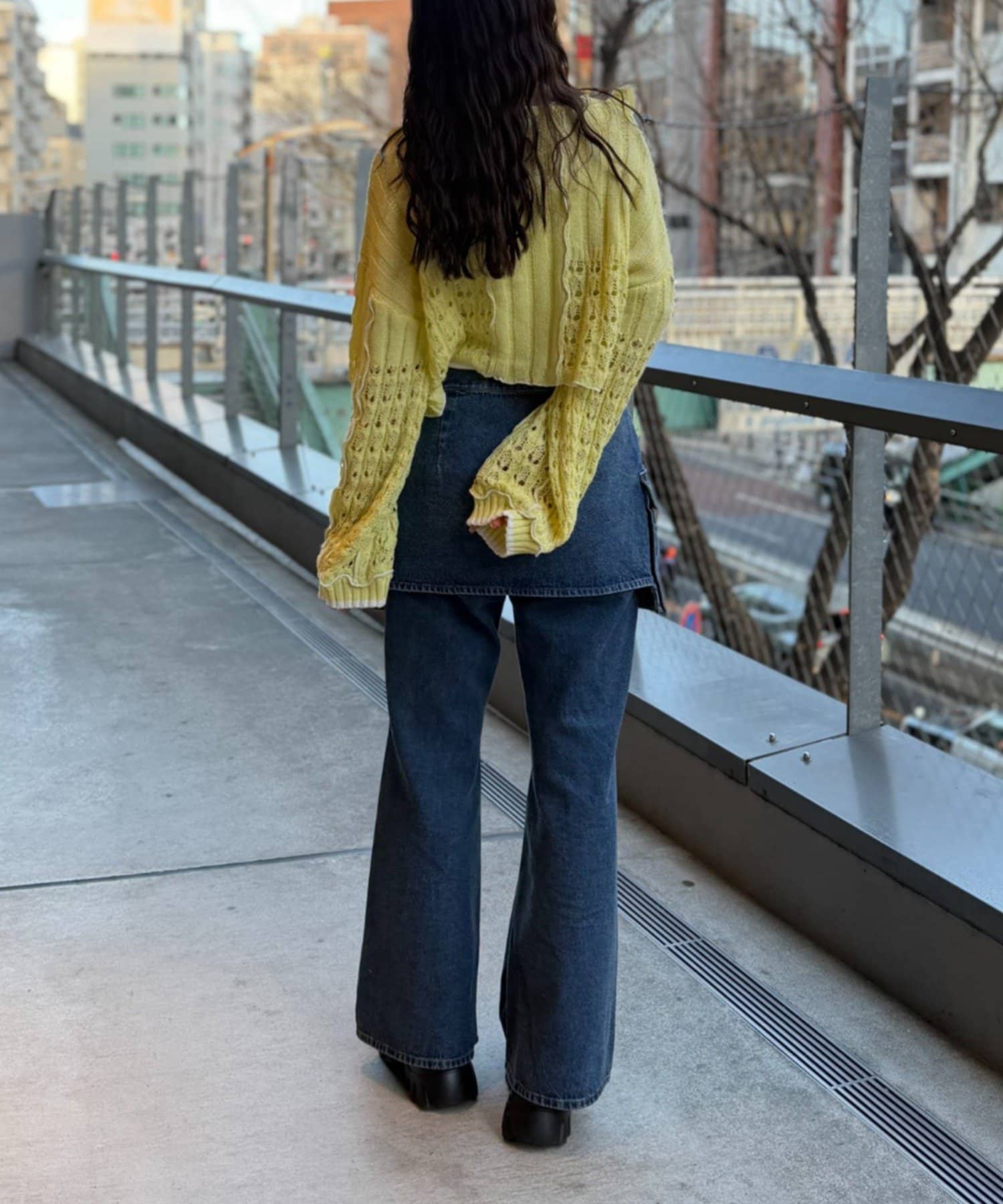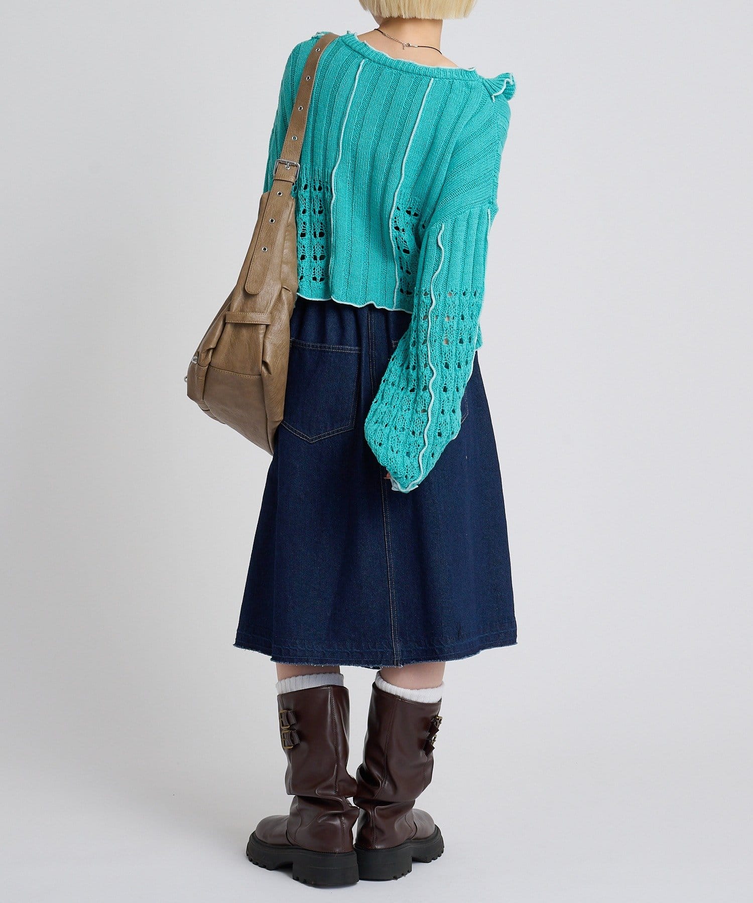 ・ショート丈を活かしたデニム合わせで、ラフだけど目を引くスタイリング