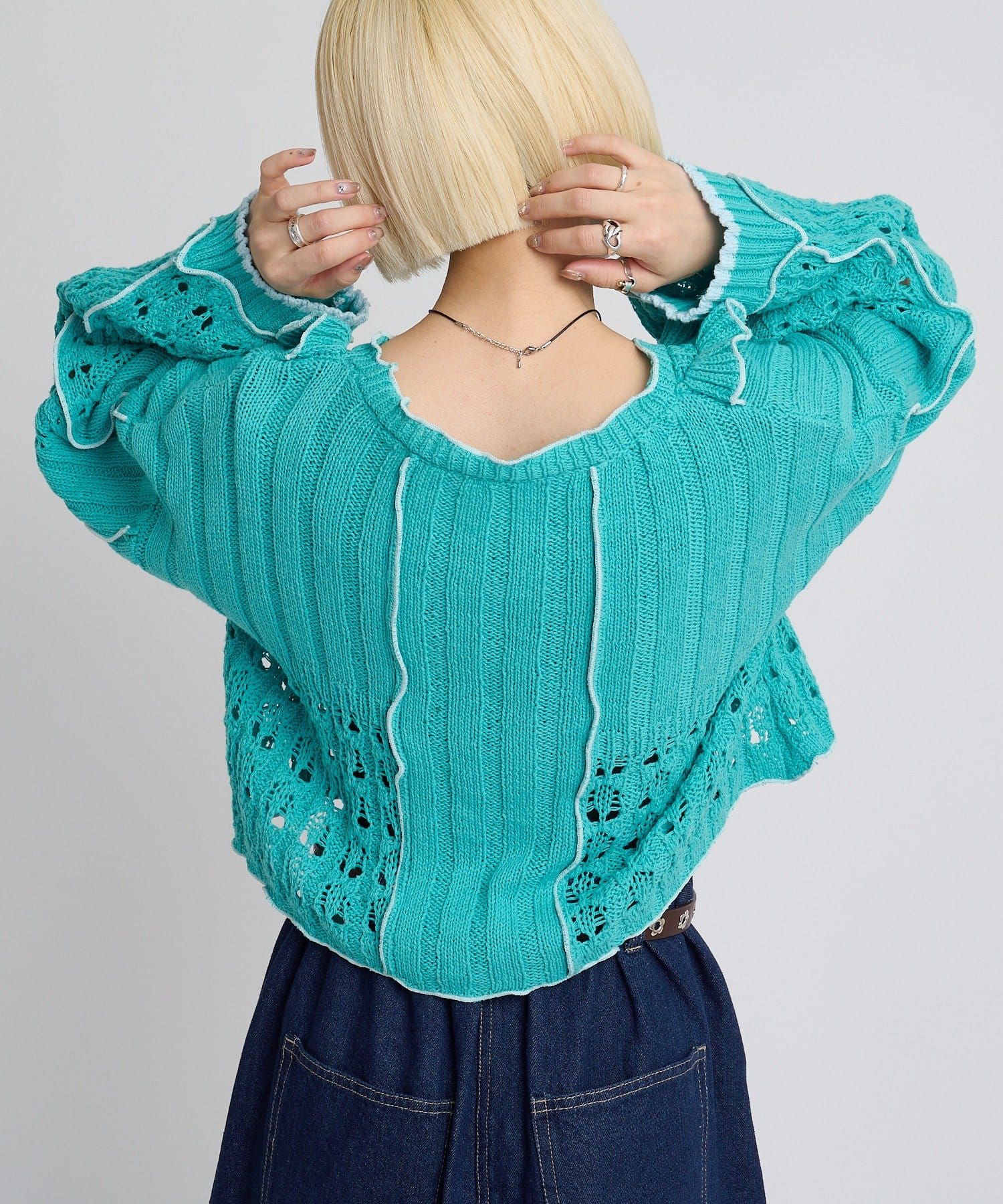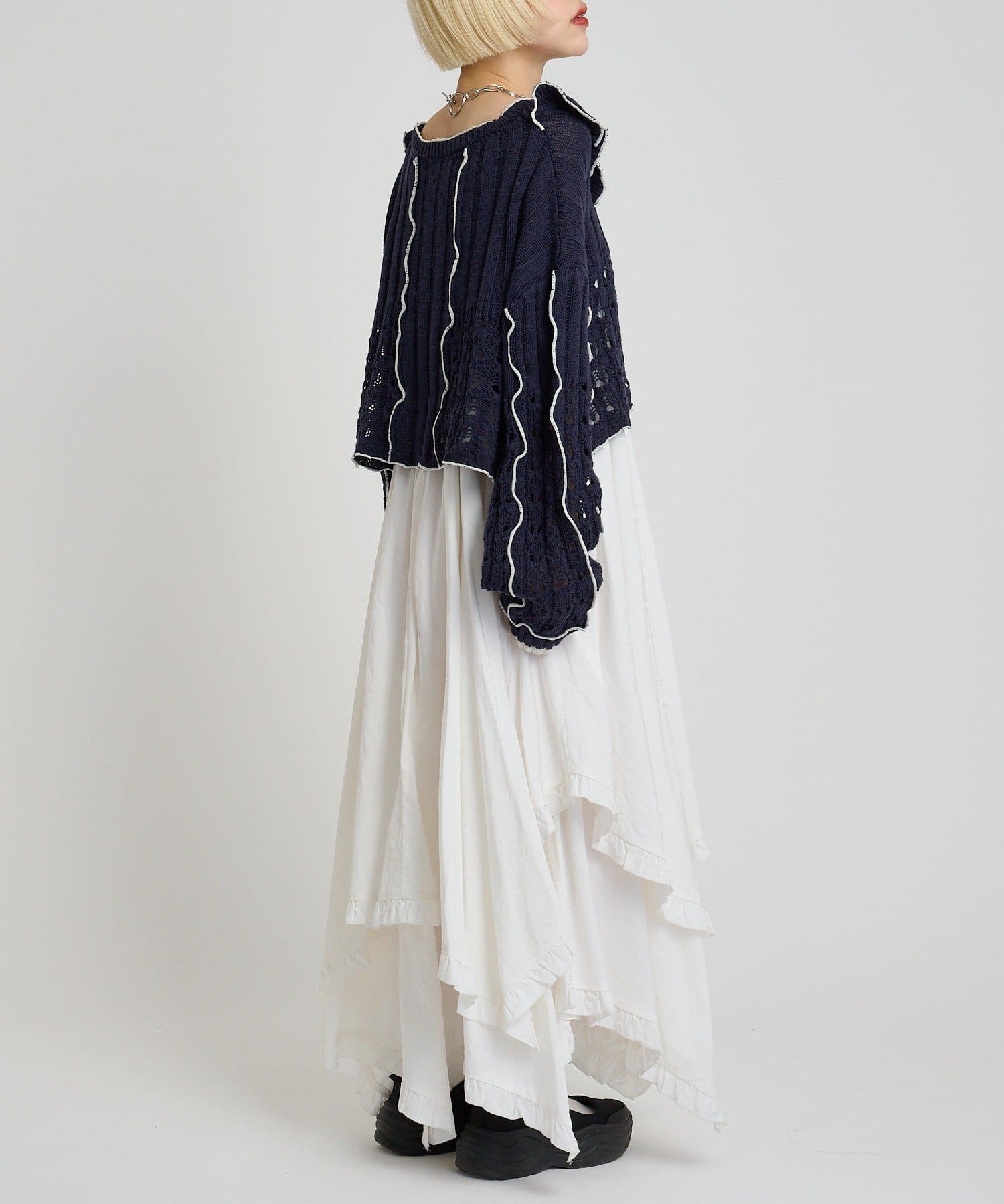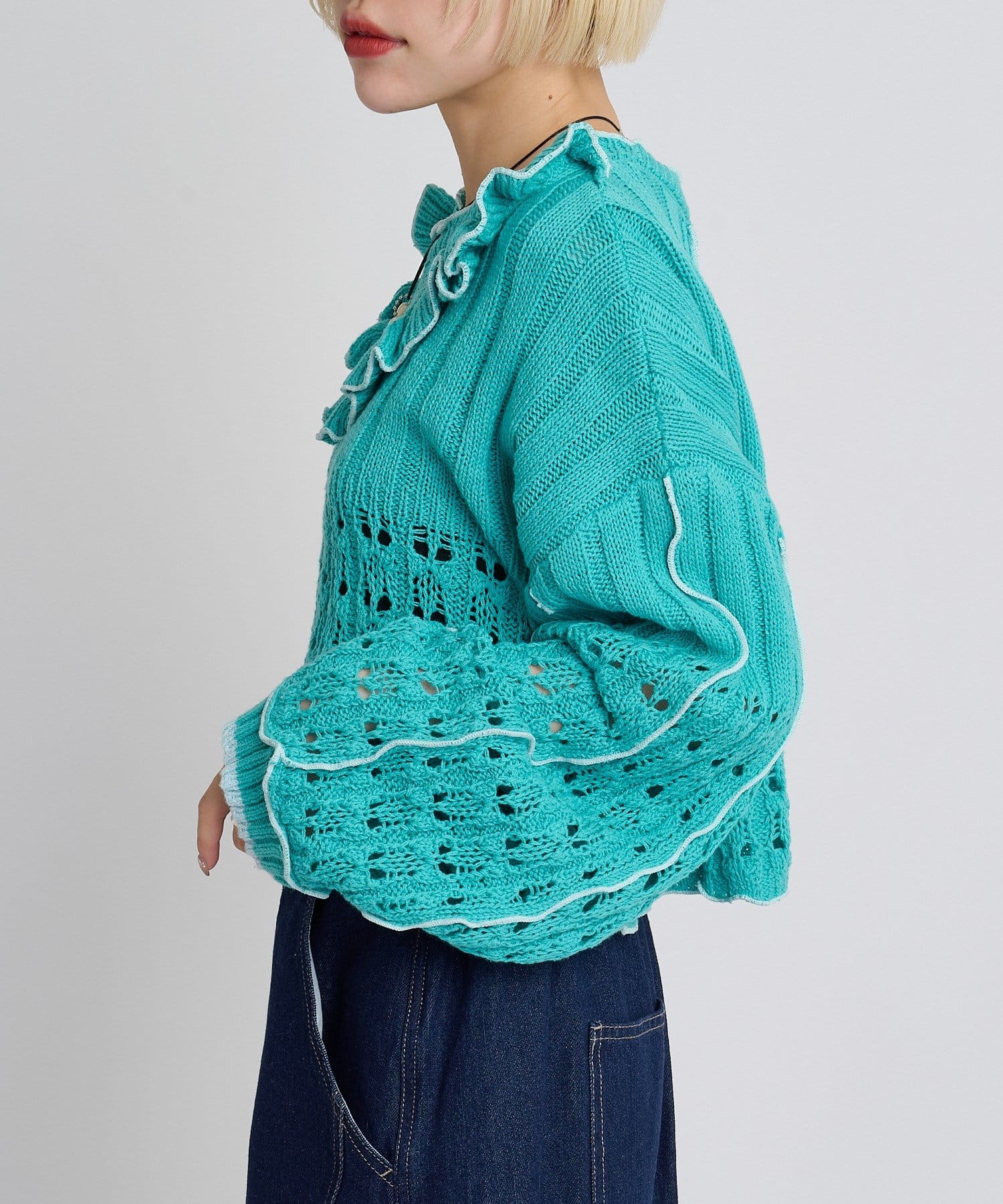 透かし編みフリルニット