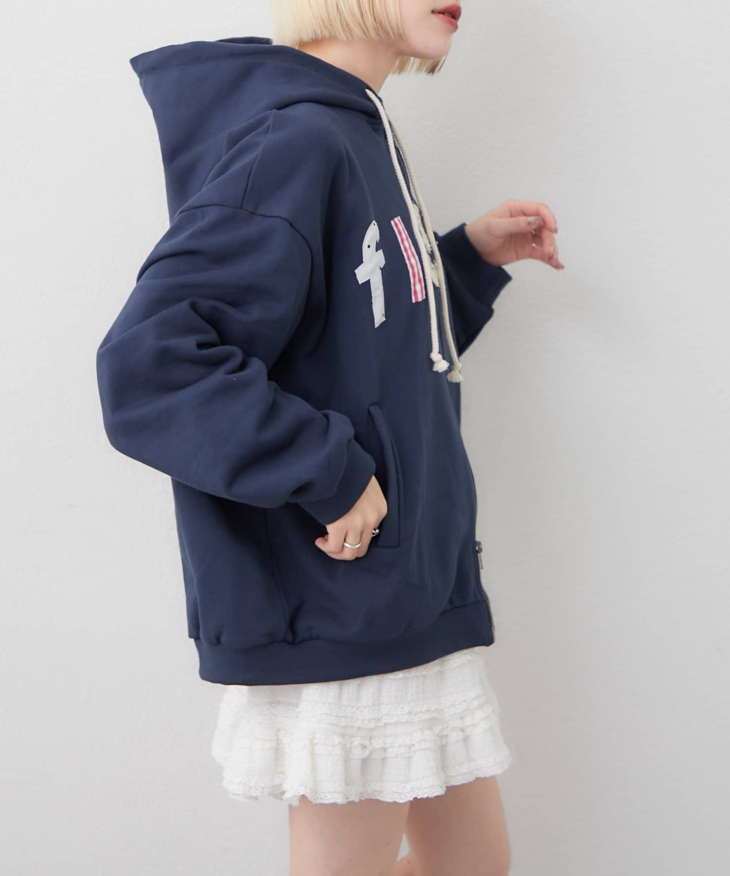 パッチワーク風ロゴがカワイイ韓国っぽパーカー