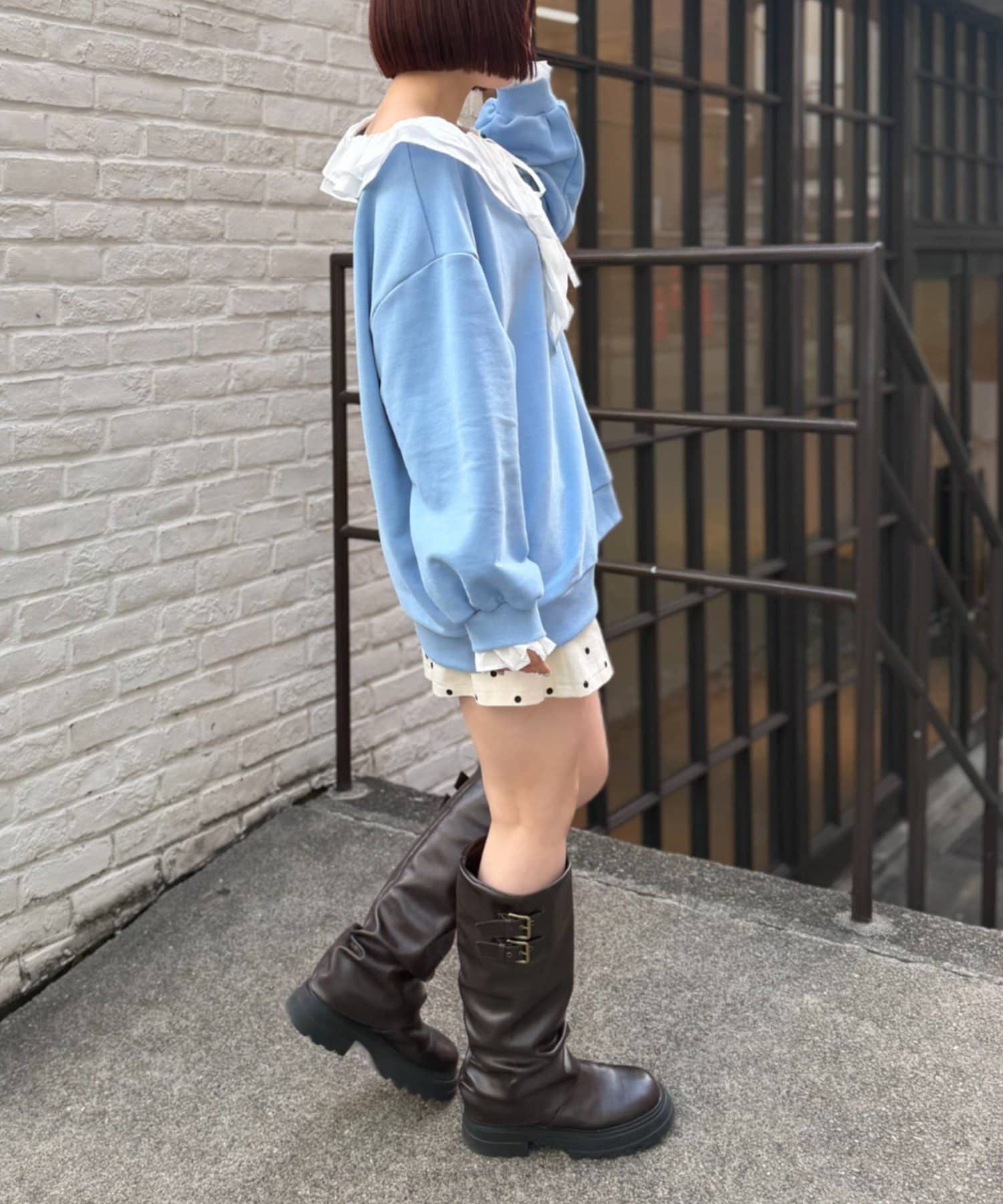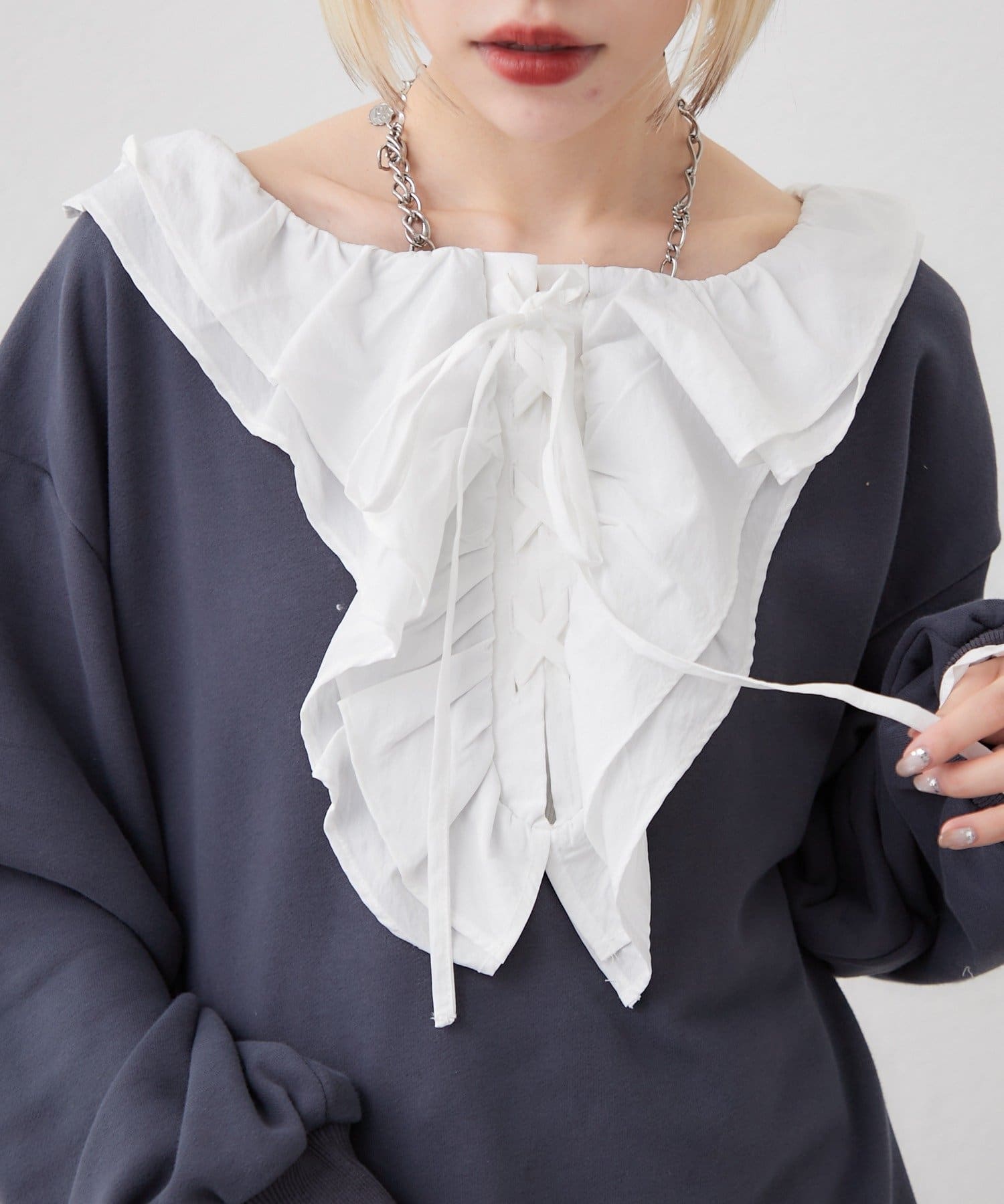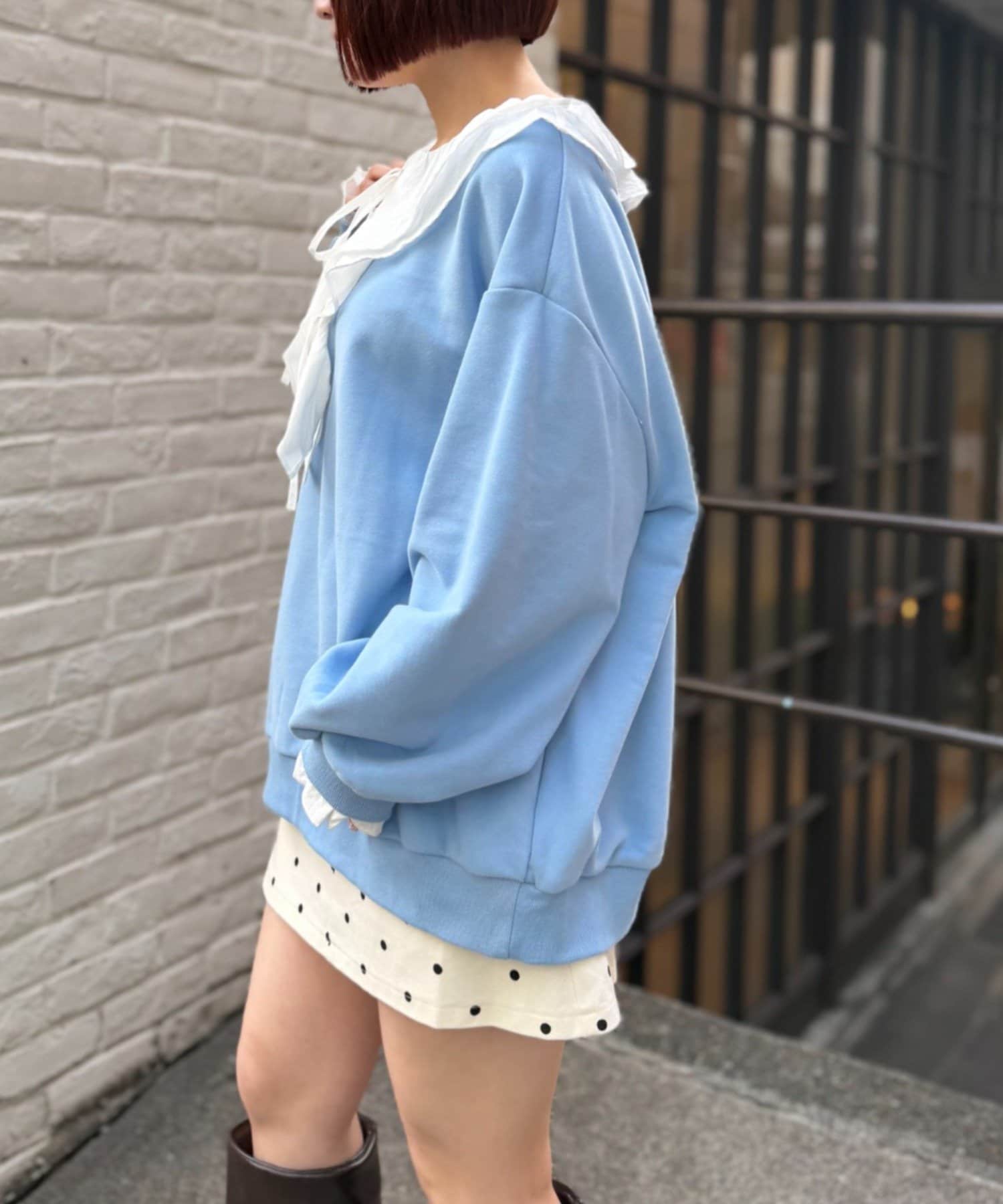 大きめフリルえりが目を惹く、主役スウェットトップス