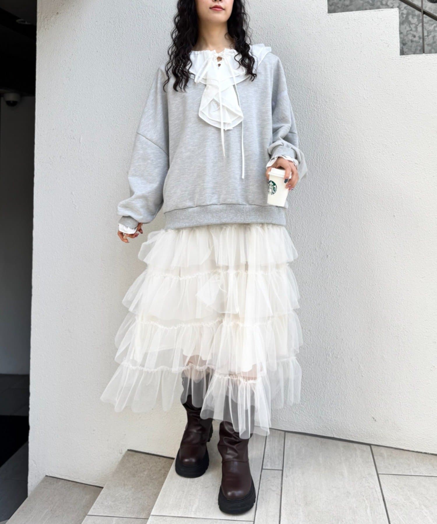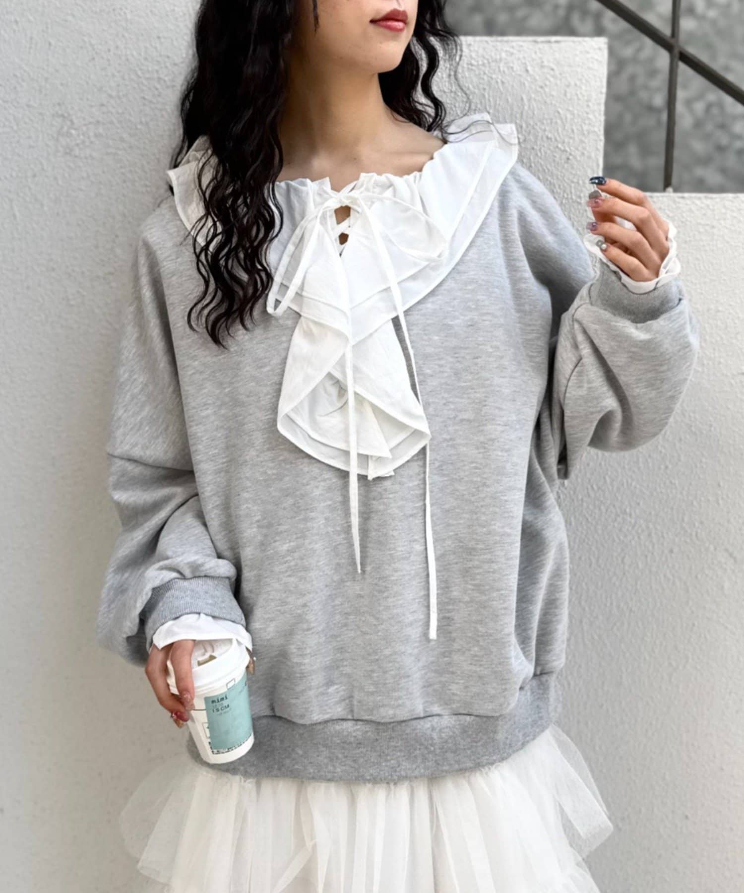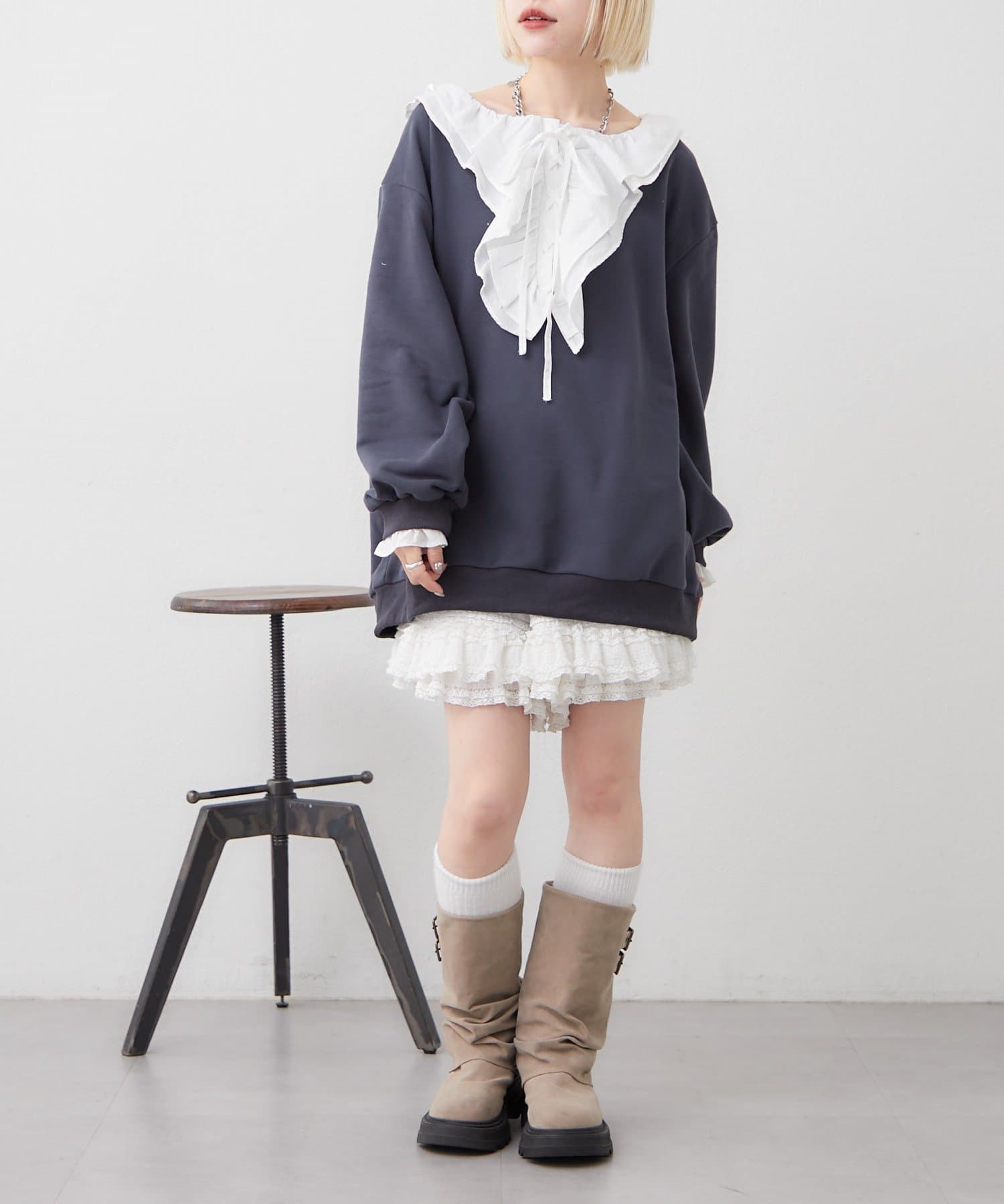 ・スウェット素材×フリルの絶妙なミックス感がかわいい♪