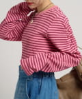 ・やさしいボーダー柄で、カジュアルになりすぎず着られるプルオーバーです♪