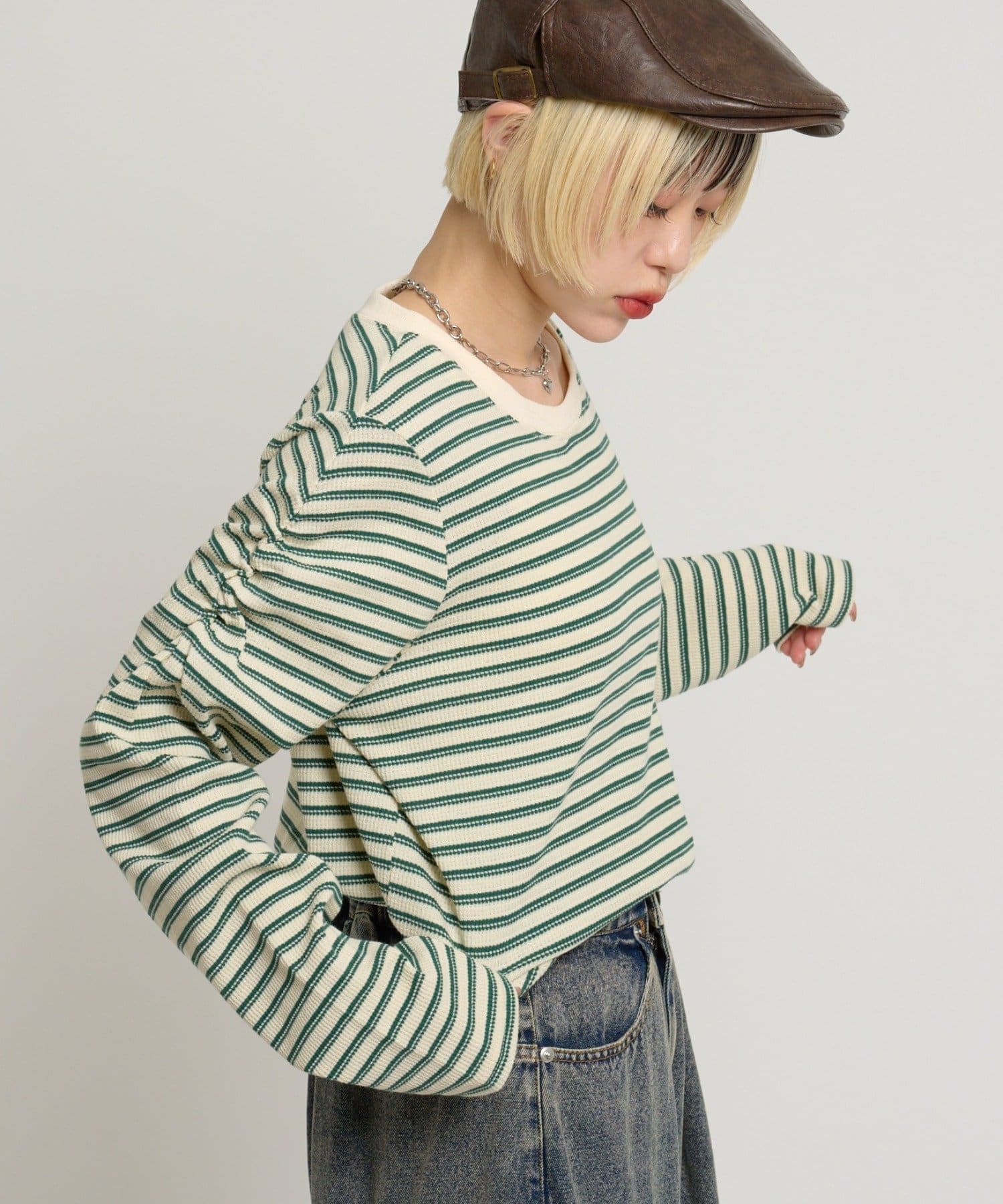 ゆるっと着て可愛い、毎日にちょうどいいワッフルボーダートップス