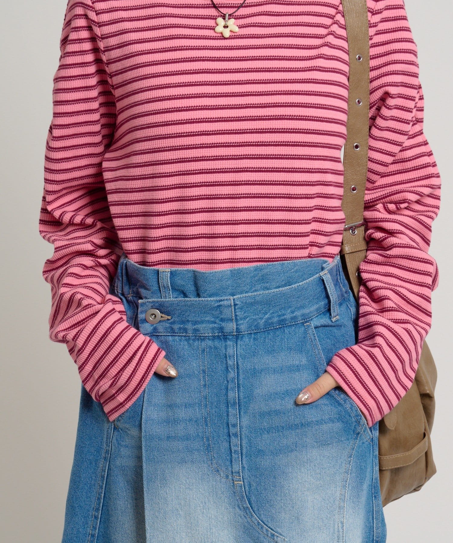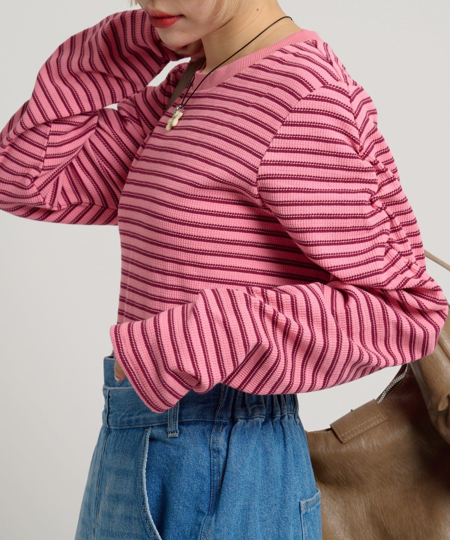 ・ワッフル素材がコーデに立体感をプラス。レイヤードにもぴったり◎