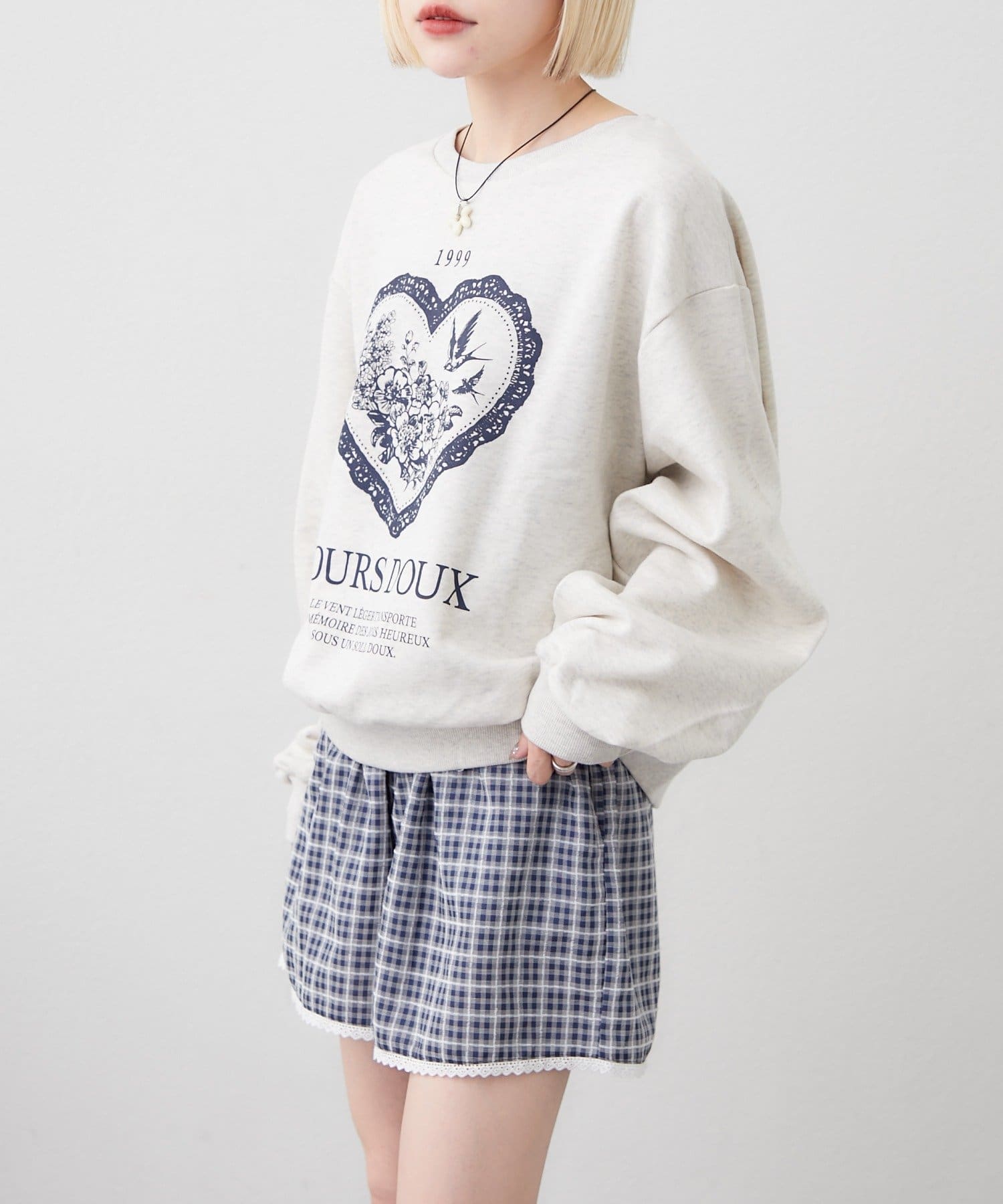 ・アンティーク調のハートモチーフがカワイイ大人ガーリーなトレーナー