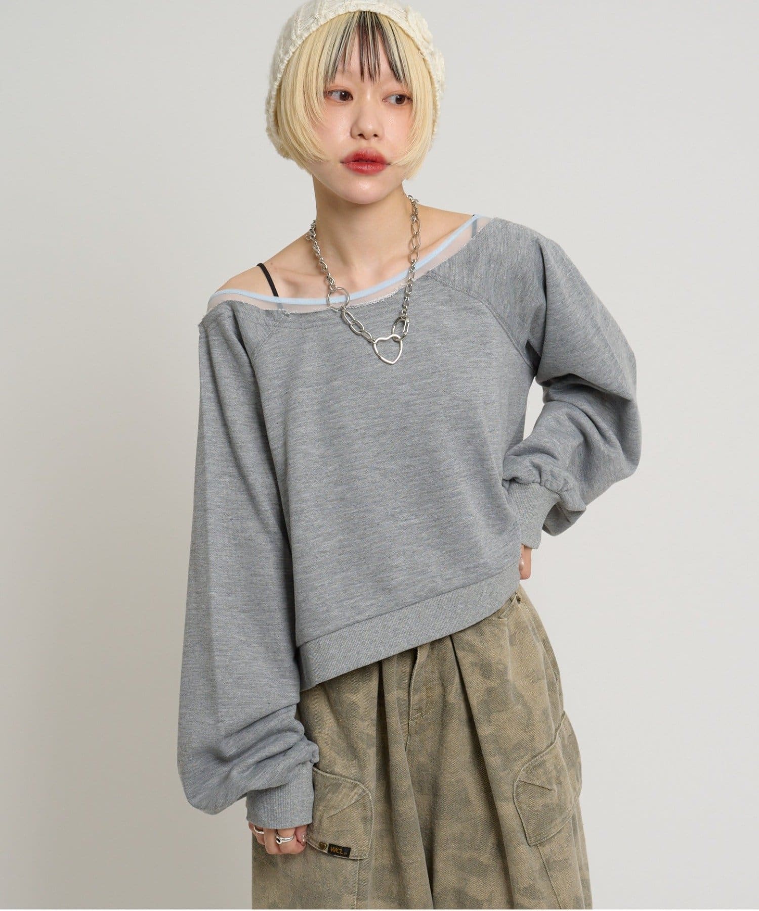 w closet(ダブルクローゼット) シアーワンショルスウェット