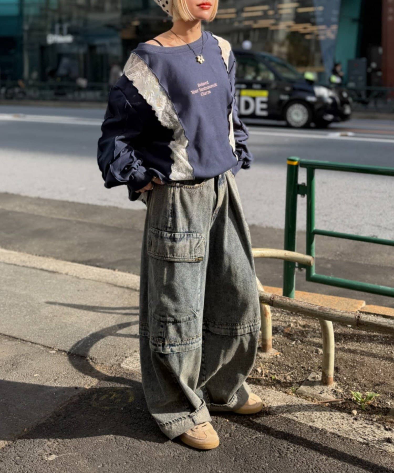 ・デニムやカーゴパンツを合わせてカジュアルスタイルに!