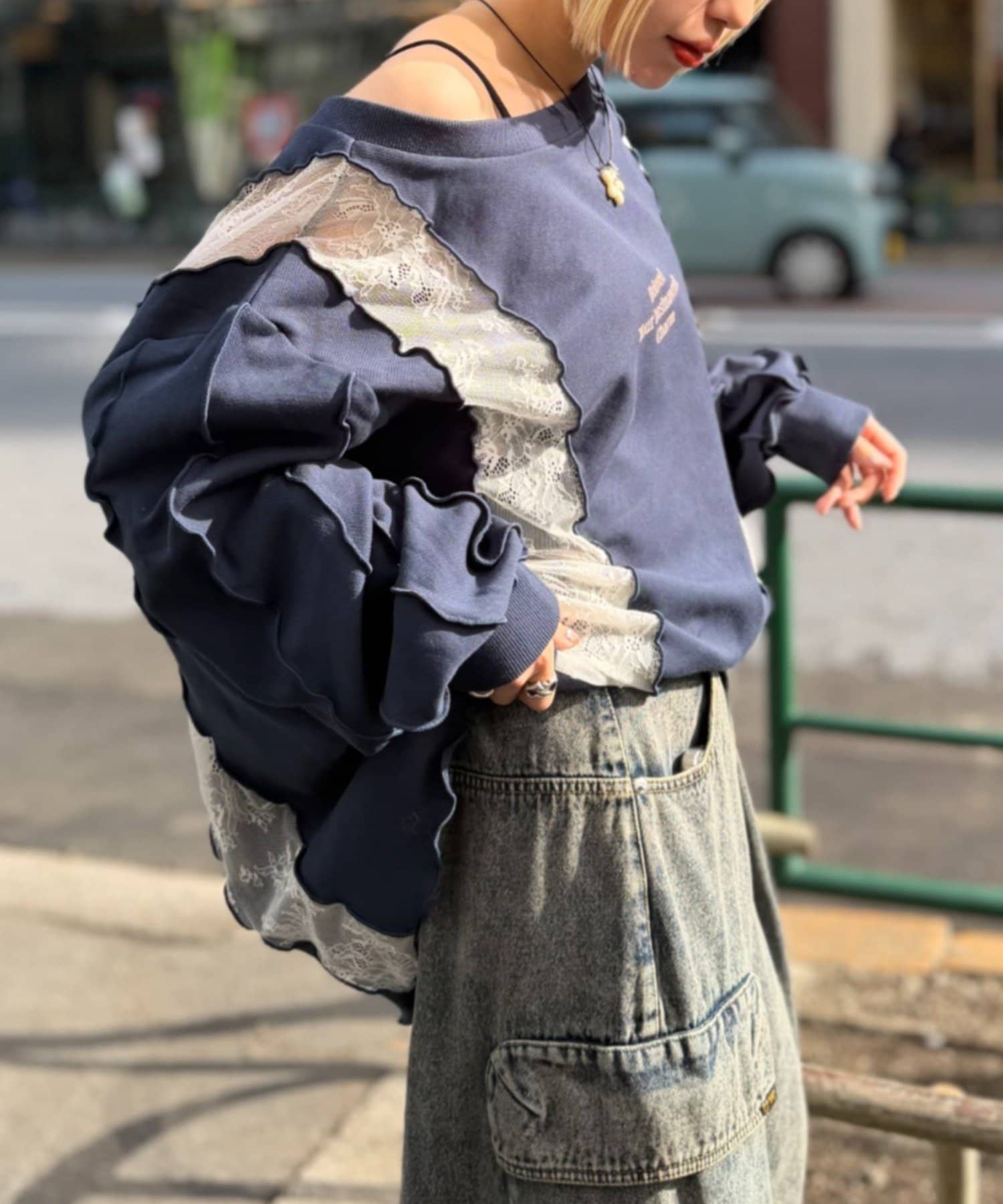 スウェット×レースが程よい◎カジュアルガーリーアイテム