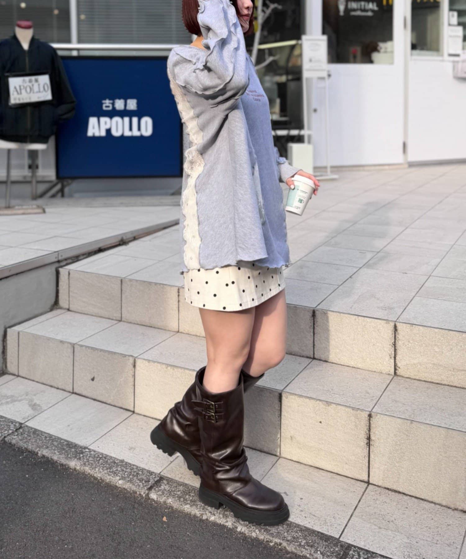 ・ミニボトムとブーツを合わせると甘めな大人カジュアルに♪