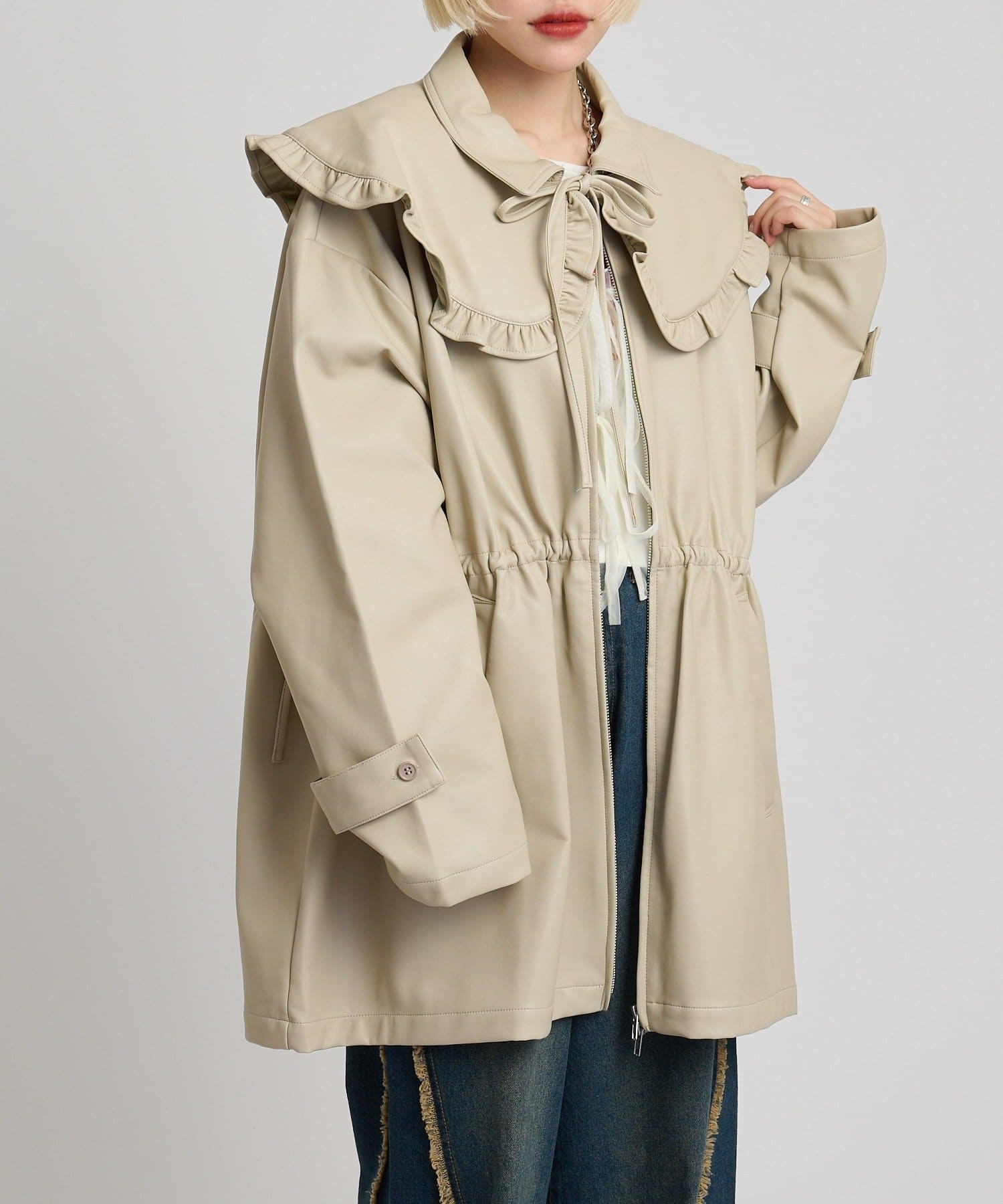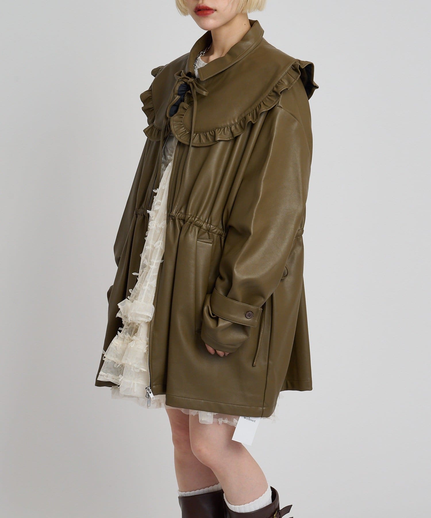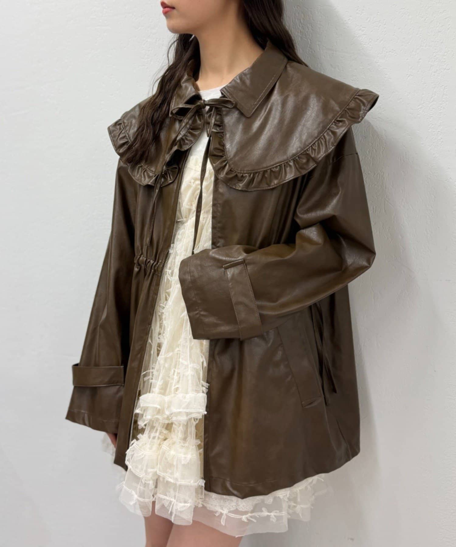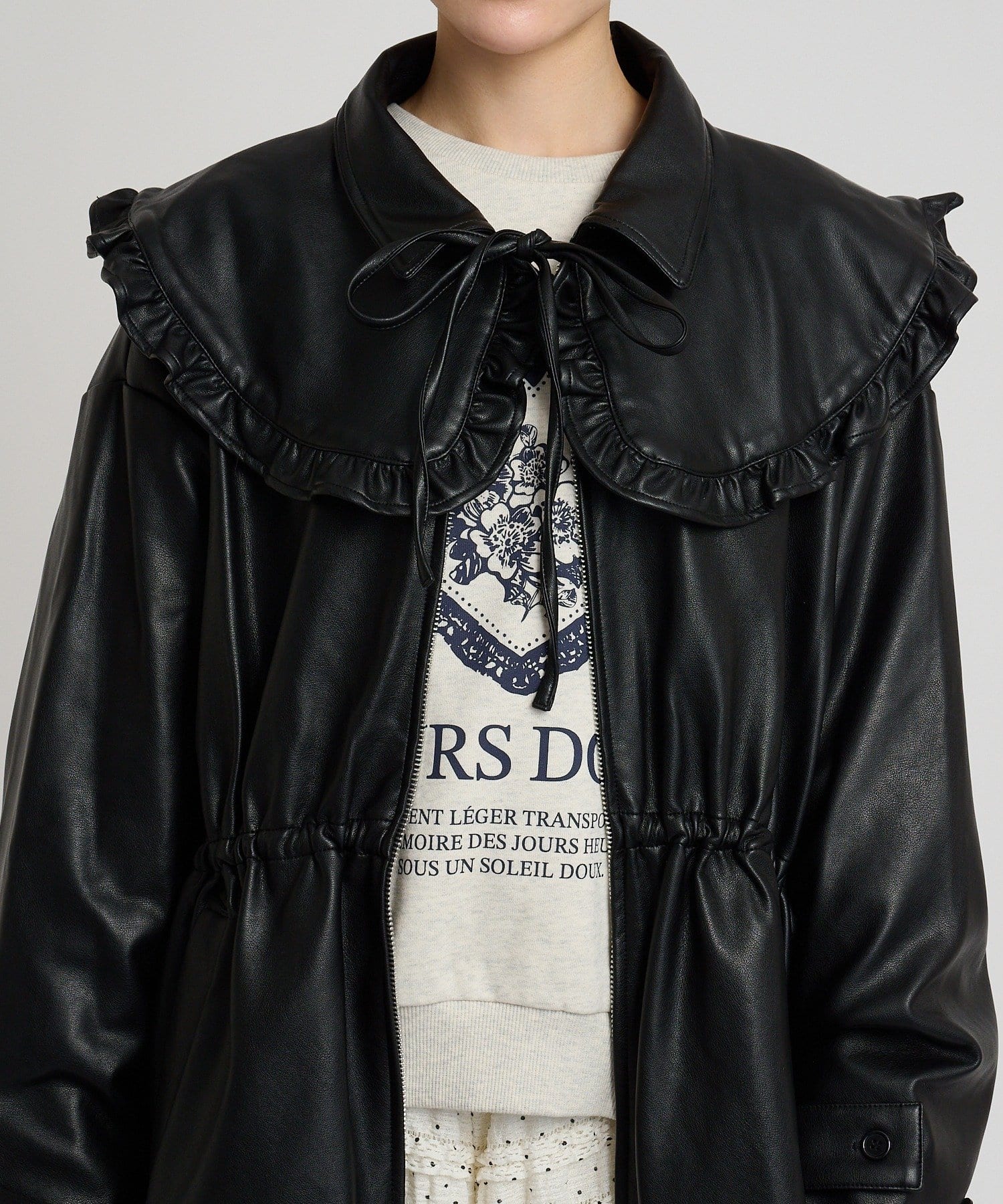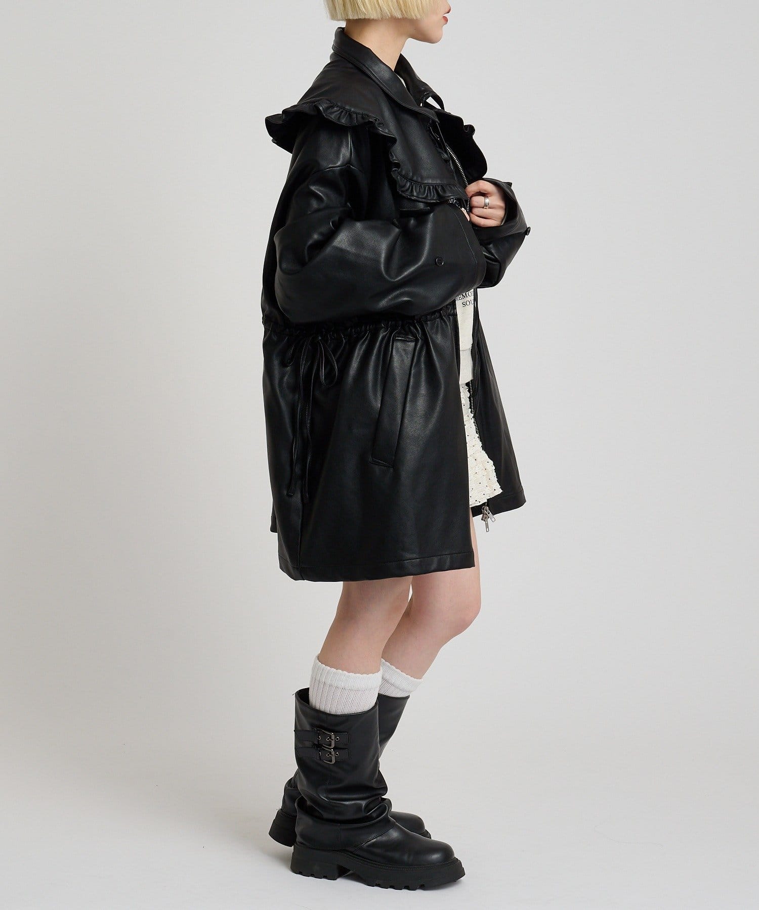 フリル衿付きPUレザージャケット