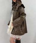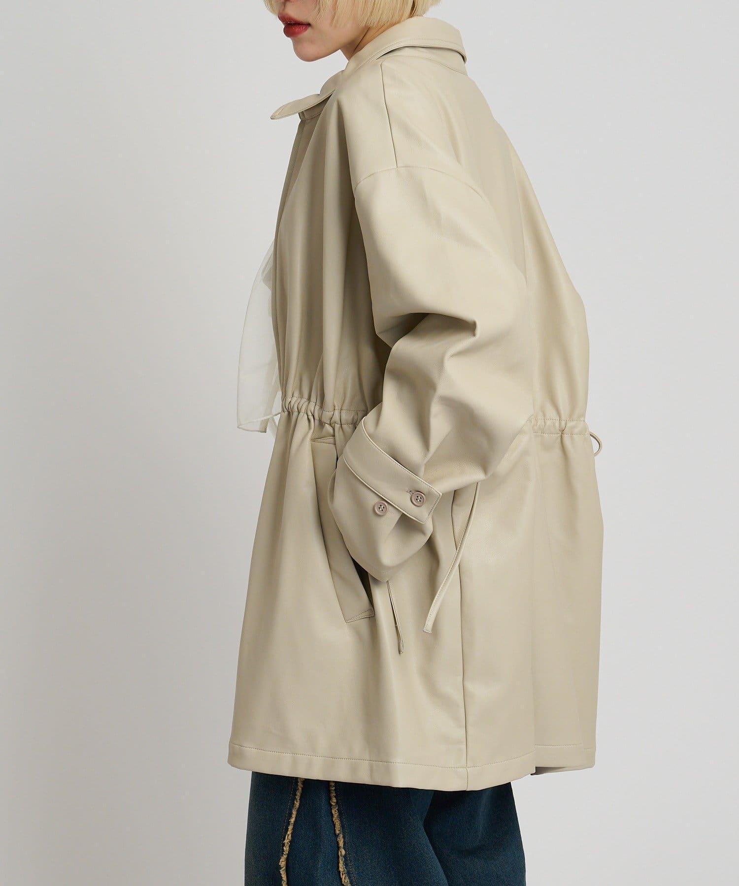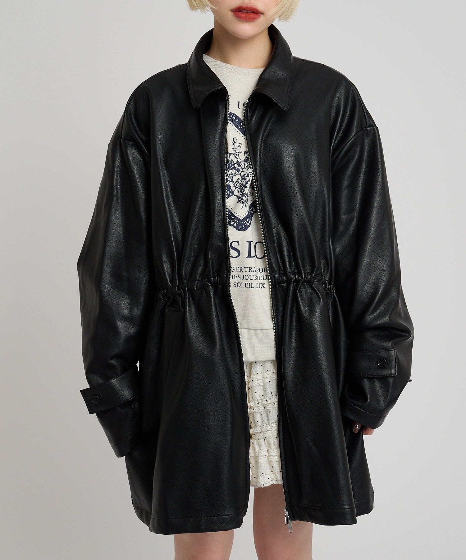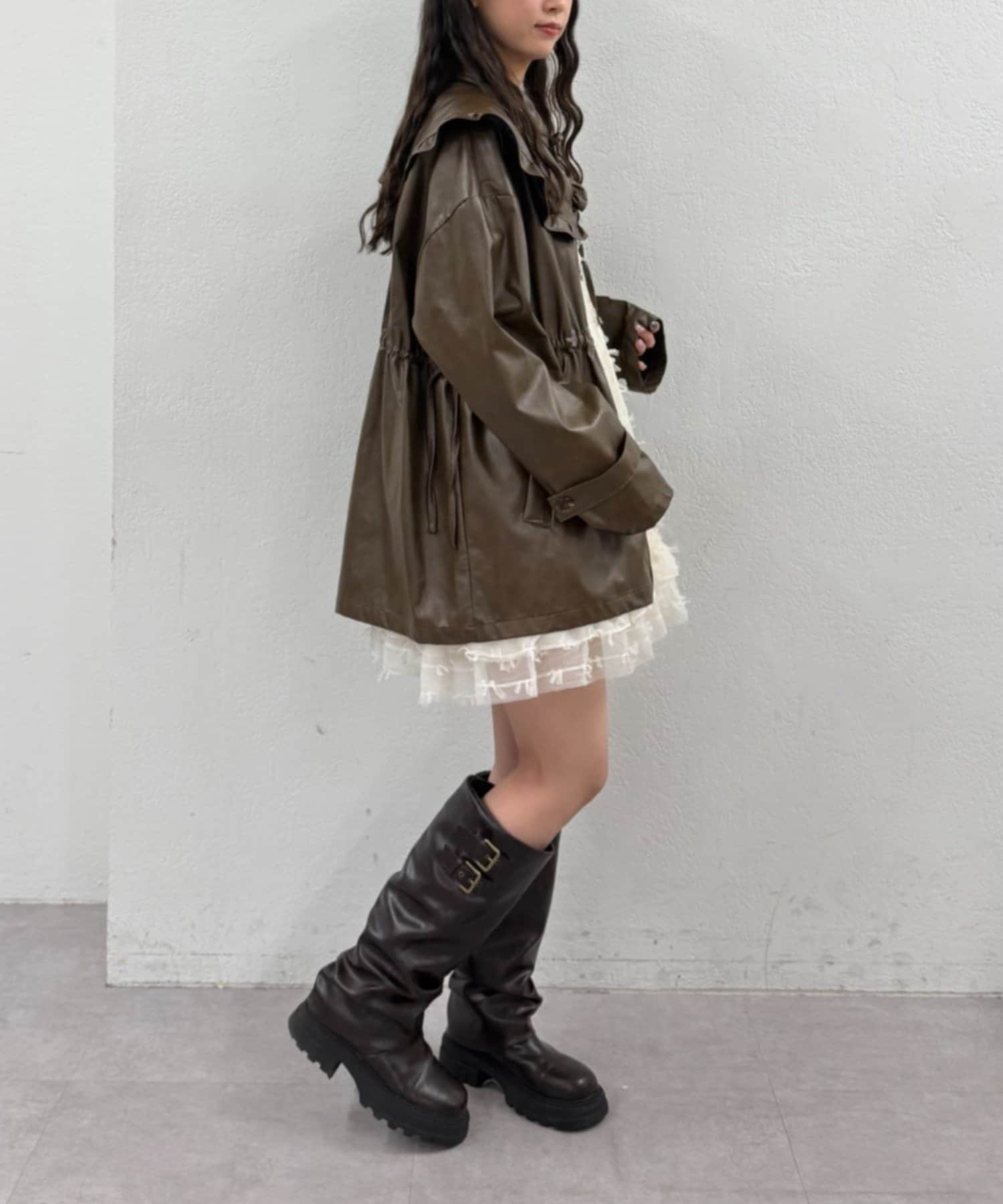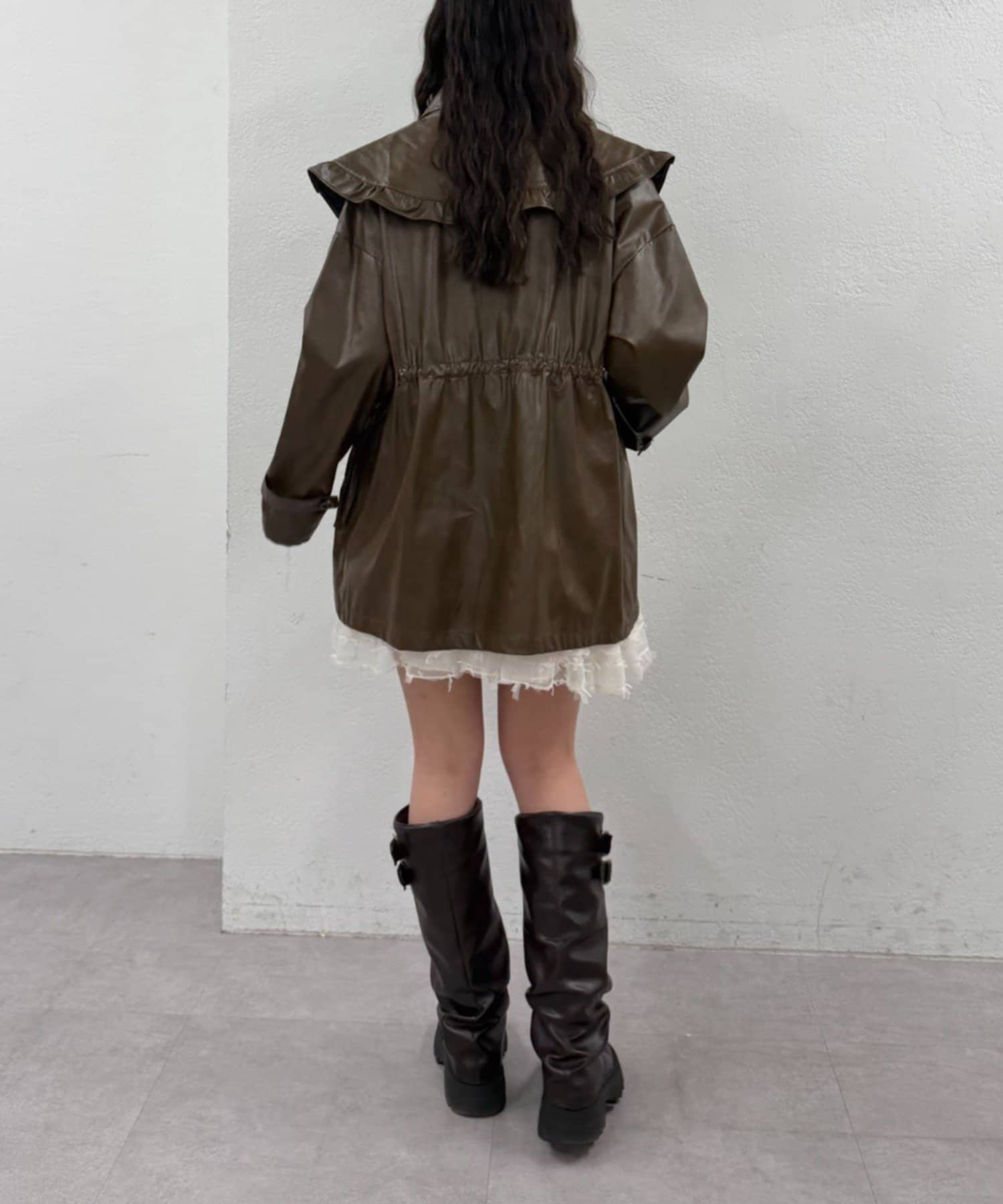 フリル衿付きPUレザージャケット