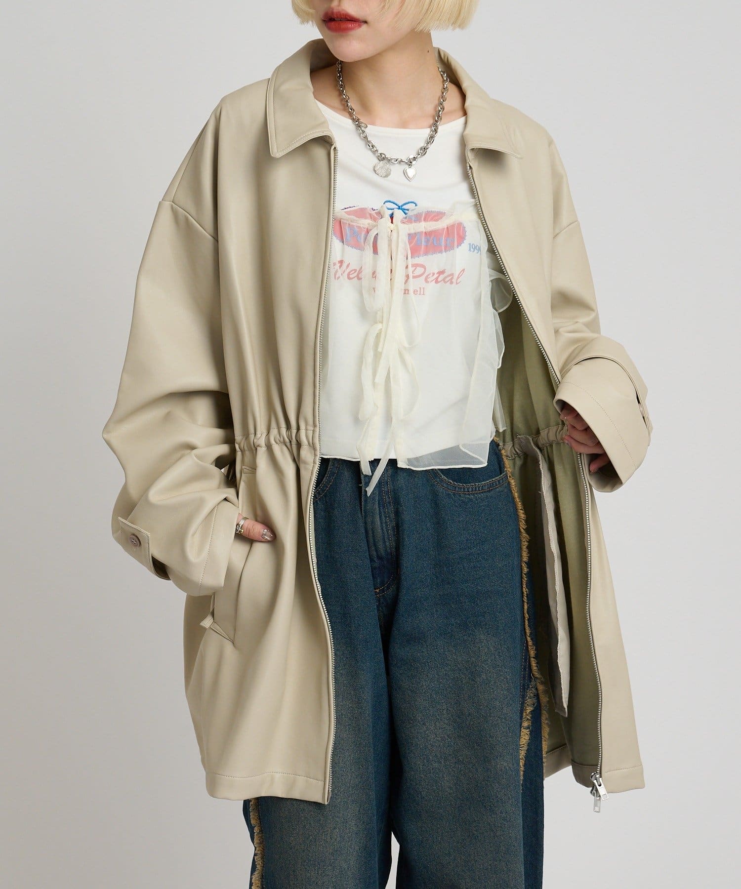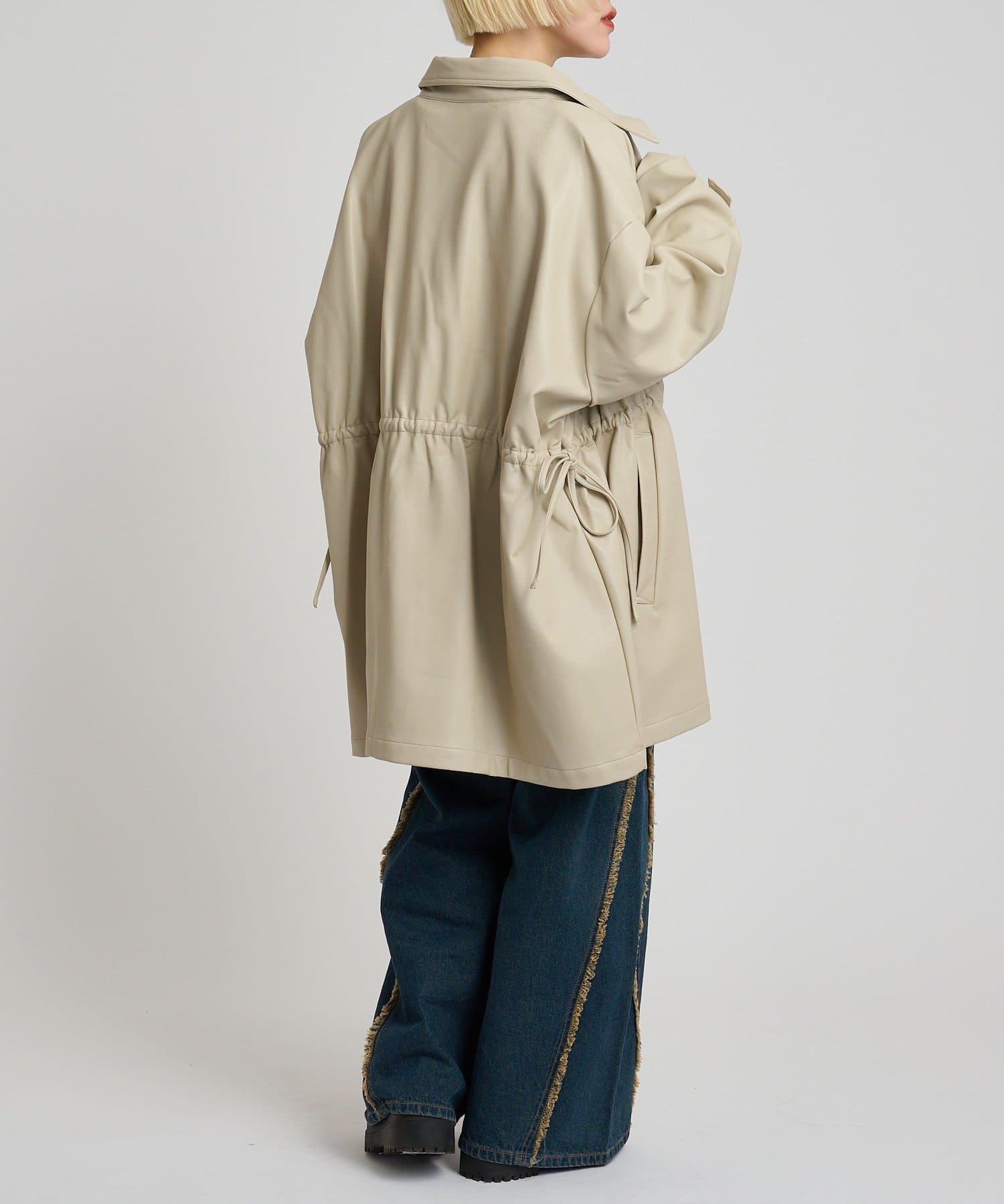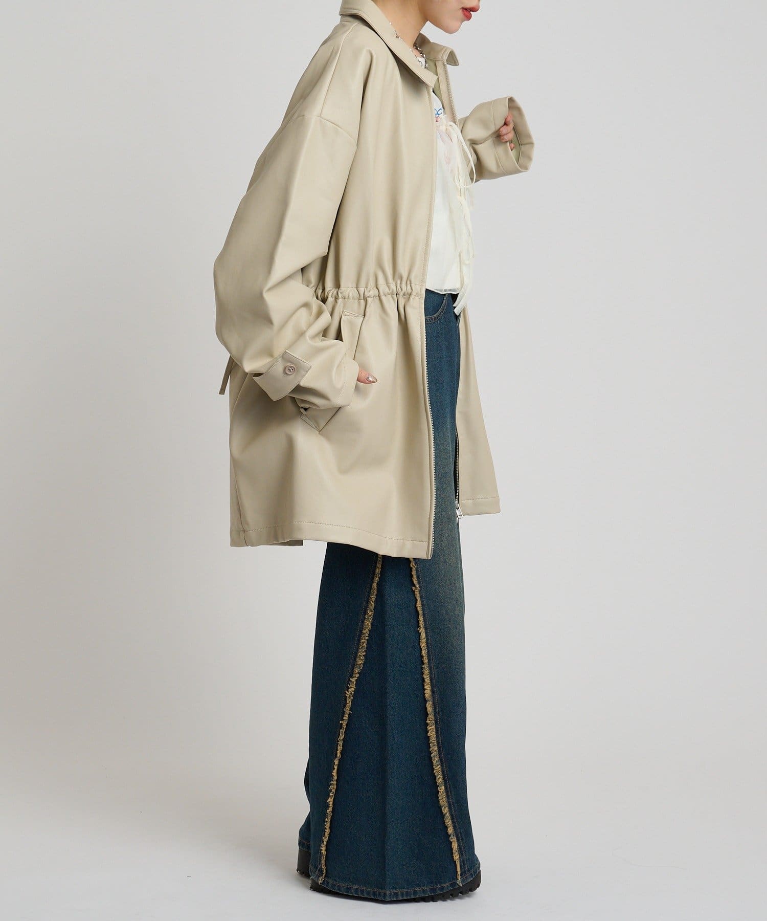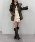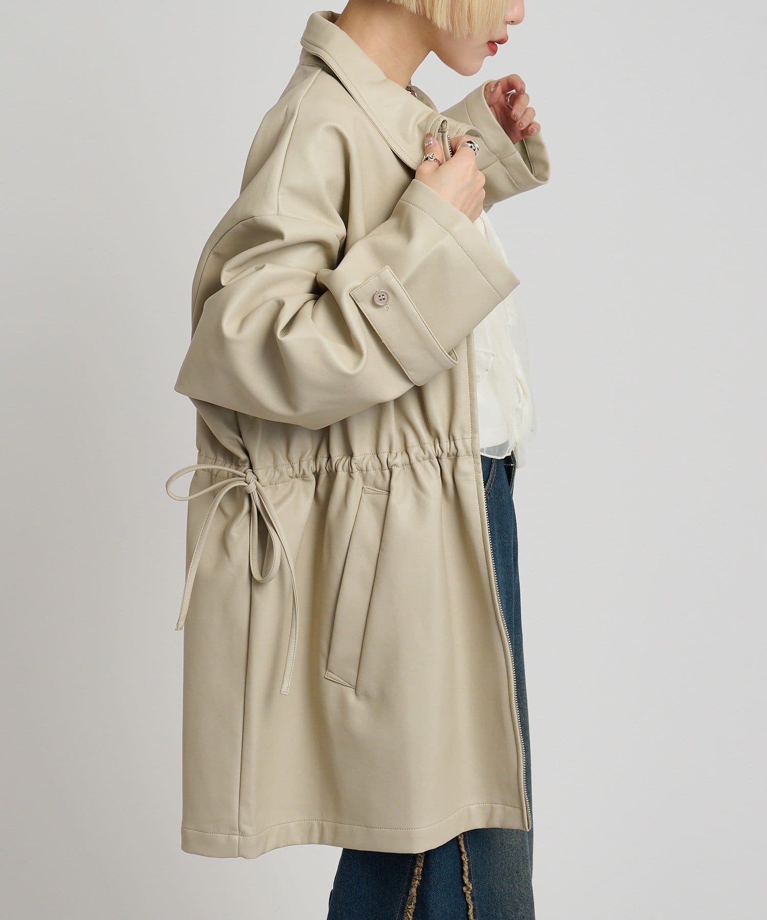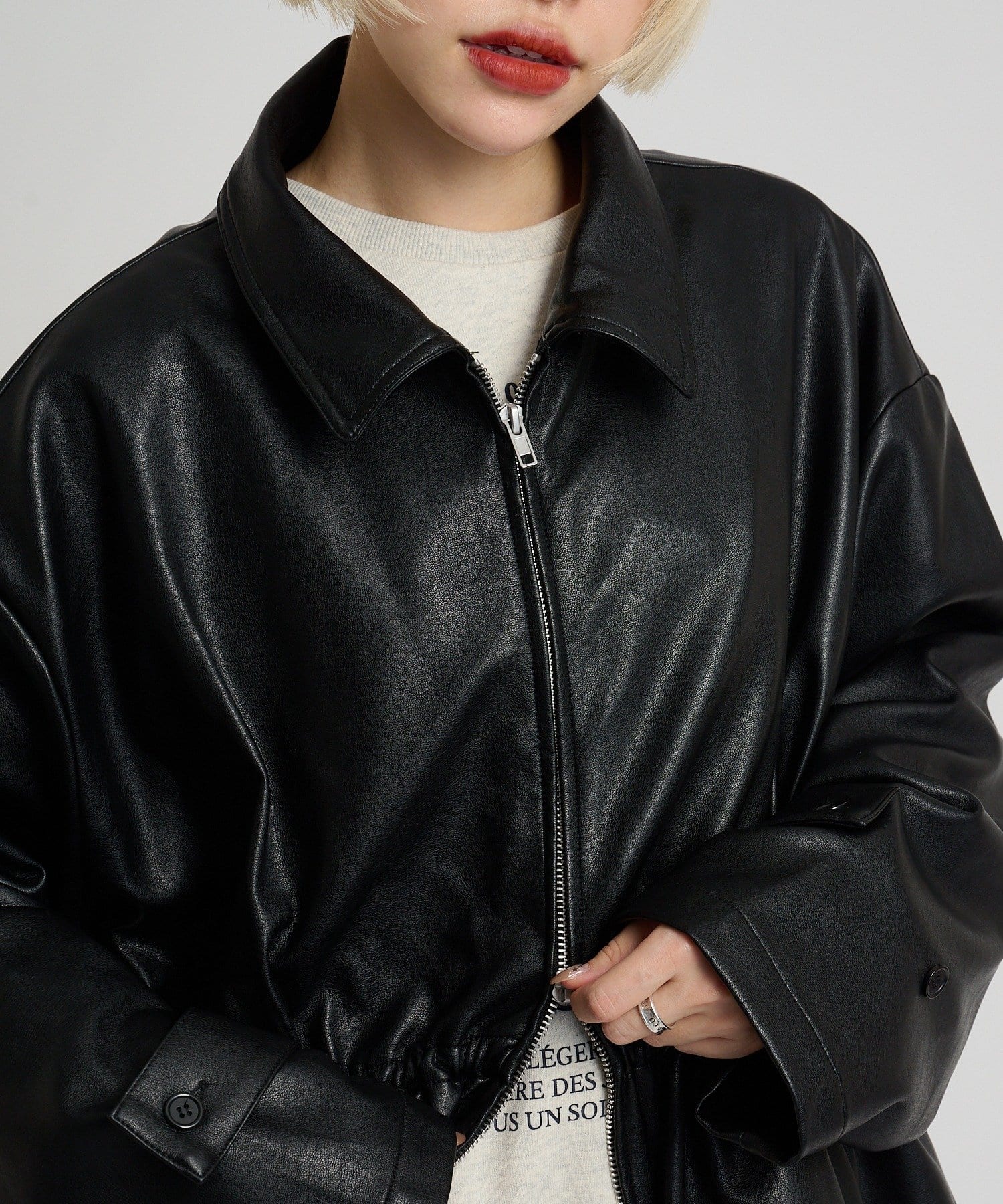 フリル衿付きPUレザージャケット