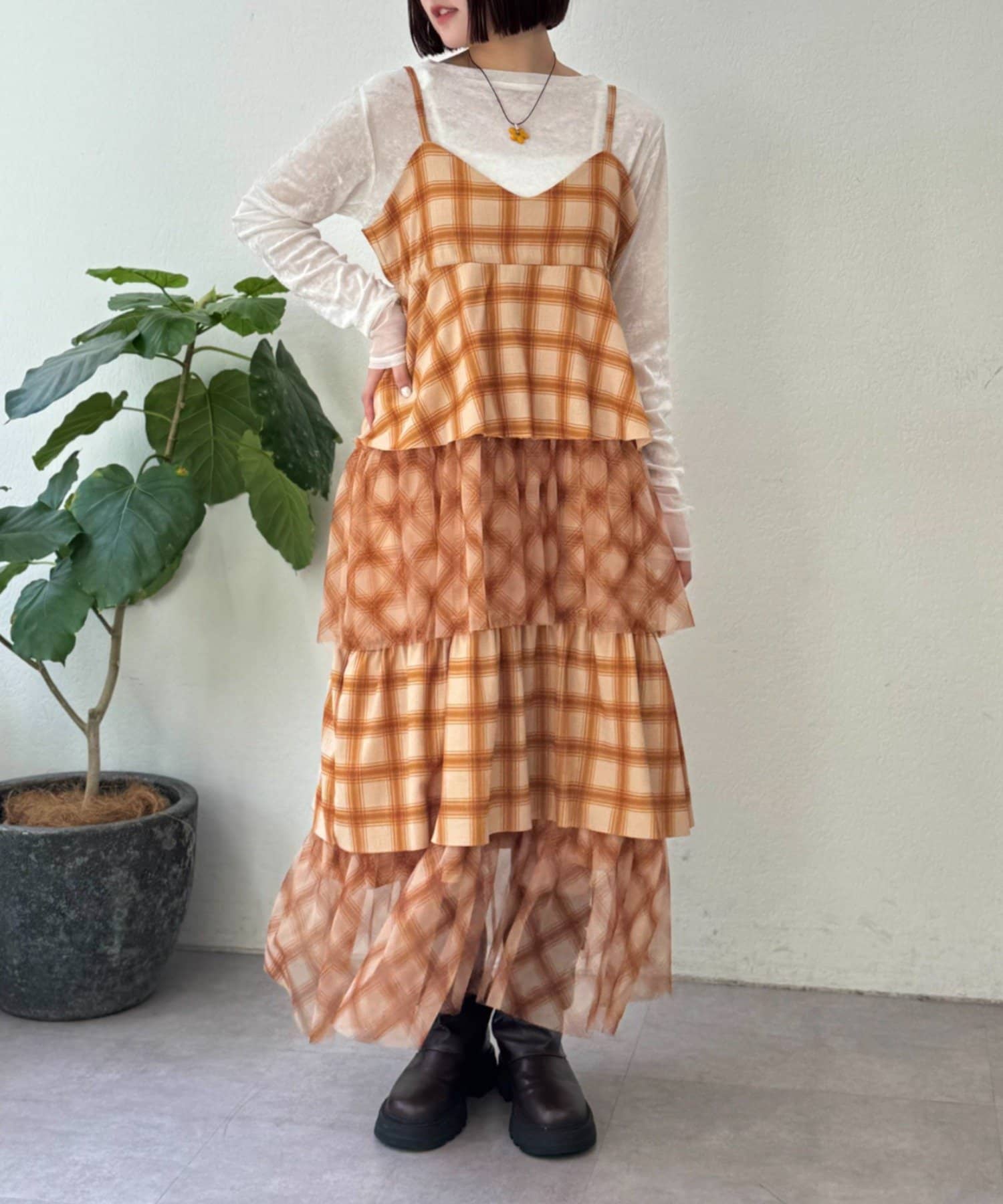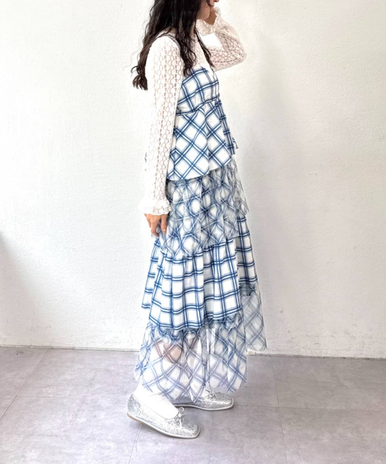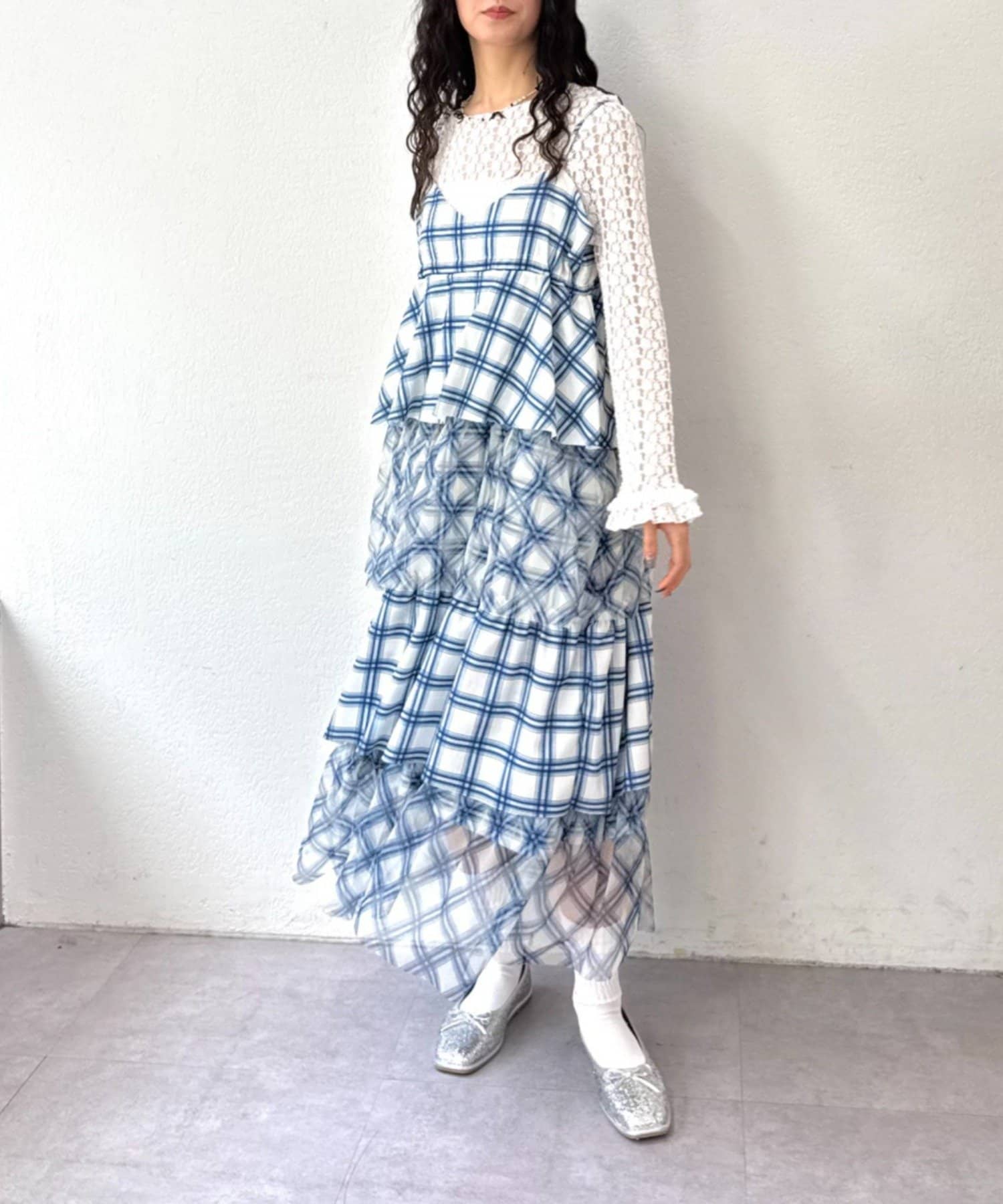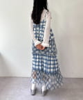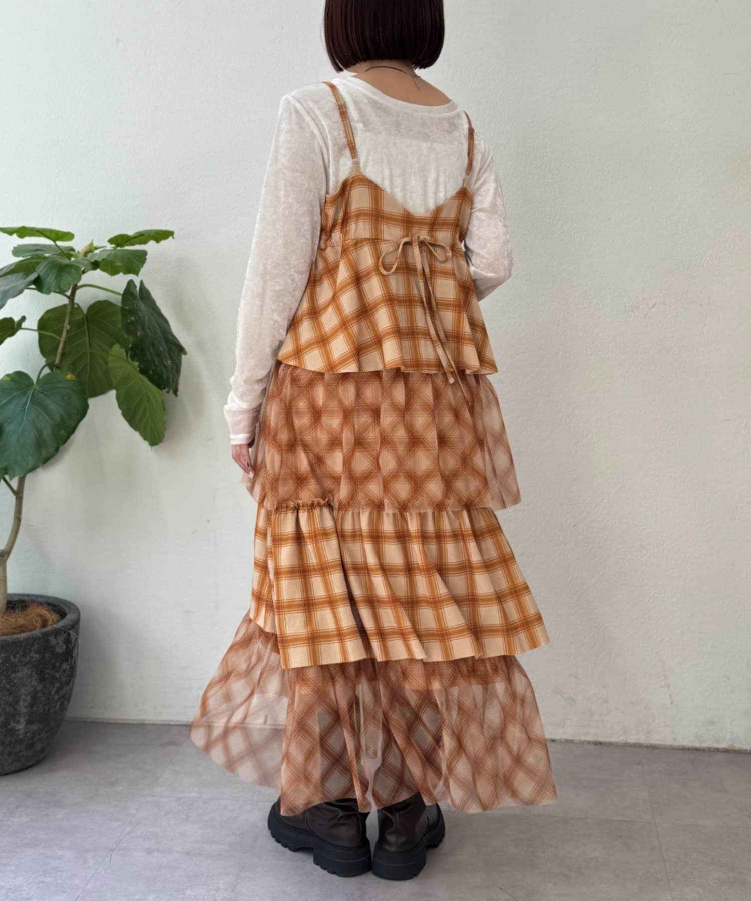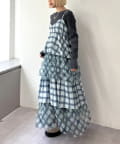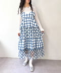 チェックを重ねて、軽やかに揺れる楊柳ティアードキャミワンピース