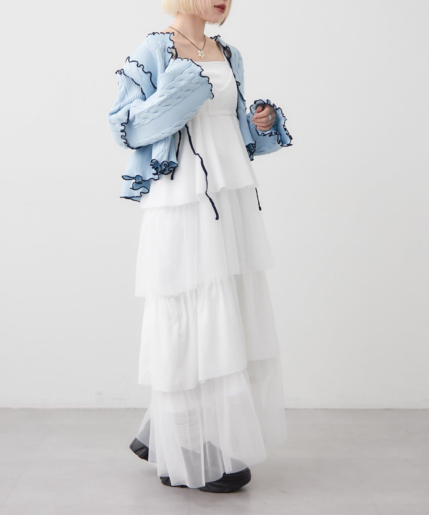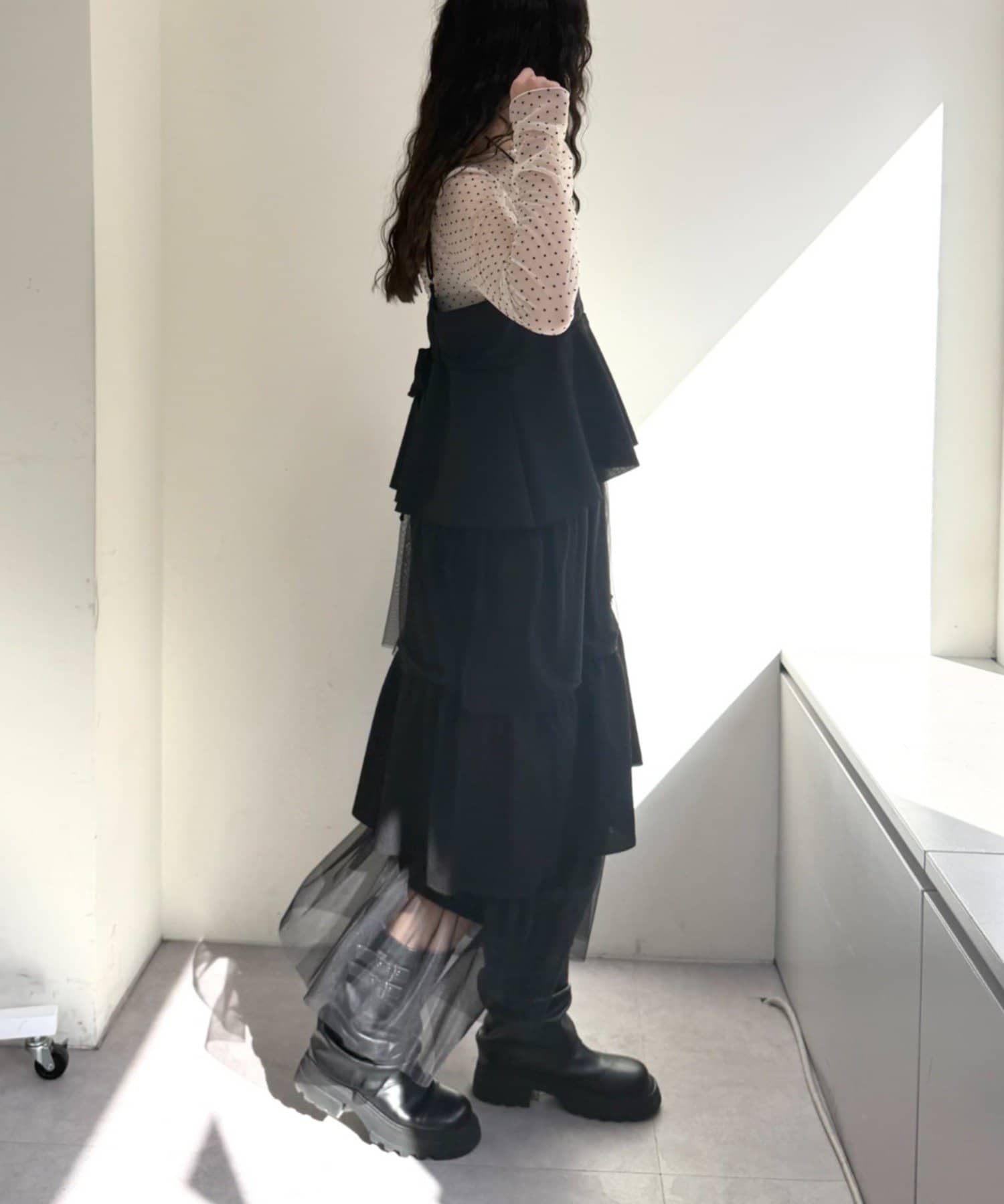 ・シアー素材とティアード仕様で動きのあるシルエットに!
