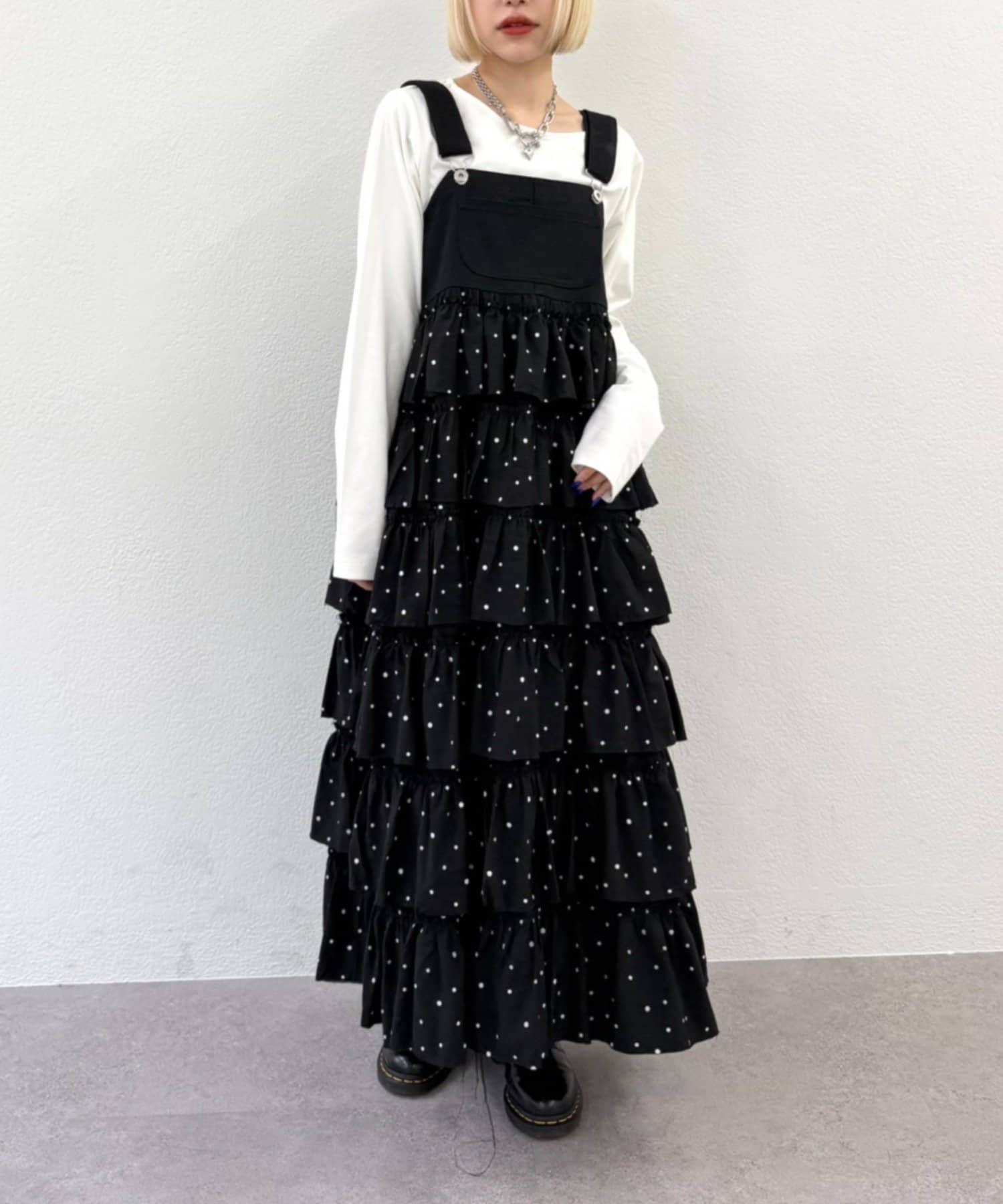 【新色ドット登場!】【新作予約お気に入り数第1位!】フリルティアードジャンスカ