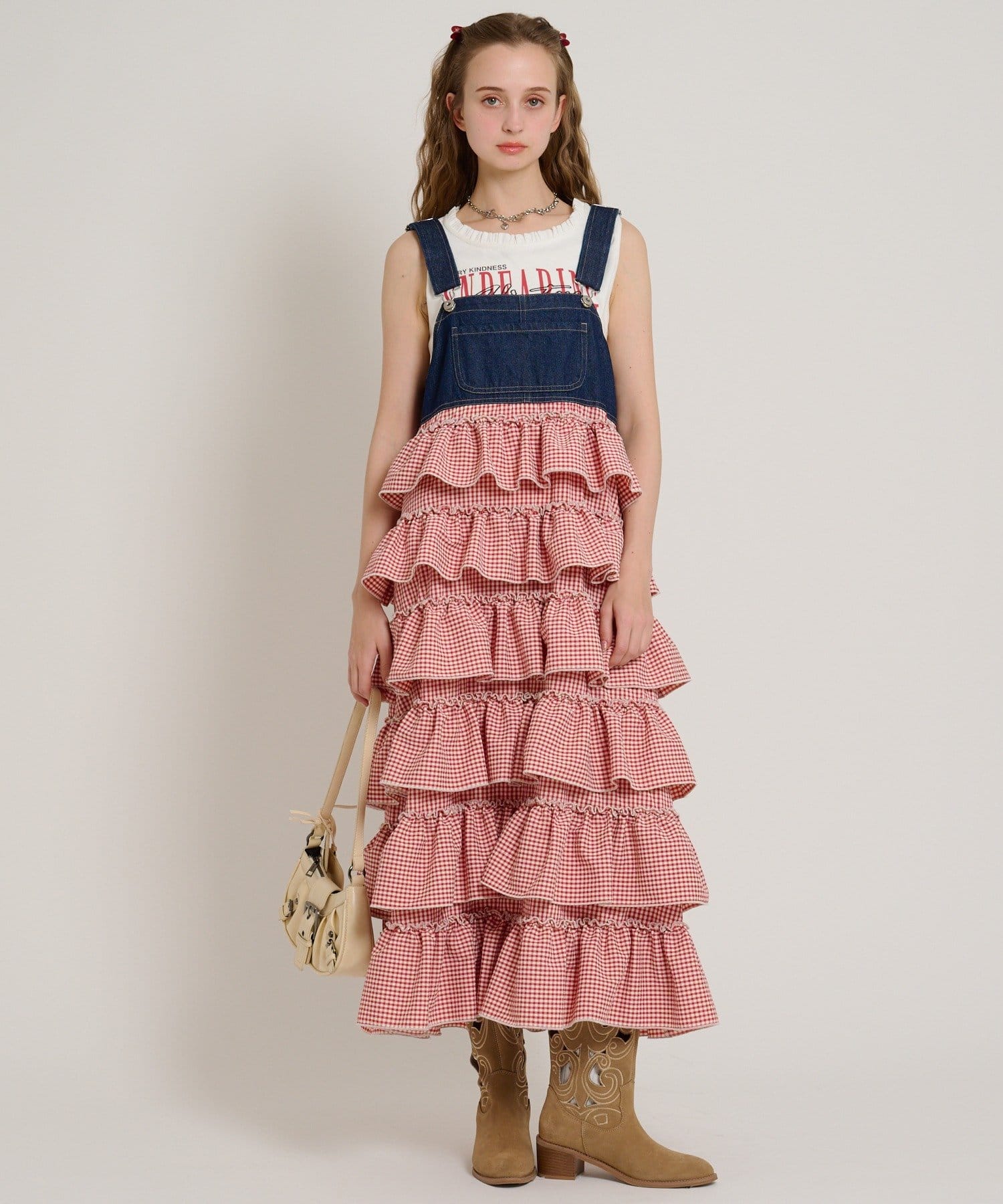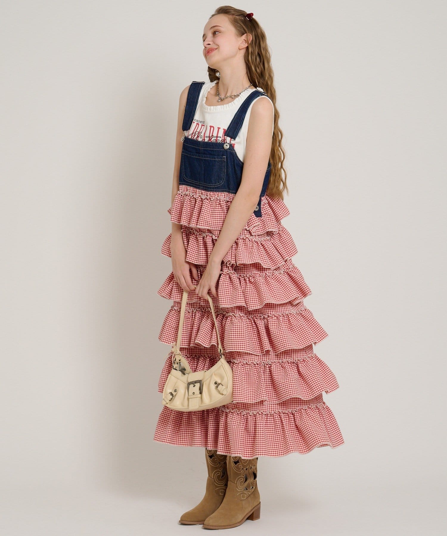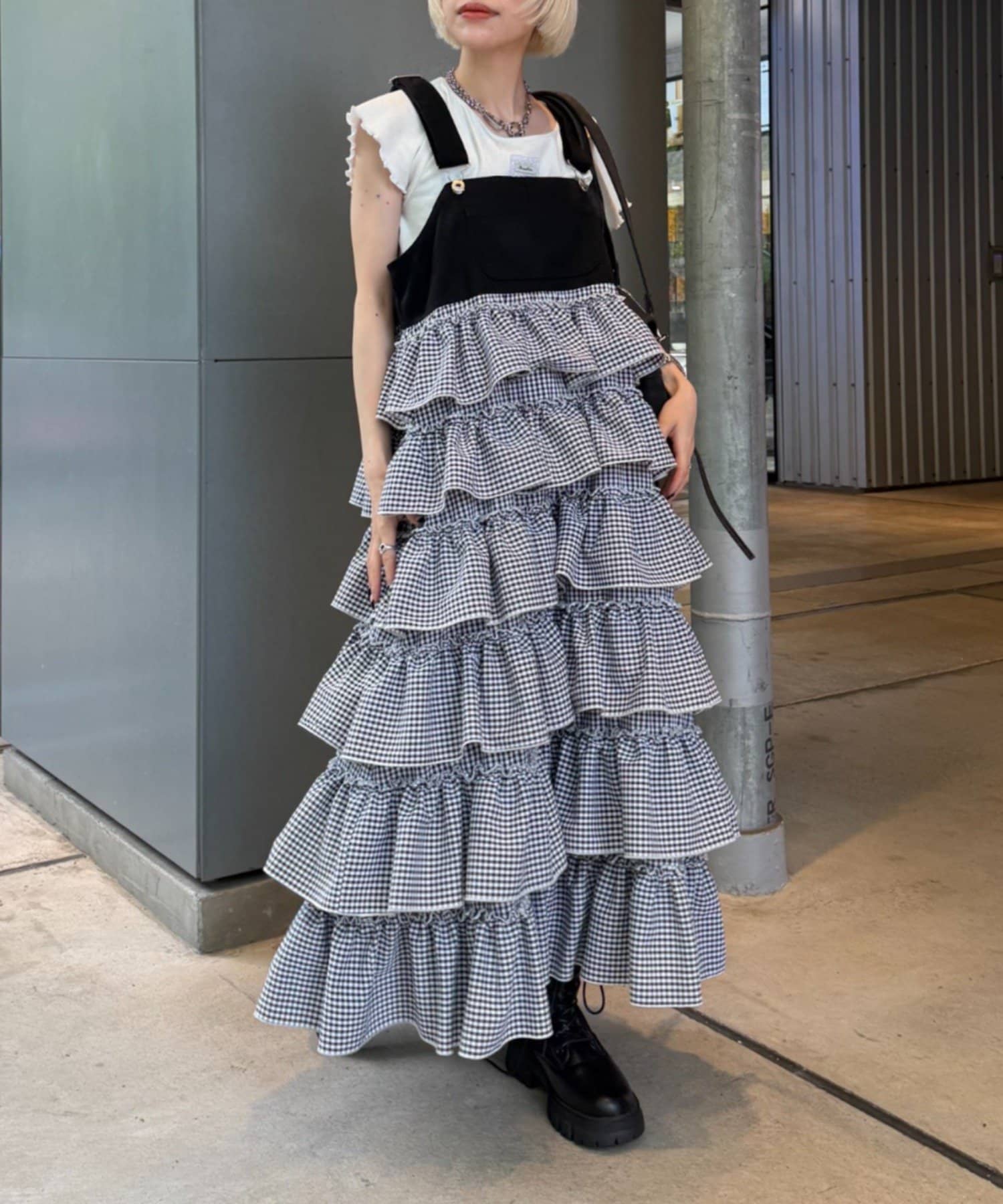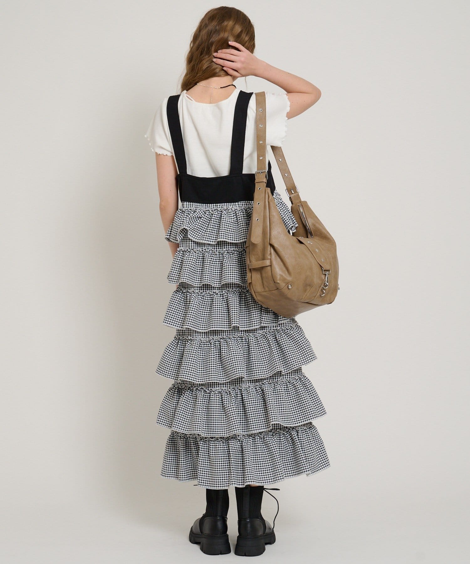 【オールシーズン使える!】【新色ギンガムチェック登場】フリルティアードジャンパースカート / レイヤードワンピース