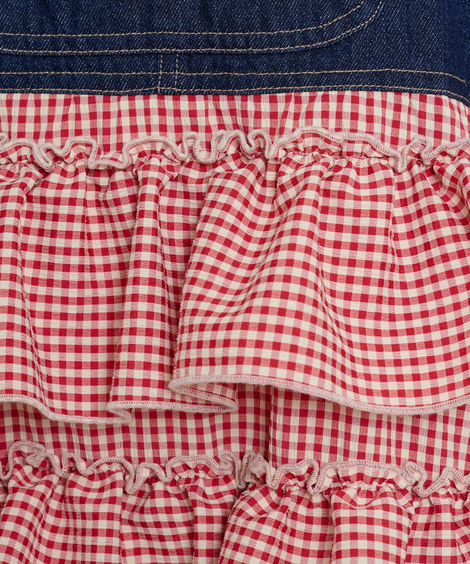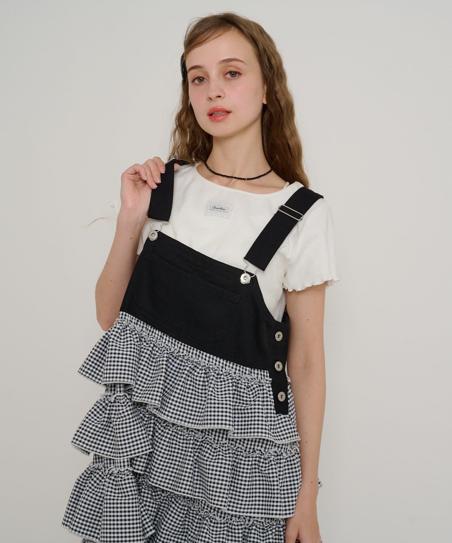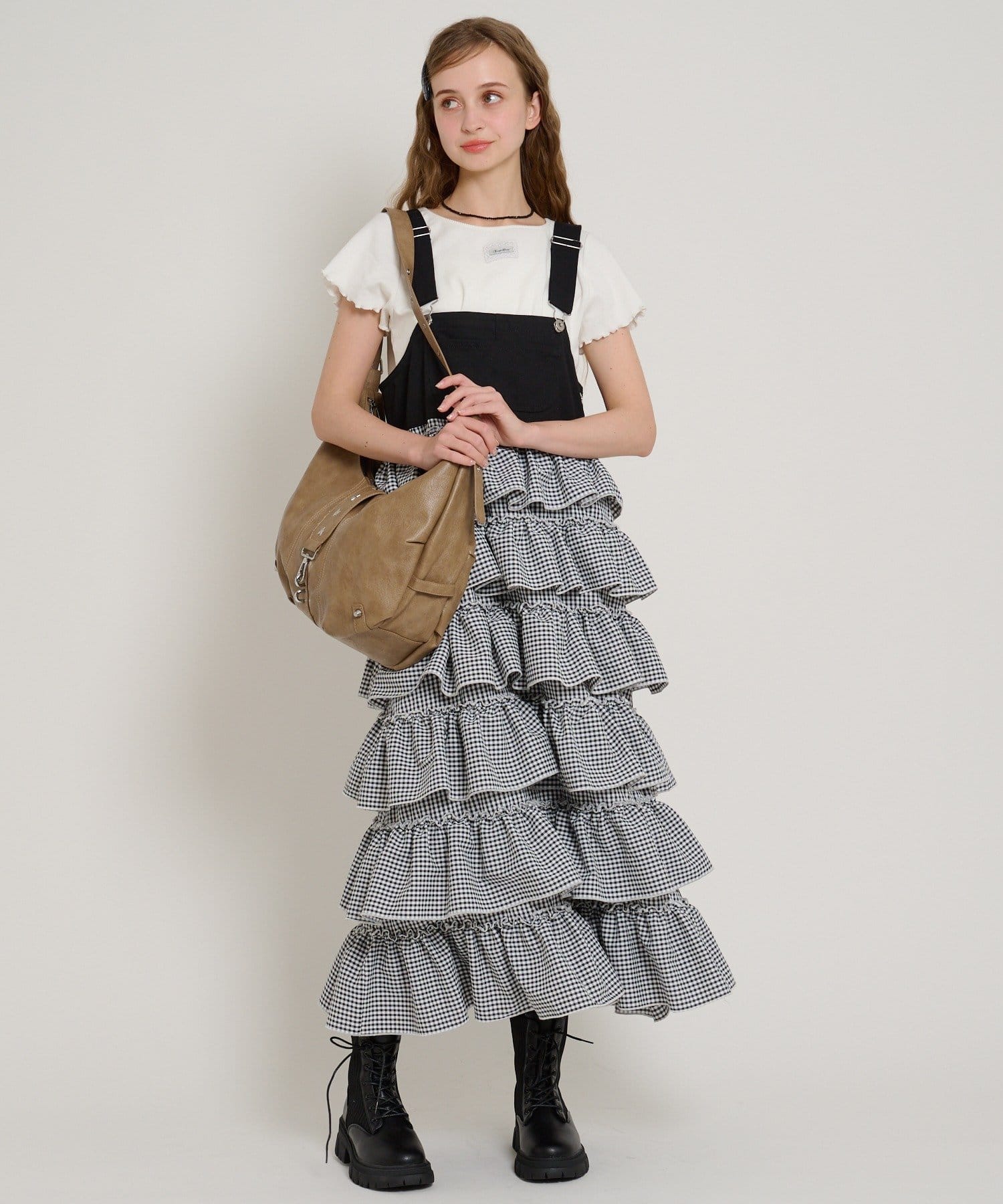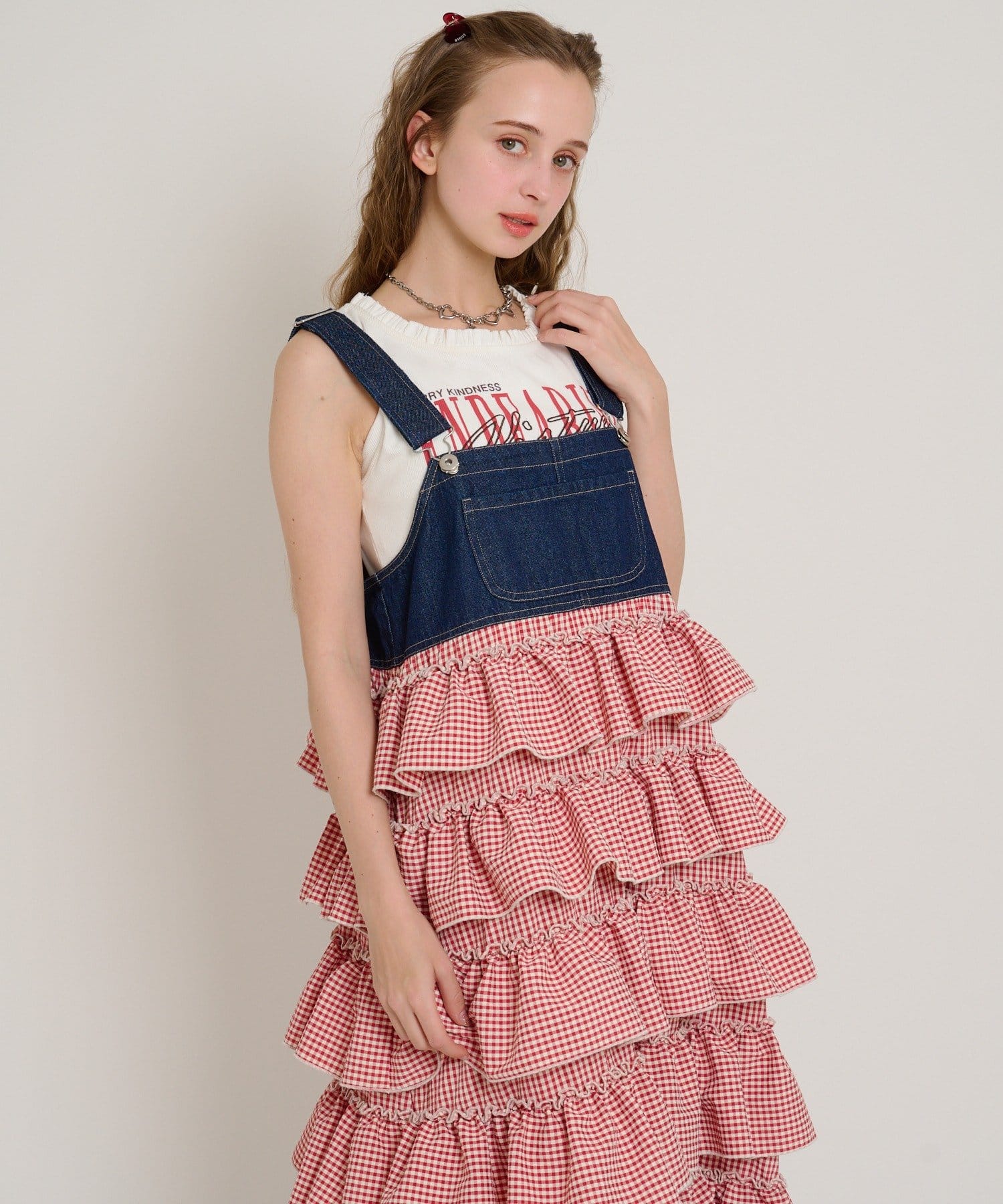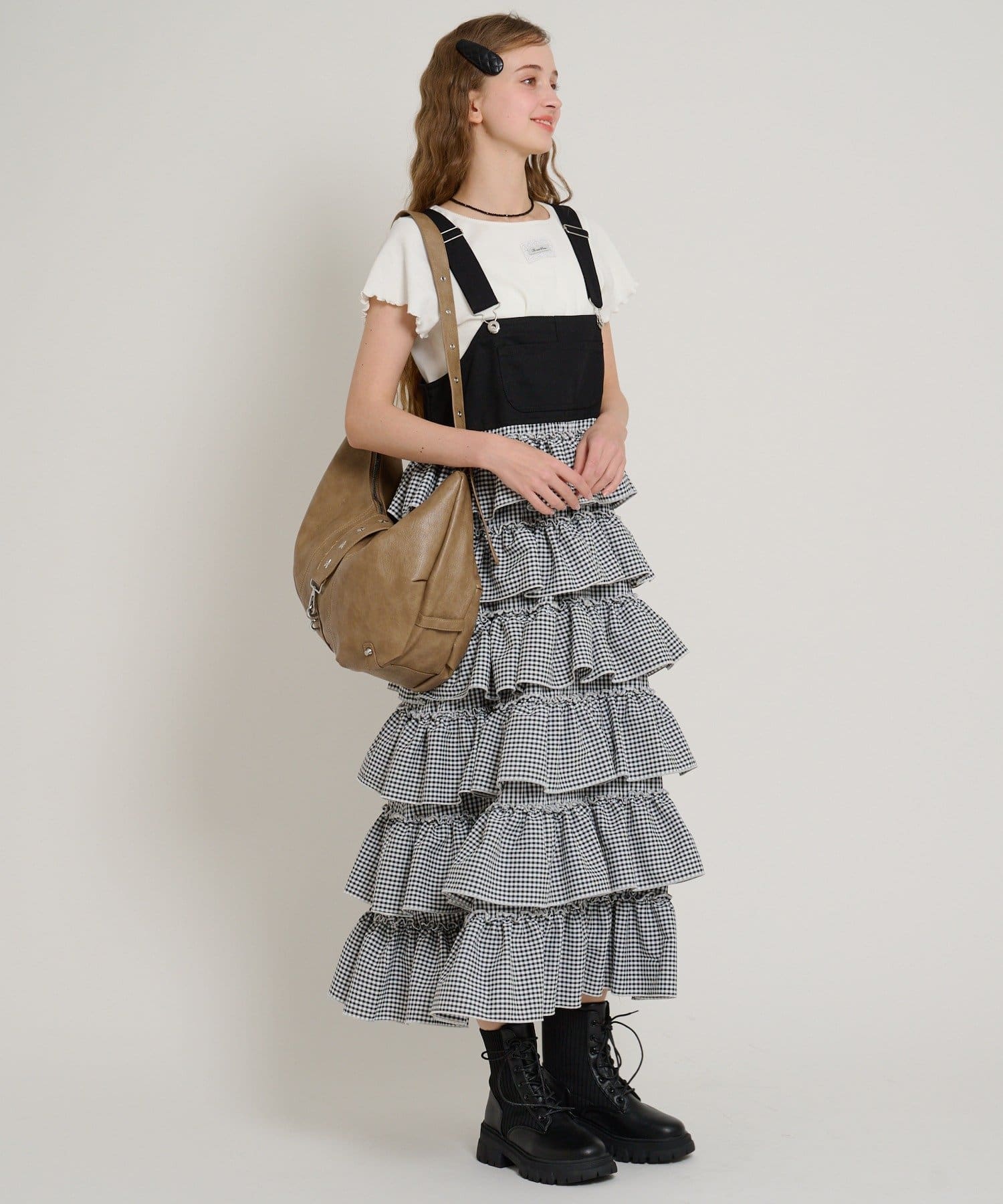 【オールシーズン使える!】【新色ギンガムチェック登場】フリルティアードジャンパースカート / レイヤードワンピース