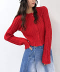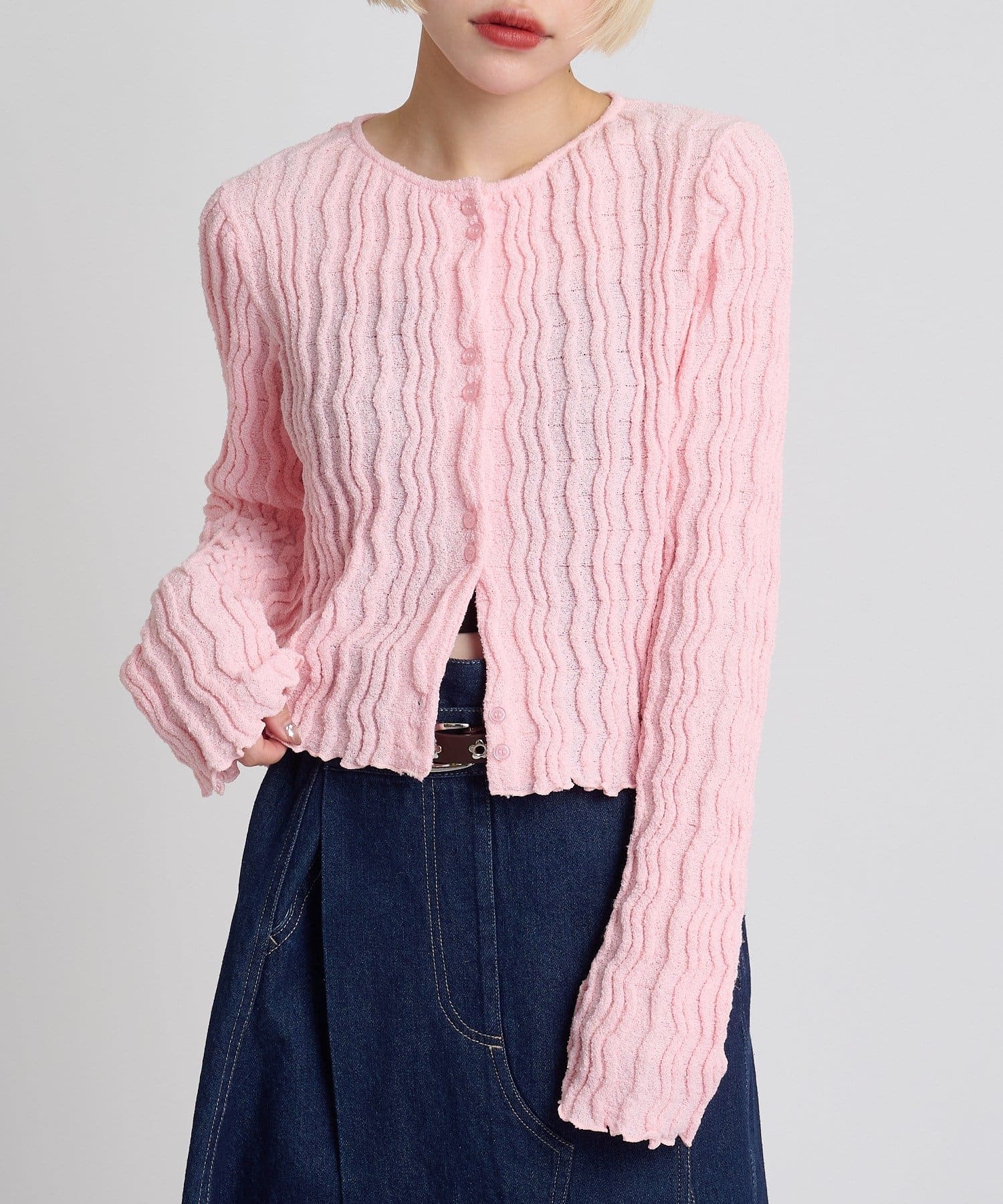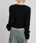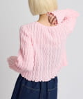 ・表情のあるブークレ素材が目を引くショート丈カーディガン