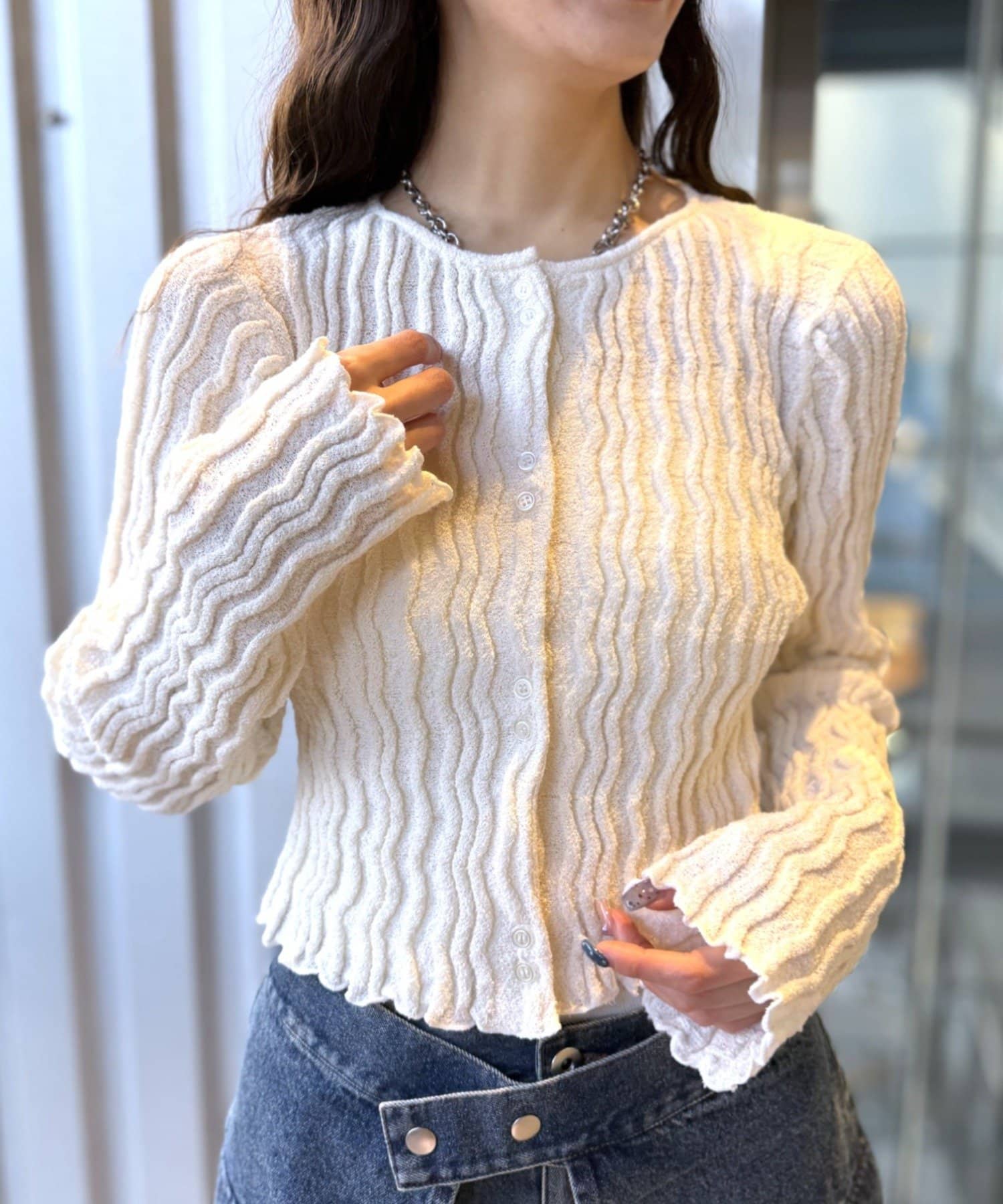 ・羽織としてもインナーとしても、着用しやすい厚さのデイリー向きアイテムです!