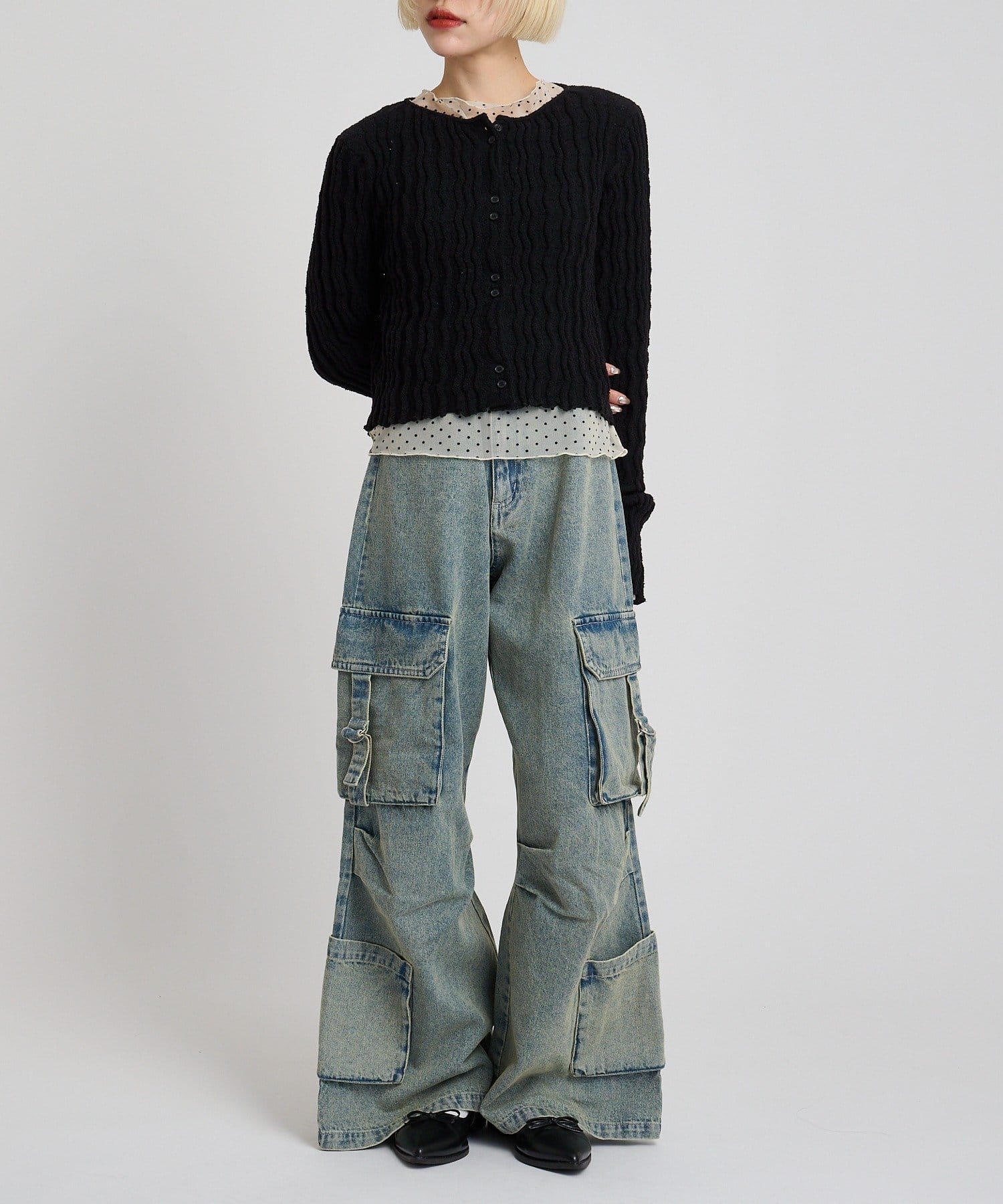 ブークレショートカーディガン