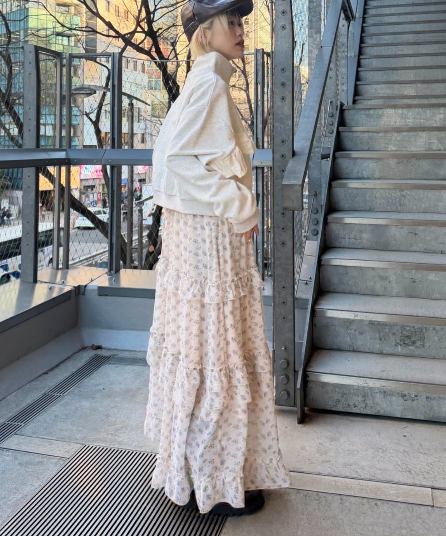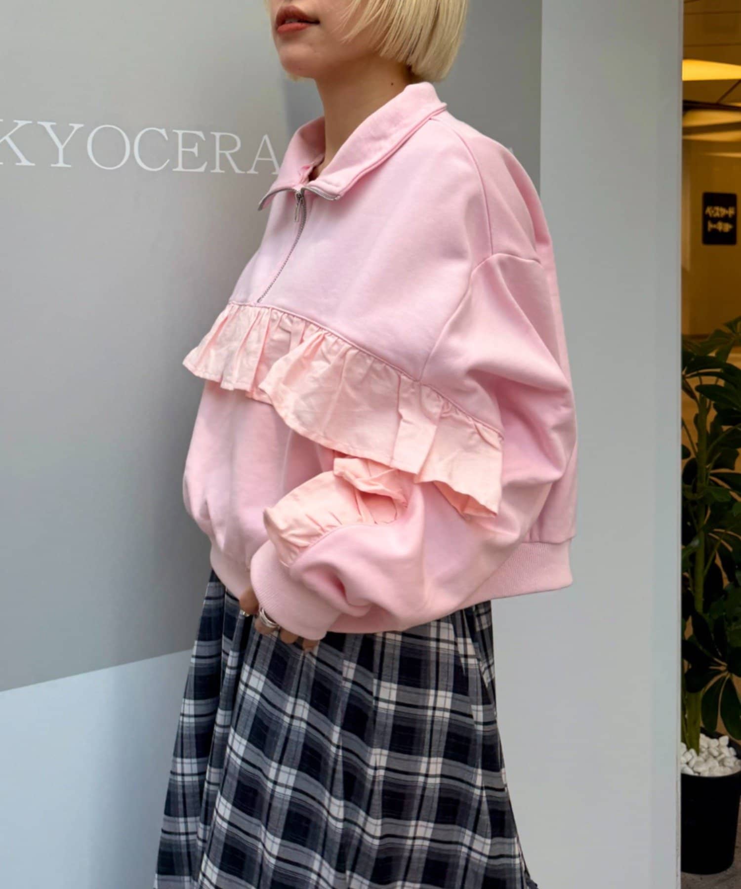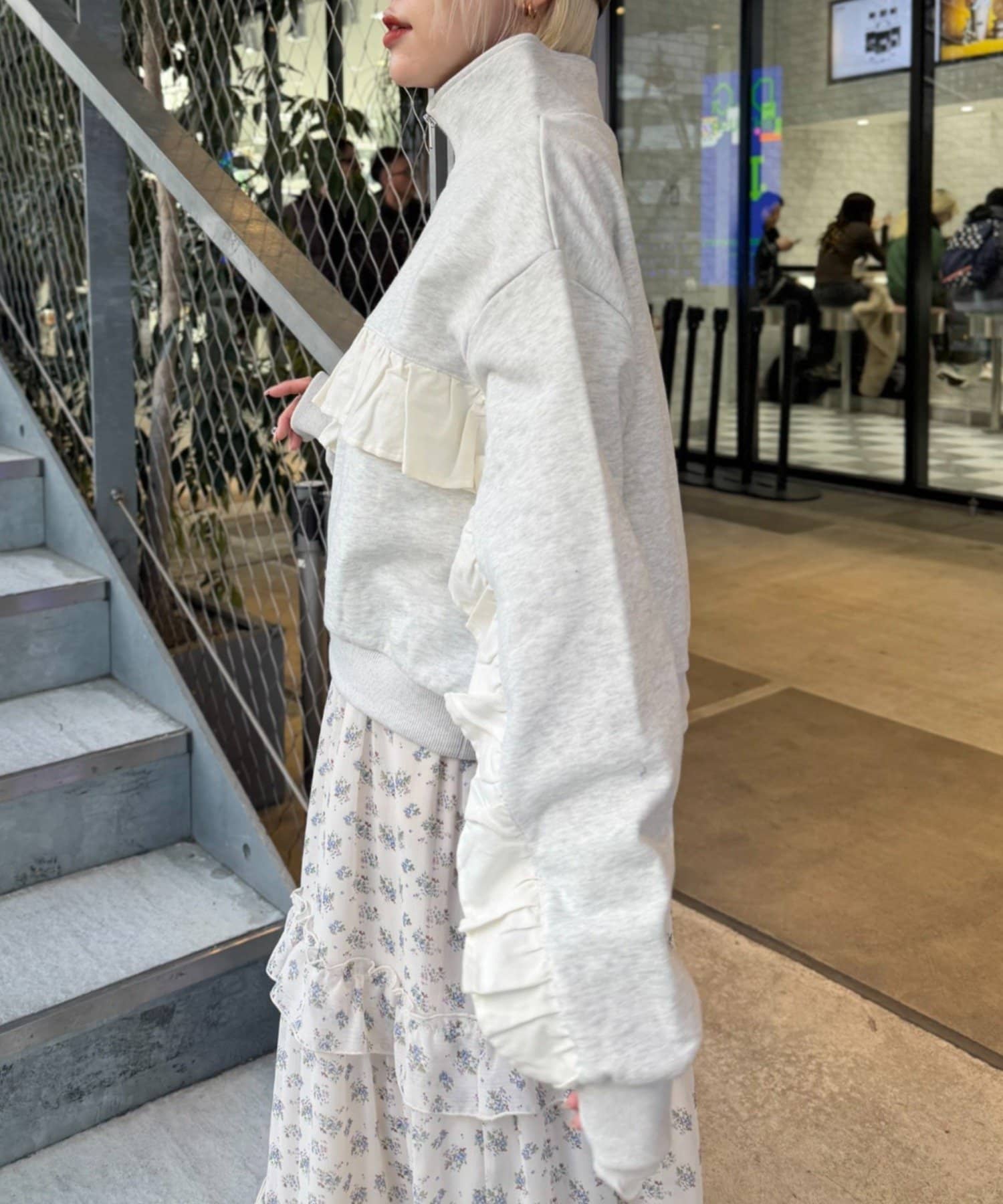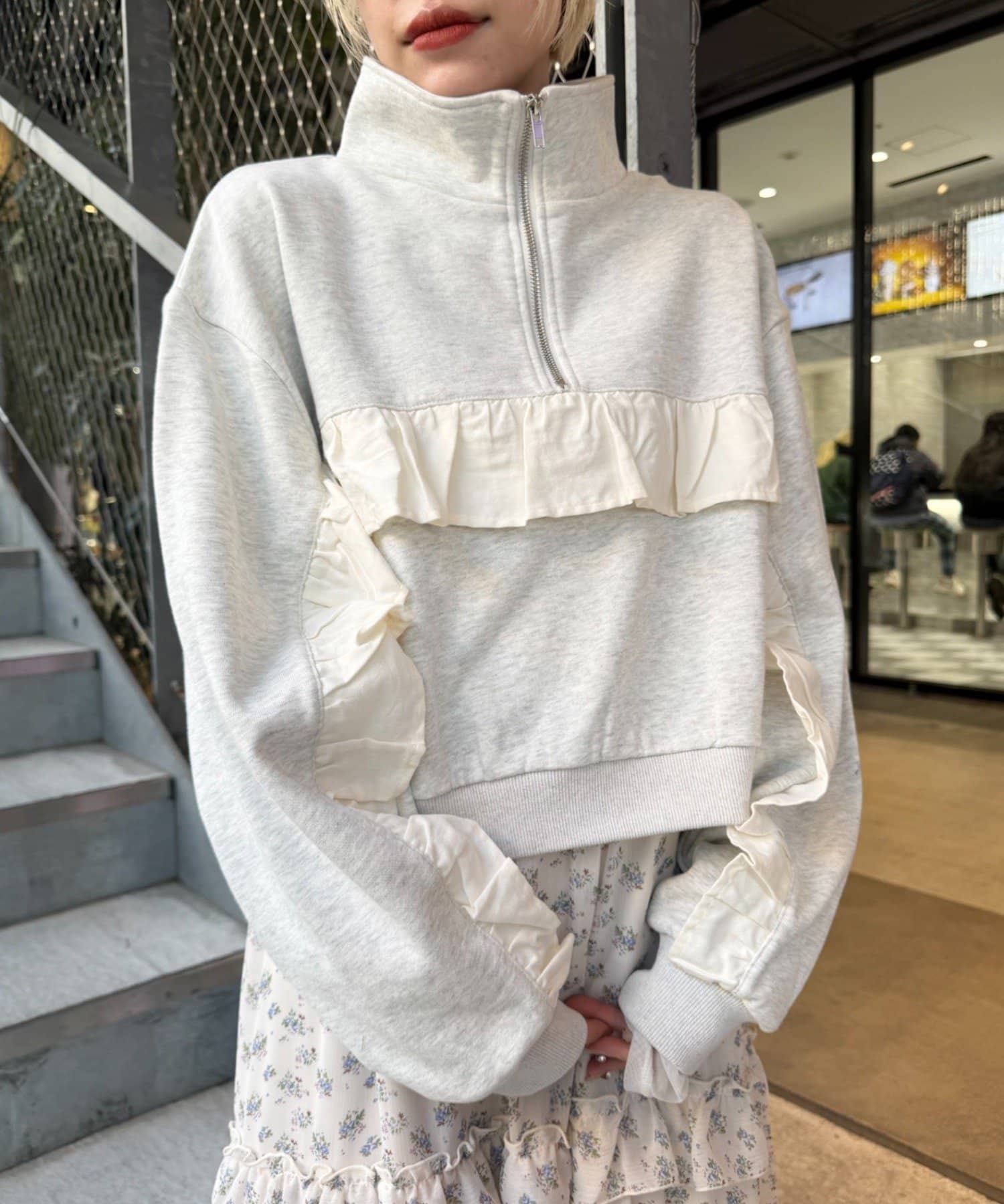 ハーフジップフリルスウェット