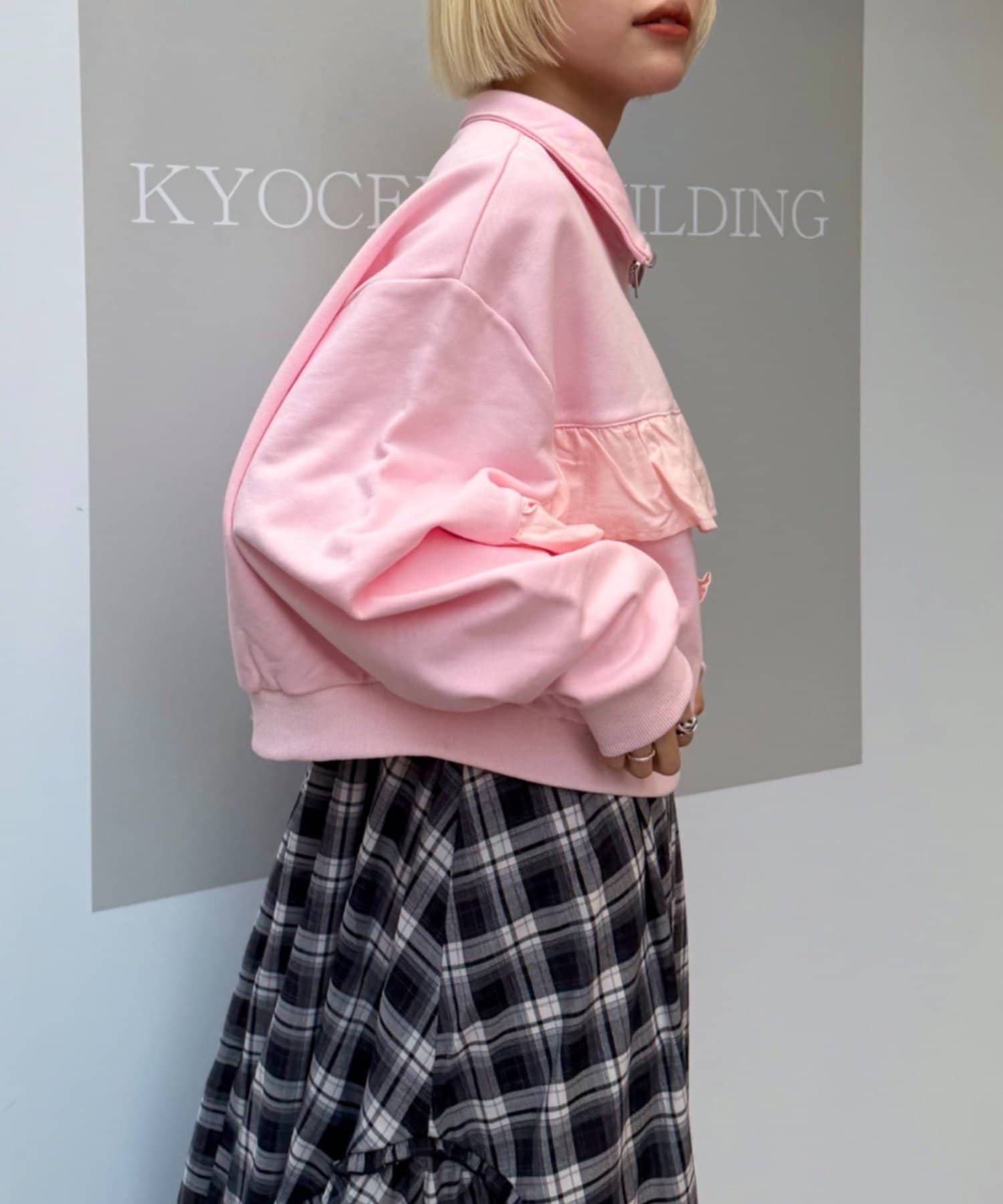 ・カジュアルなスウェット素材に、フリルをドッキングすることで立体感のある仕上がりに