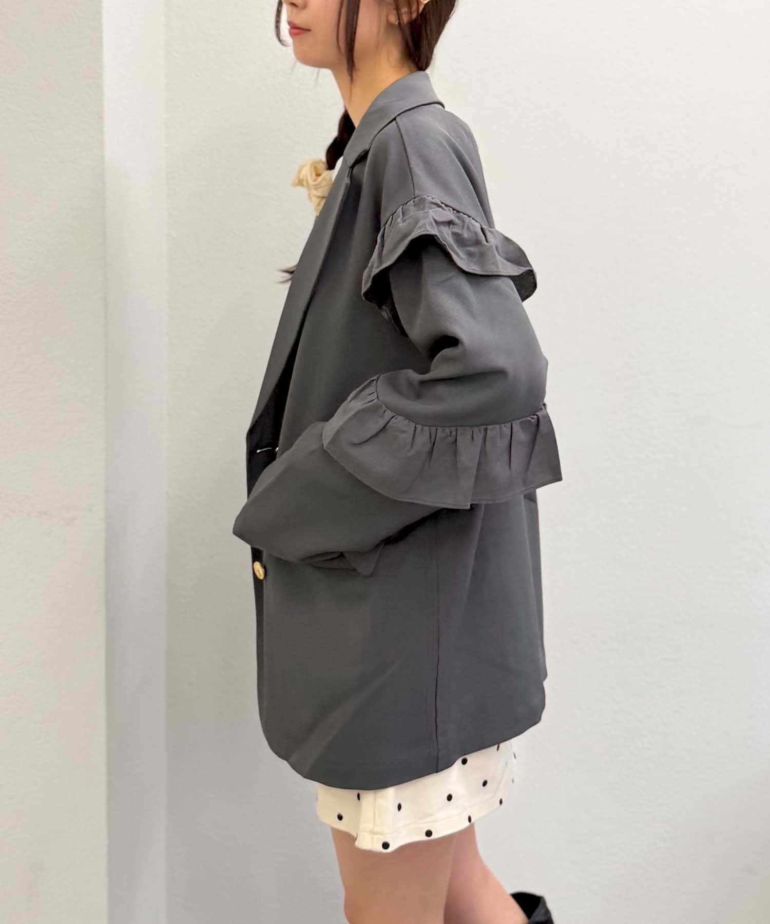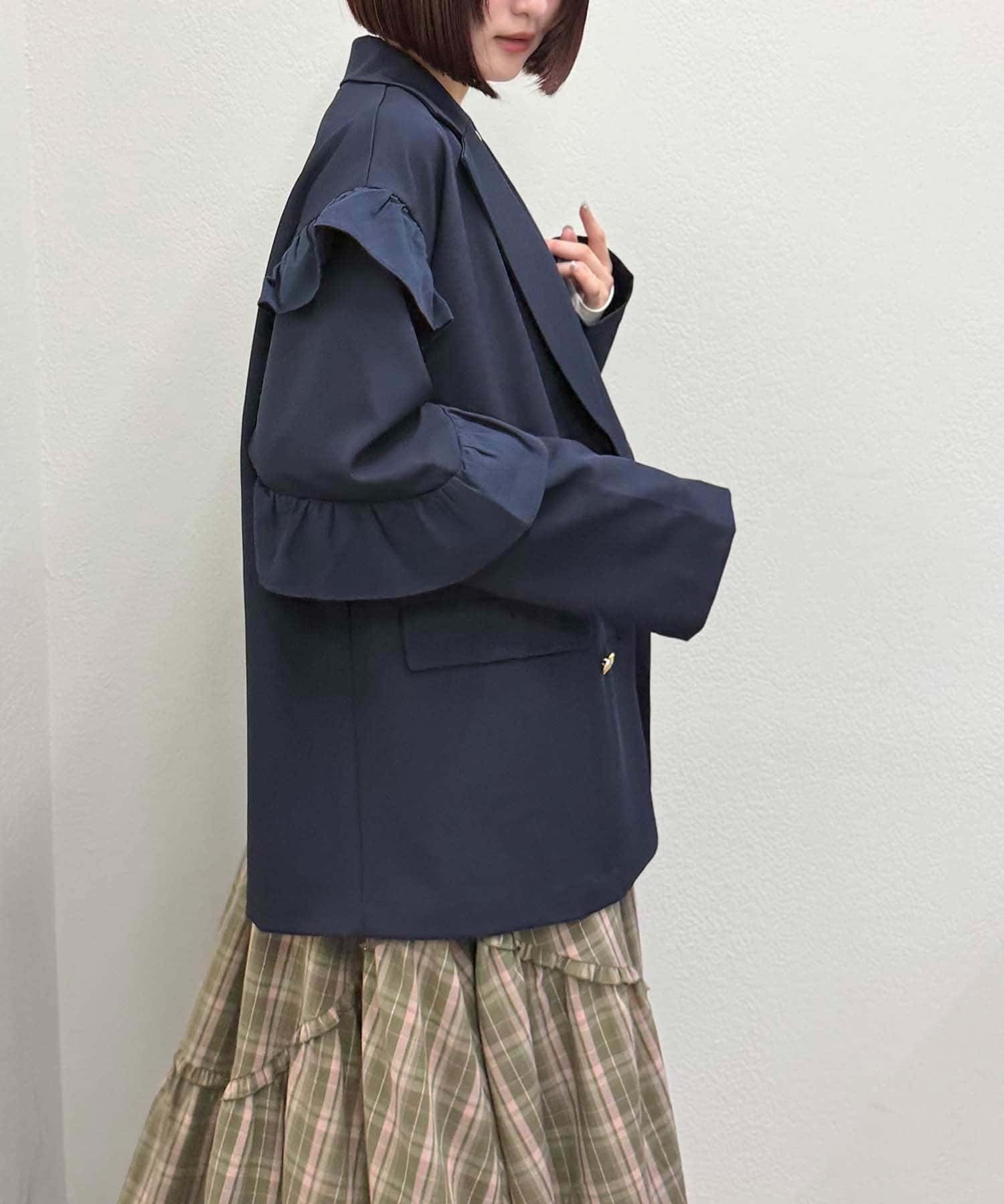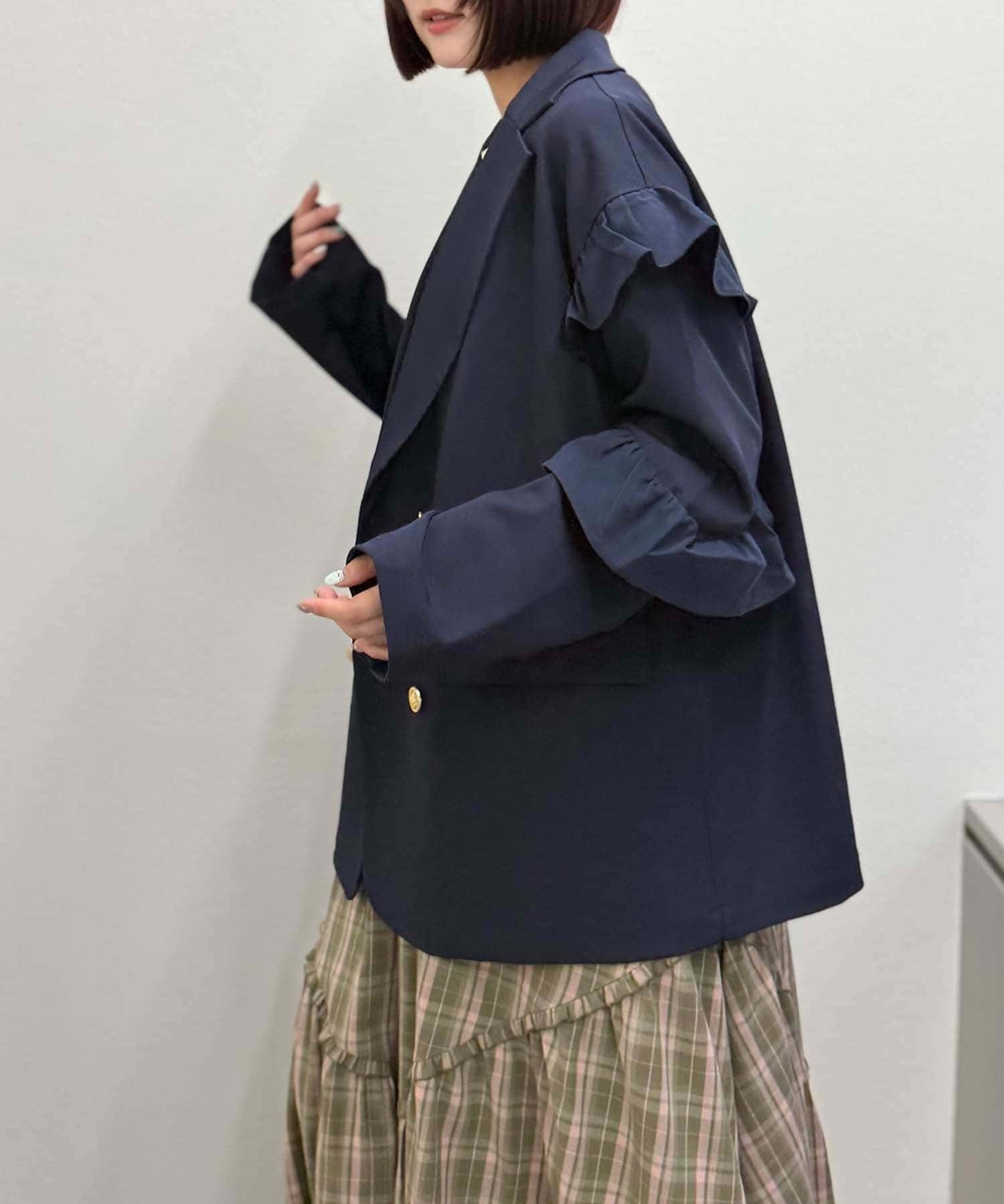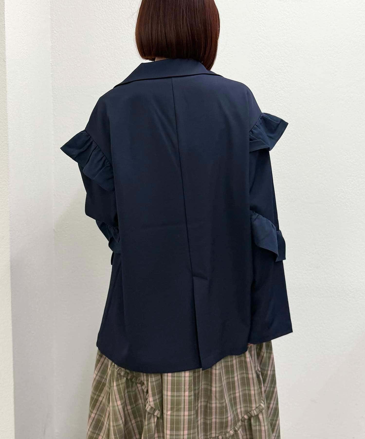 ・肩と袖に施されたフリルデザインが、ジャケットに立体感と華やかさをプラス!