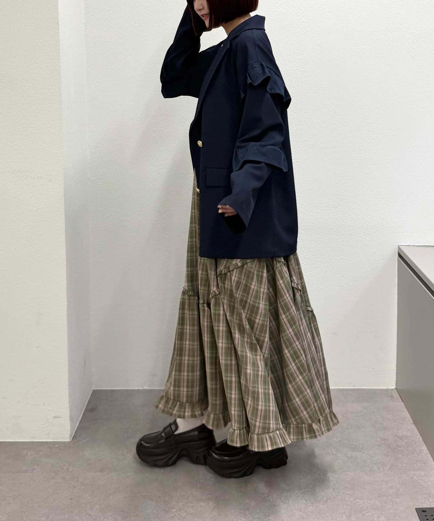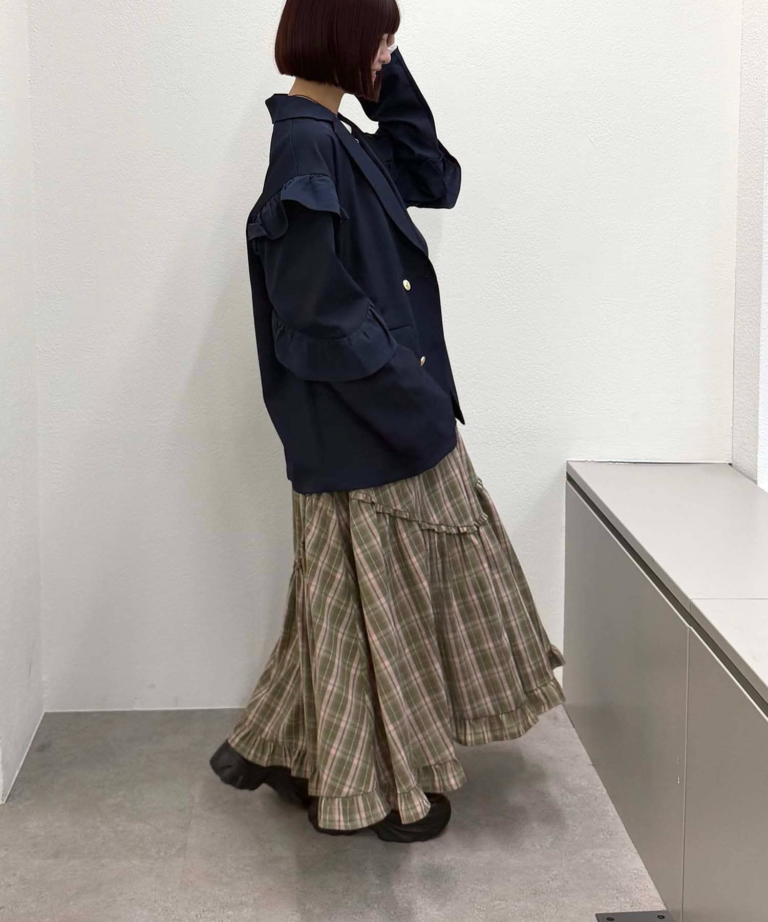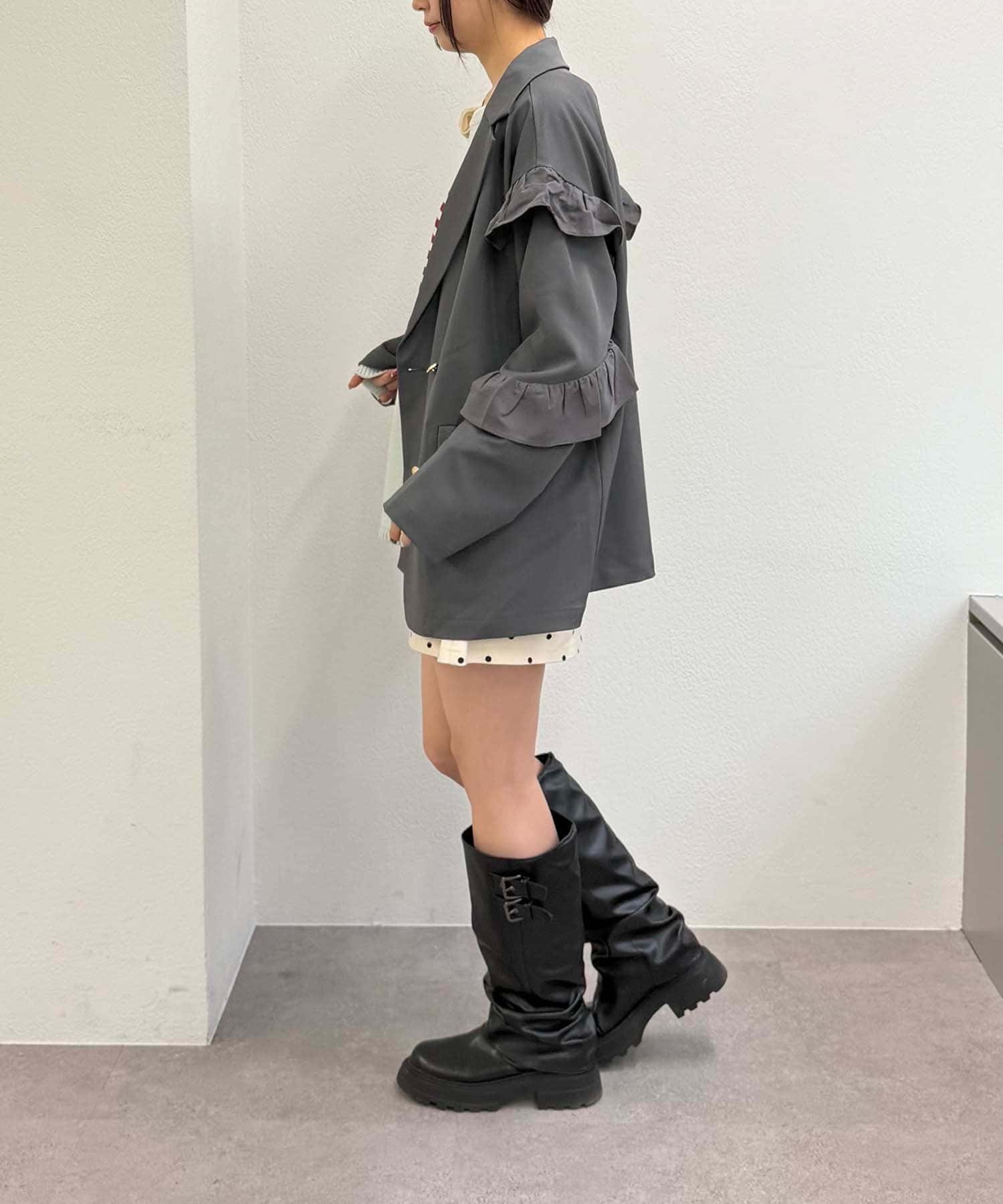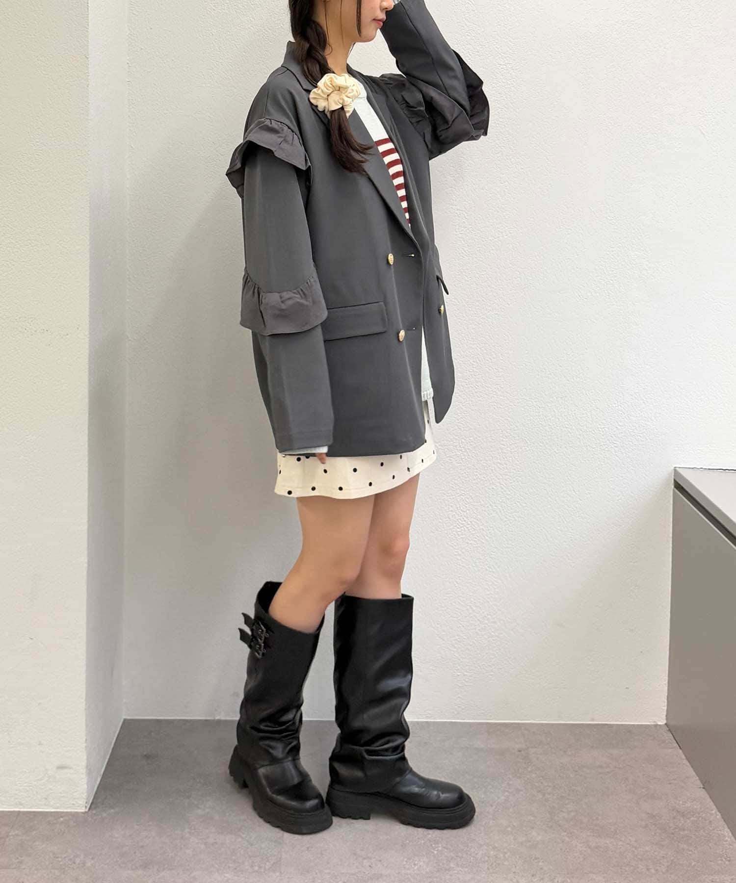 ・甘さのあるアイテムに羽織ることで、フリルディテールが引き立ち、バランスの取れたスタイリングが完成!