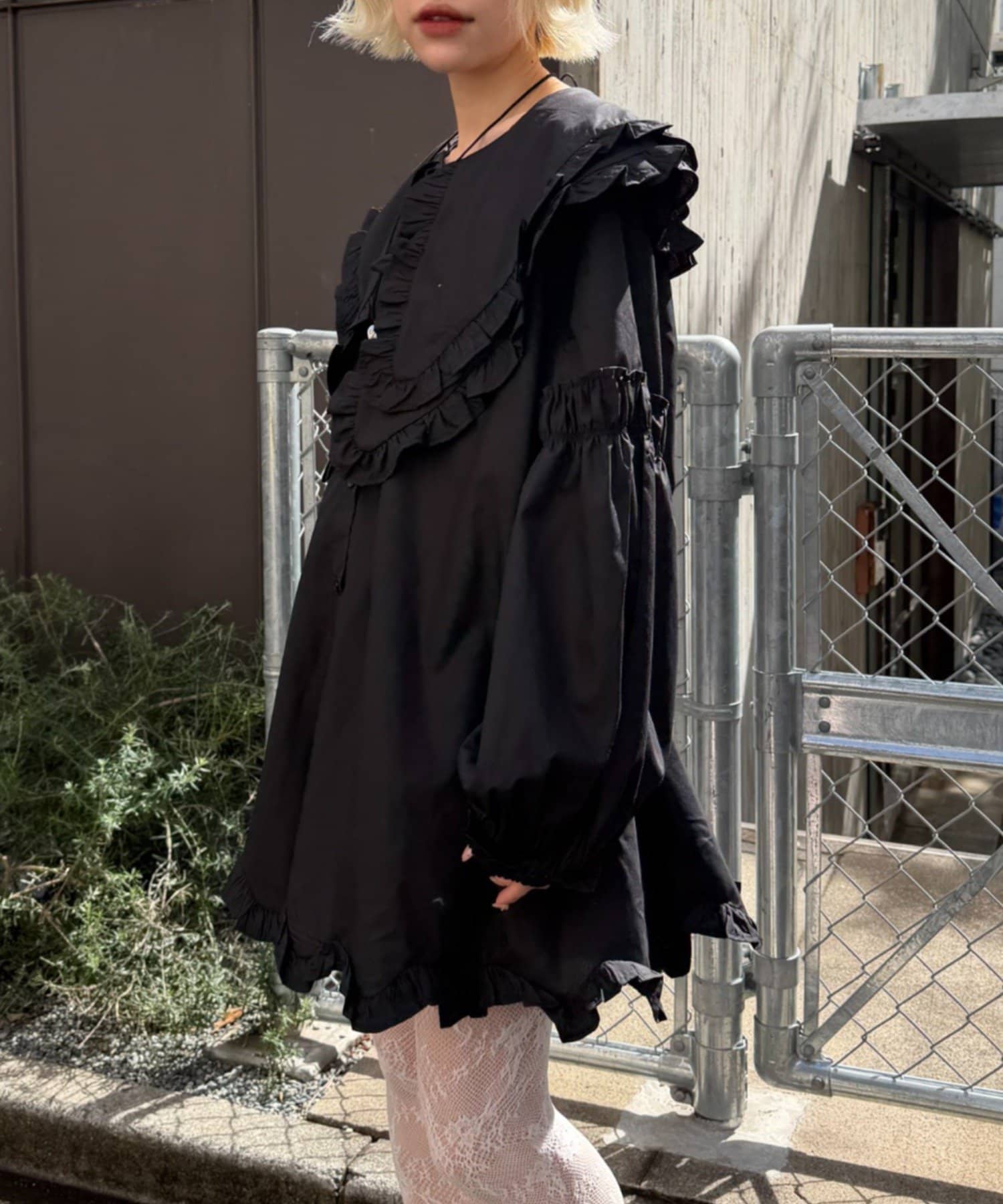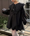 ・顔まわりを華やかに見せてくれるビッグフリルカラーがポイントのミニワンピース