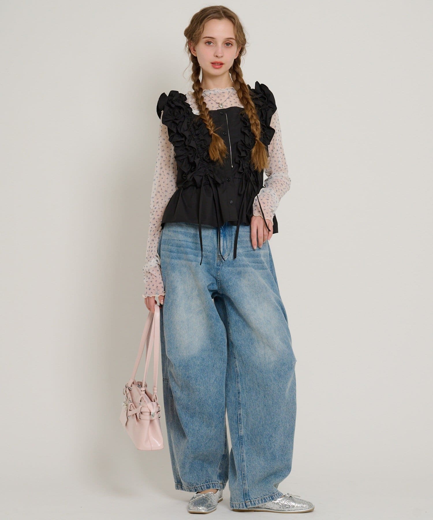そのままでもレイヤードでも可愛い、フリル×ドロストブラウス!