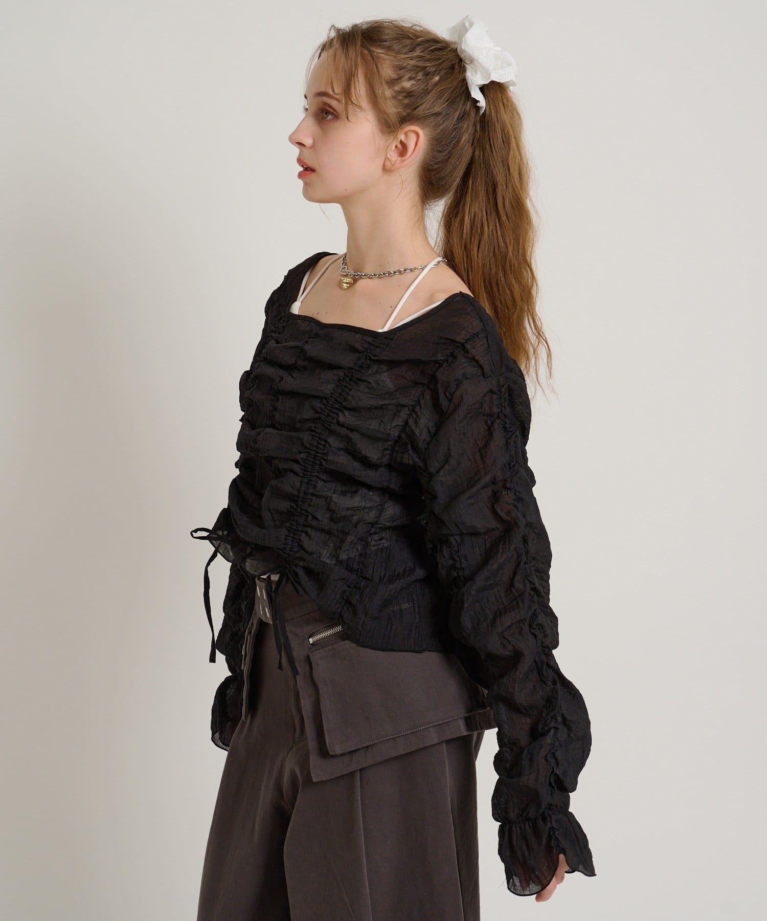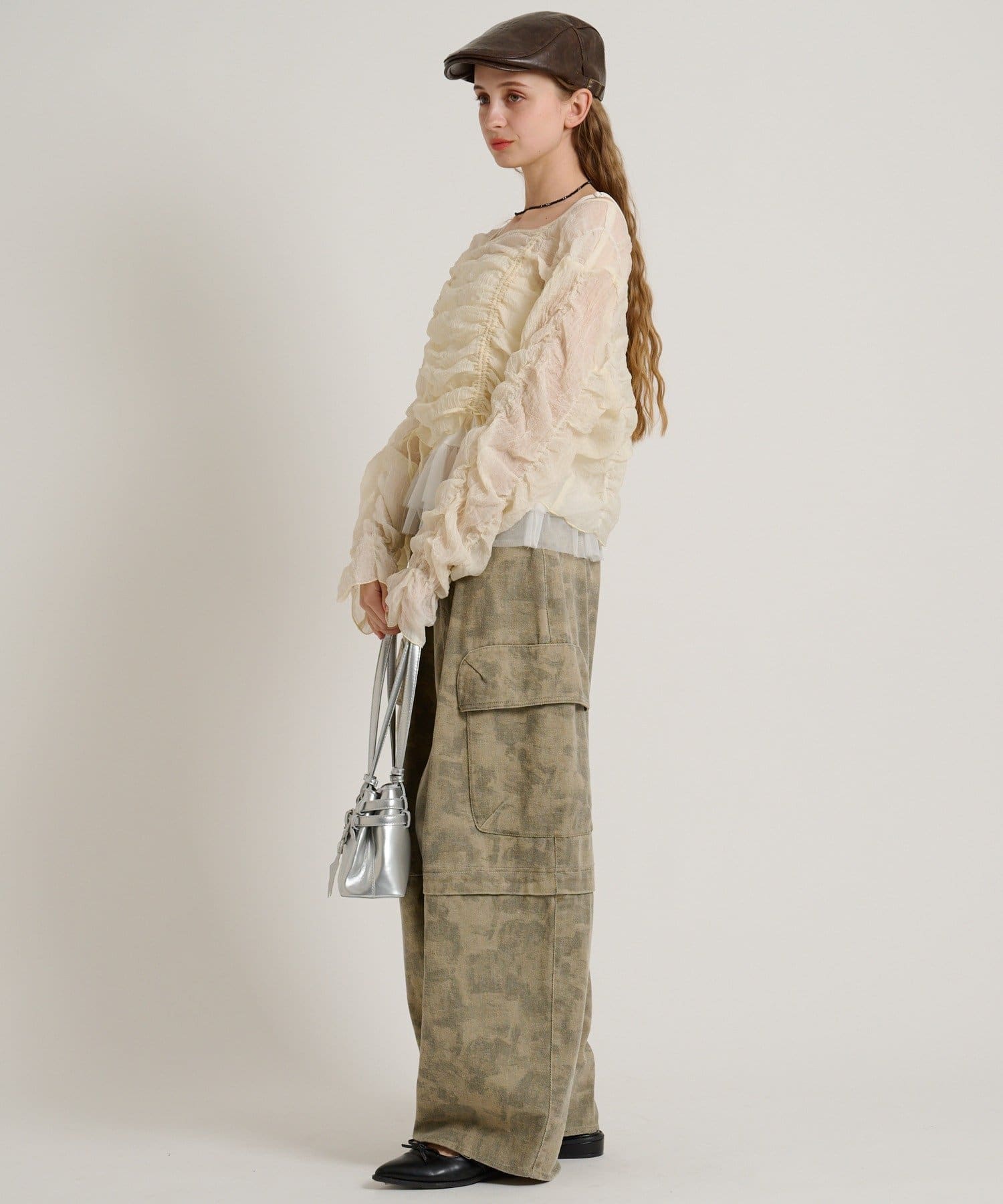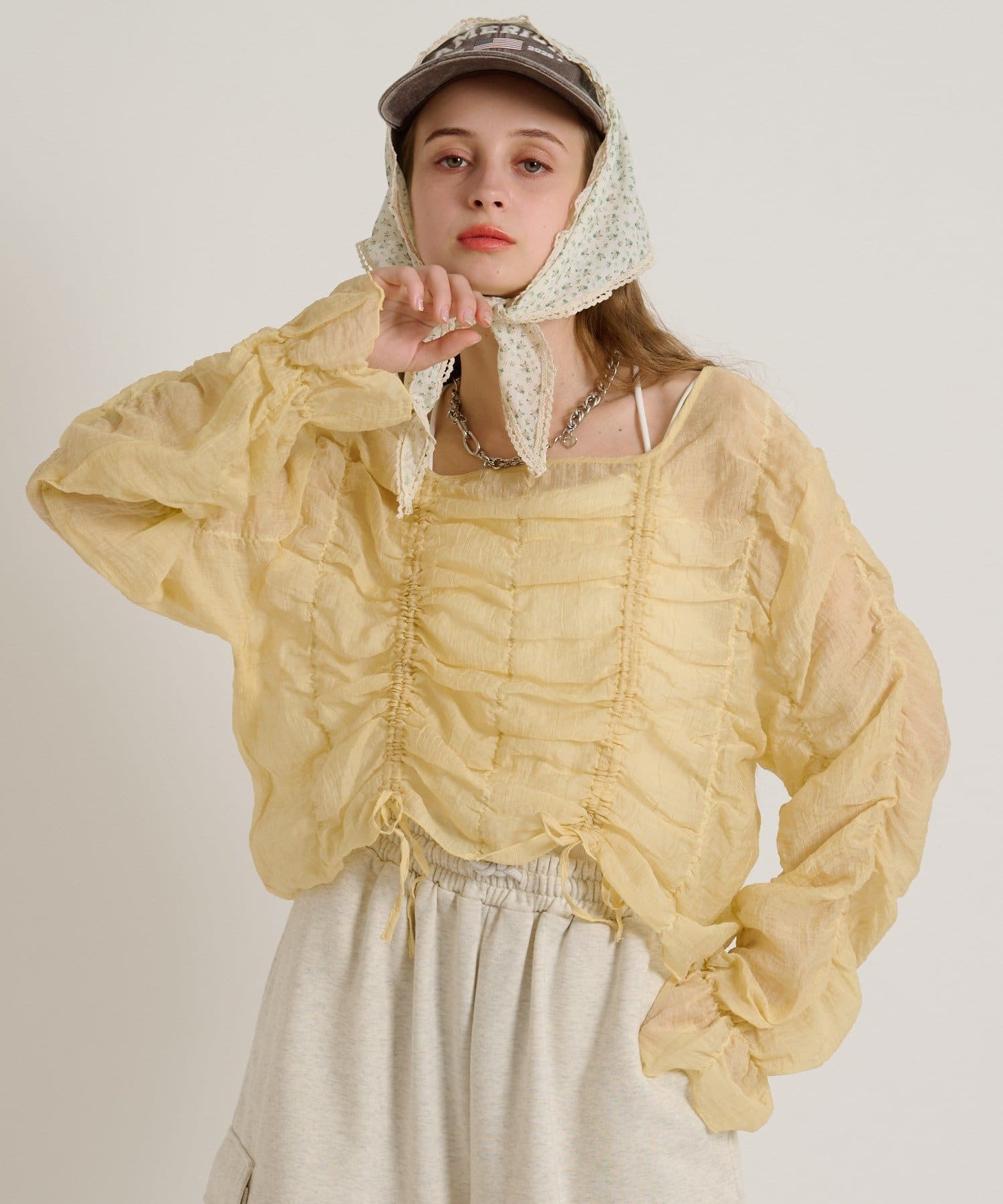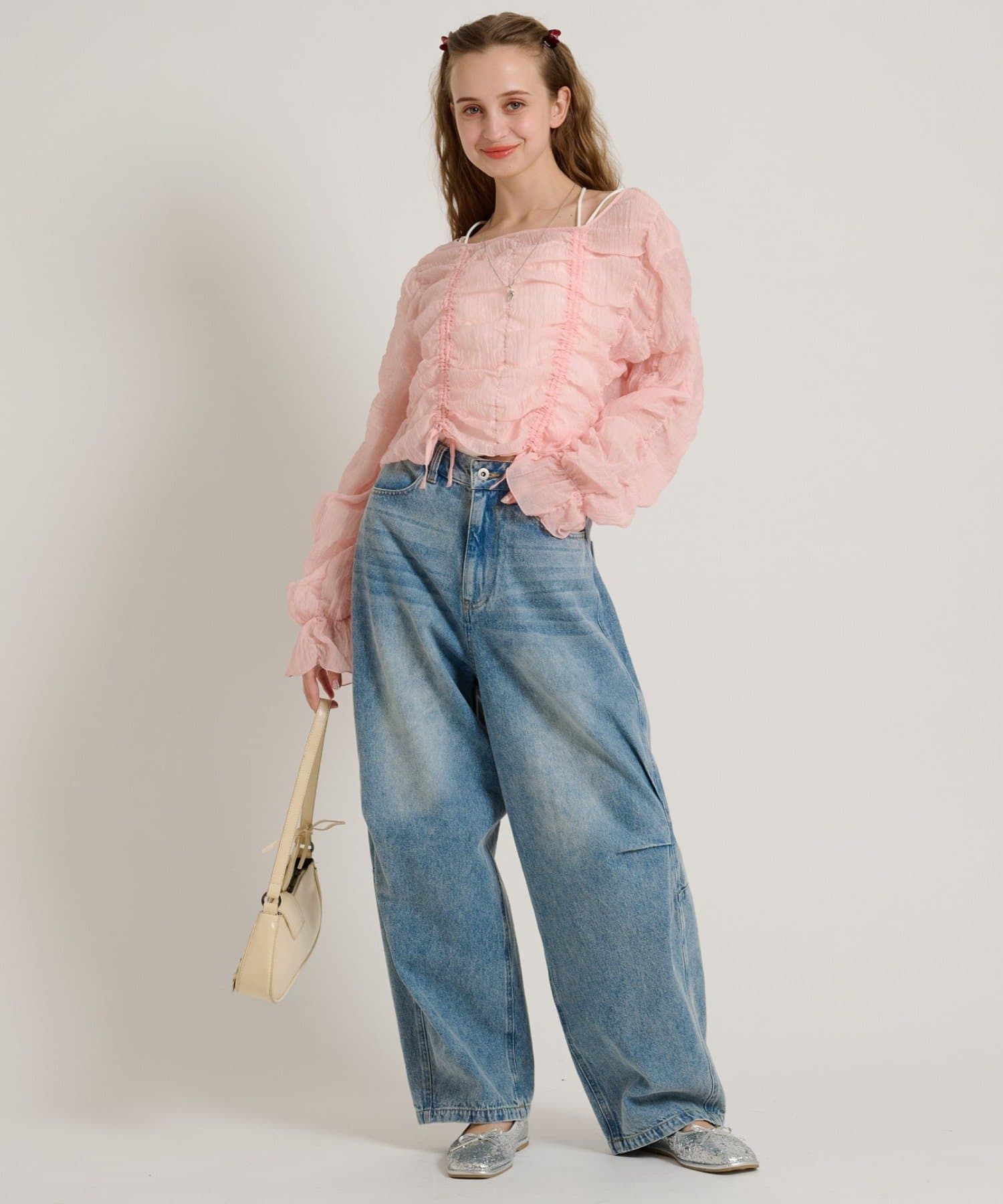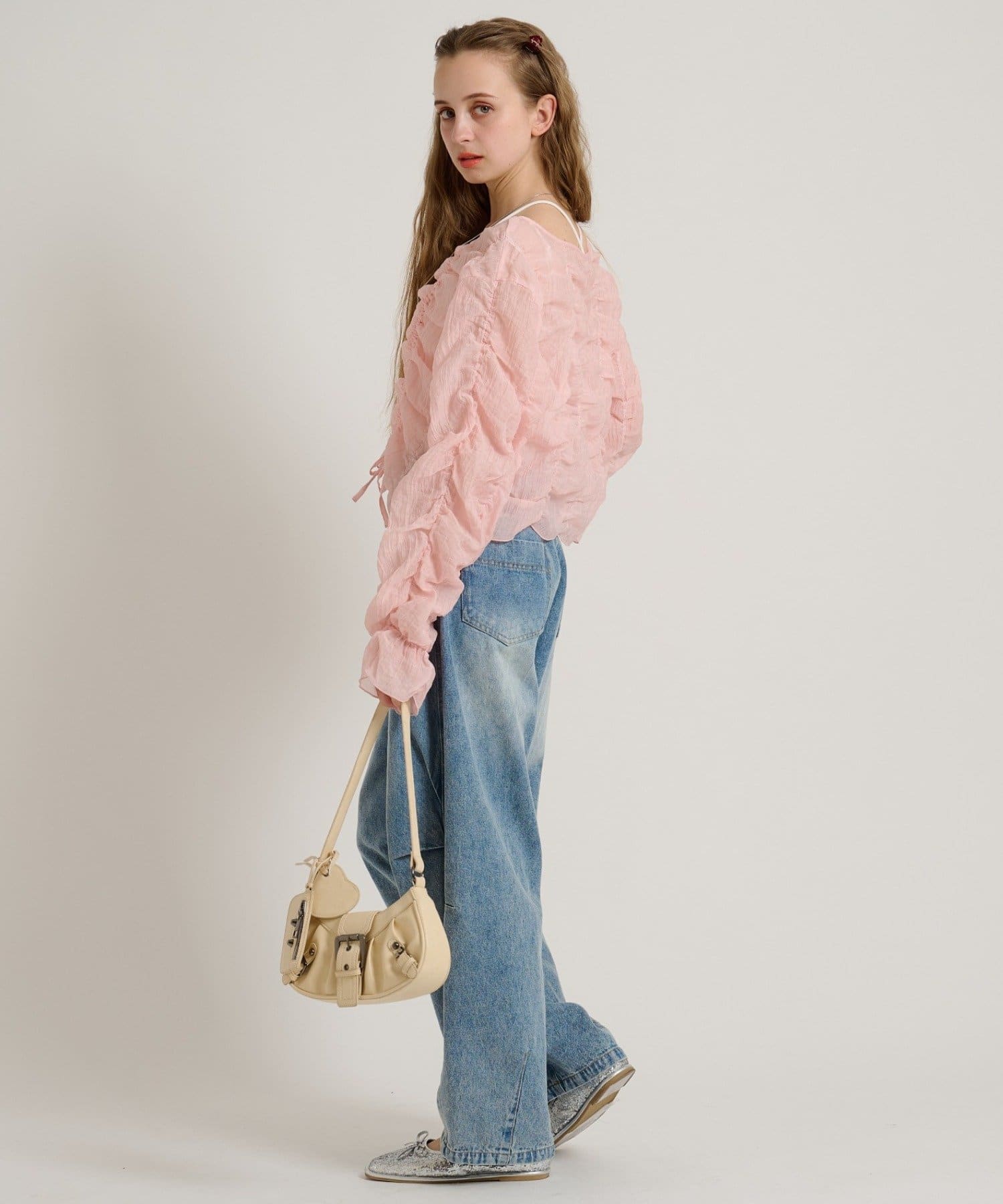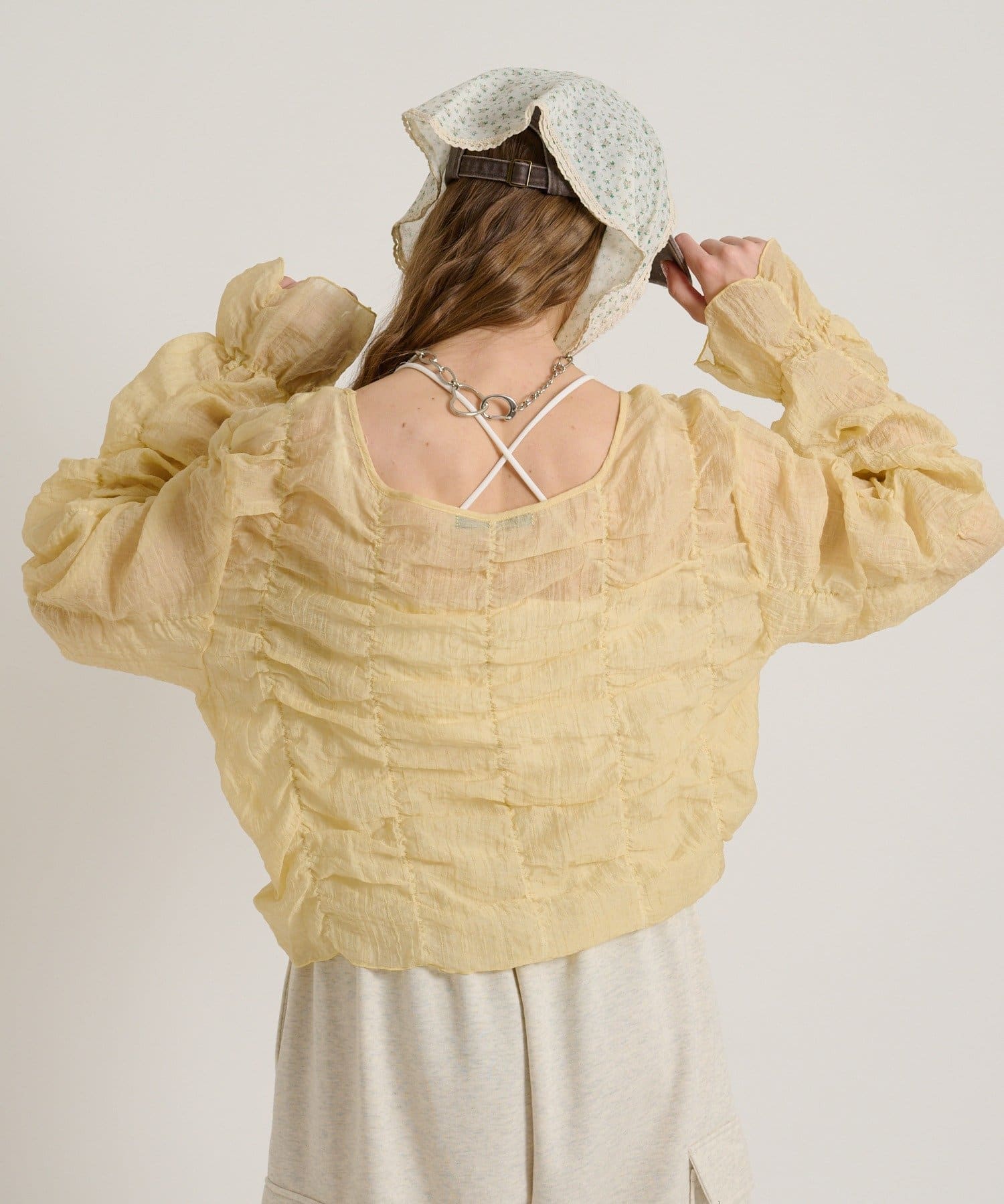 ・透け感のある生地とホイップのようにたっぷり入ったギャザーで着やせ効果も◎