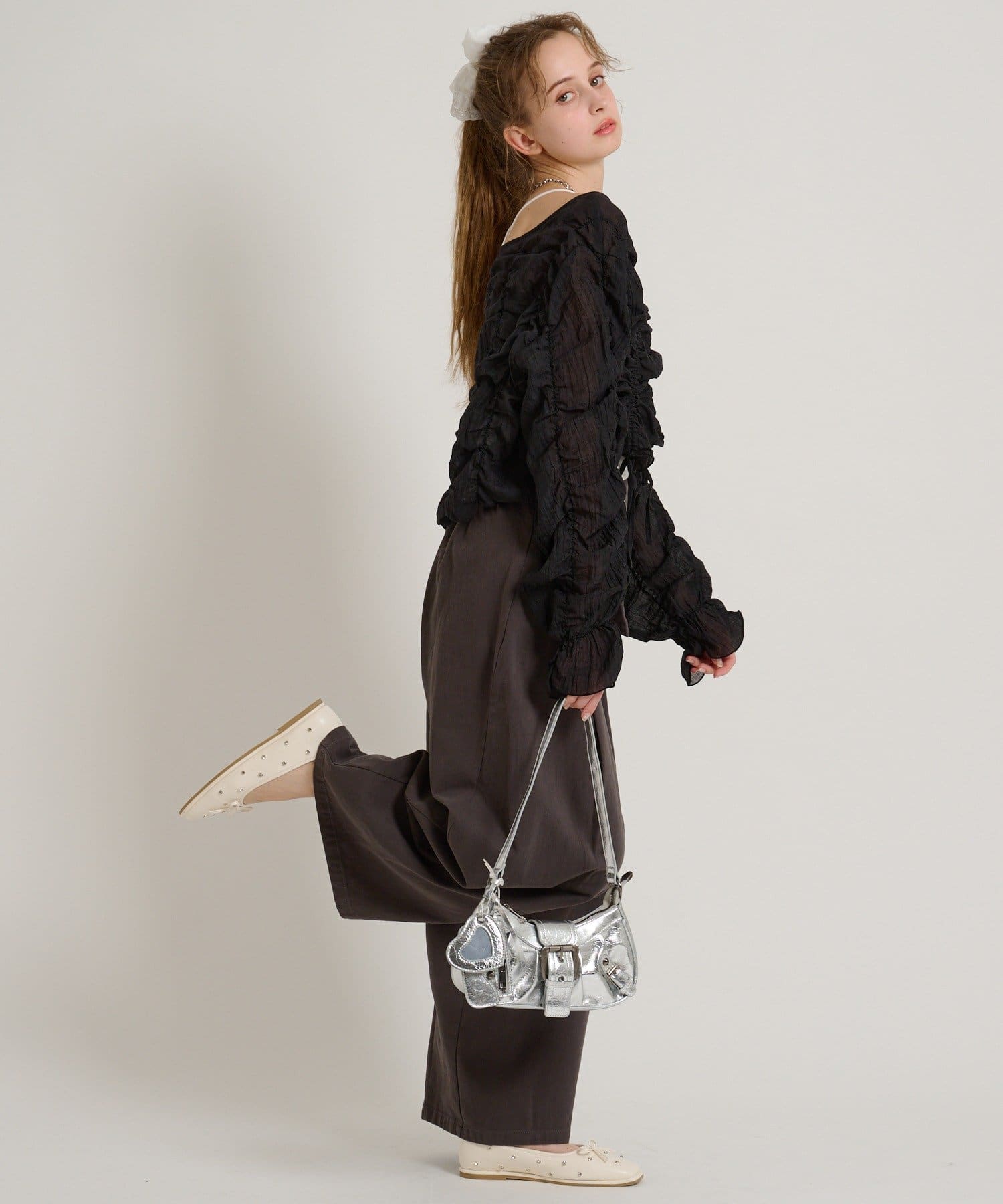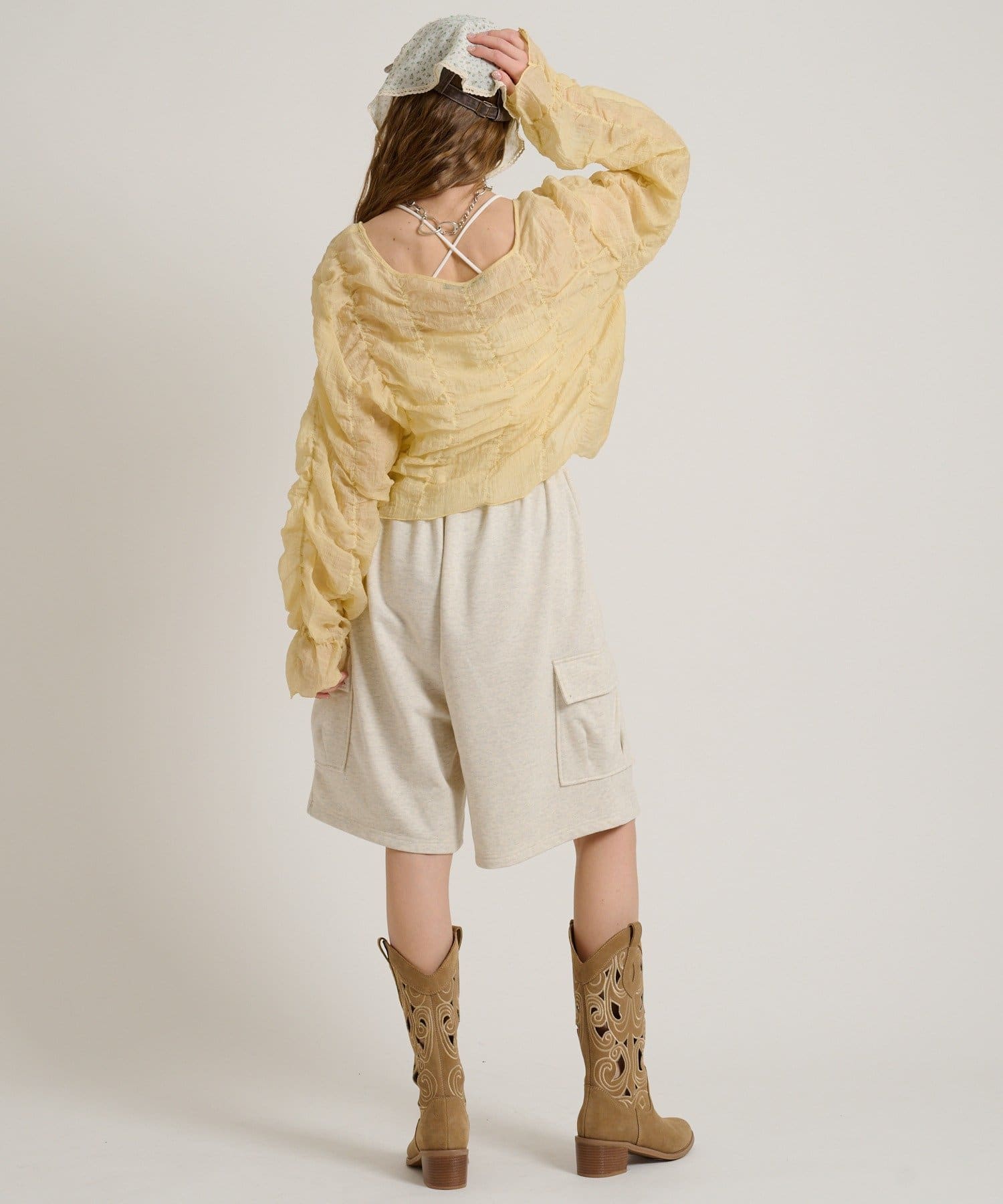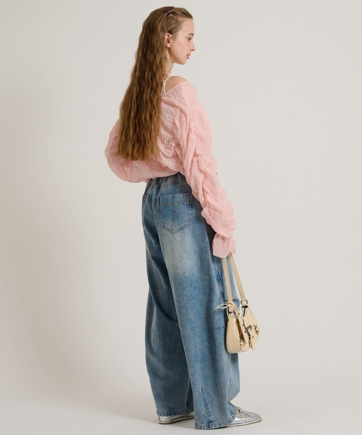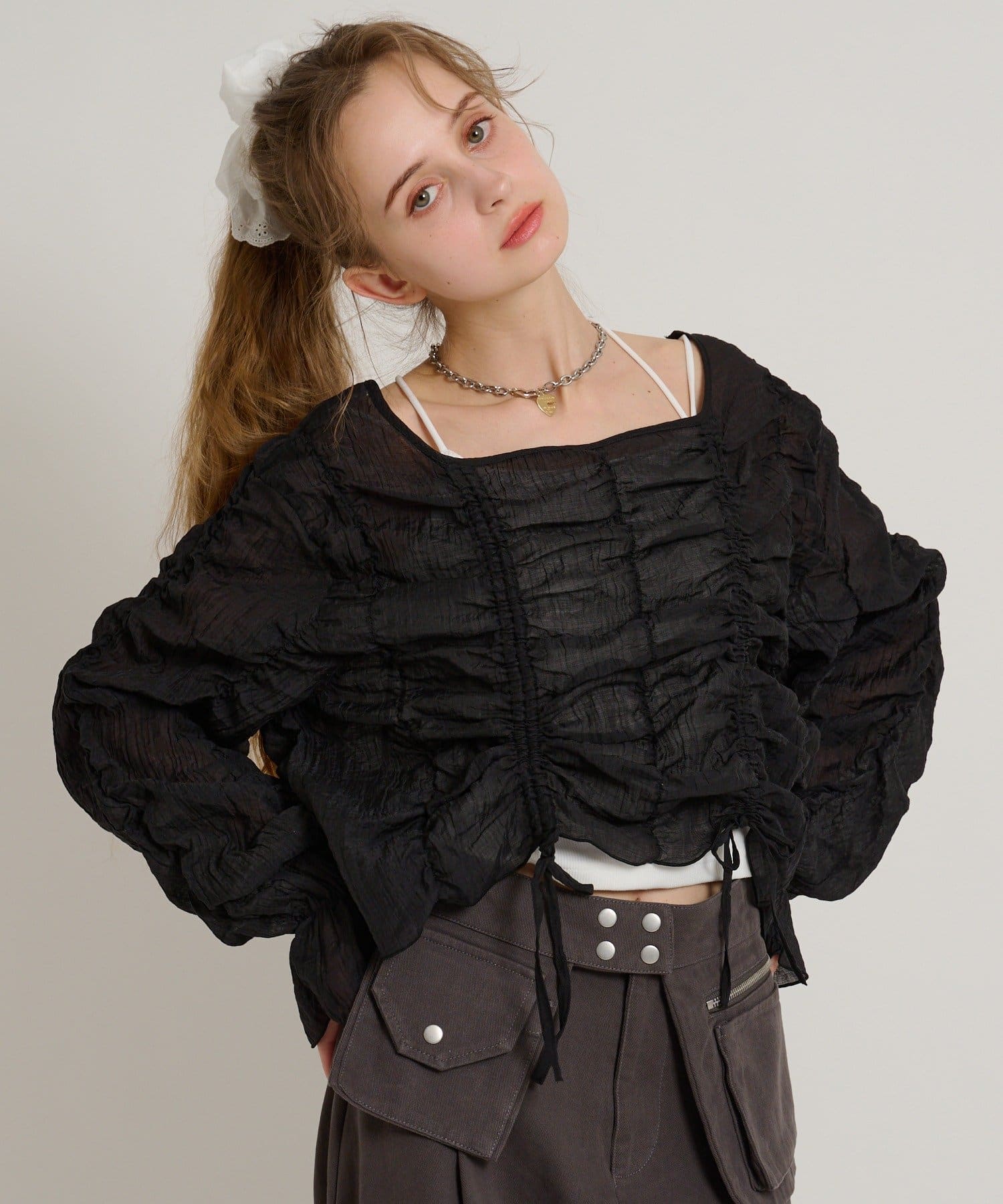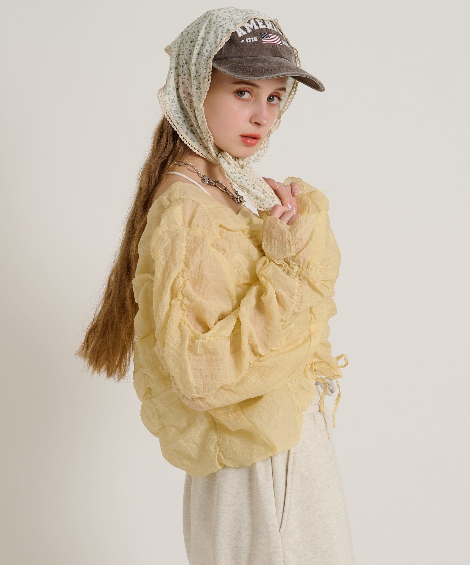 ・透け感のある生地とホイップのようにたっぷり入ったギャザーで着やせ効果も◎