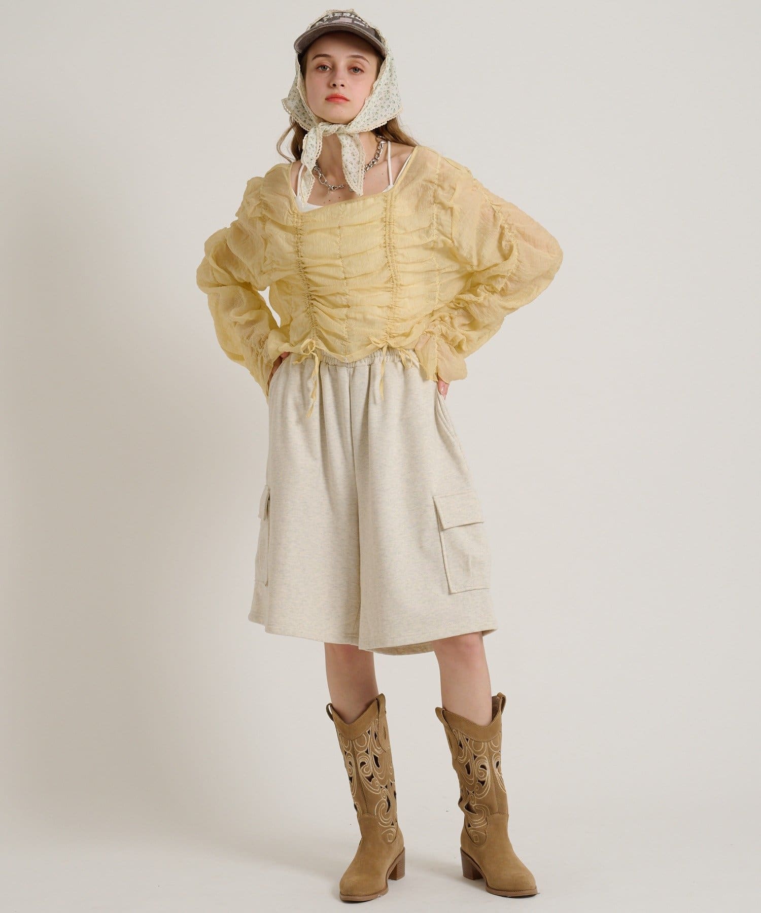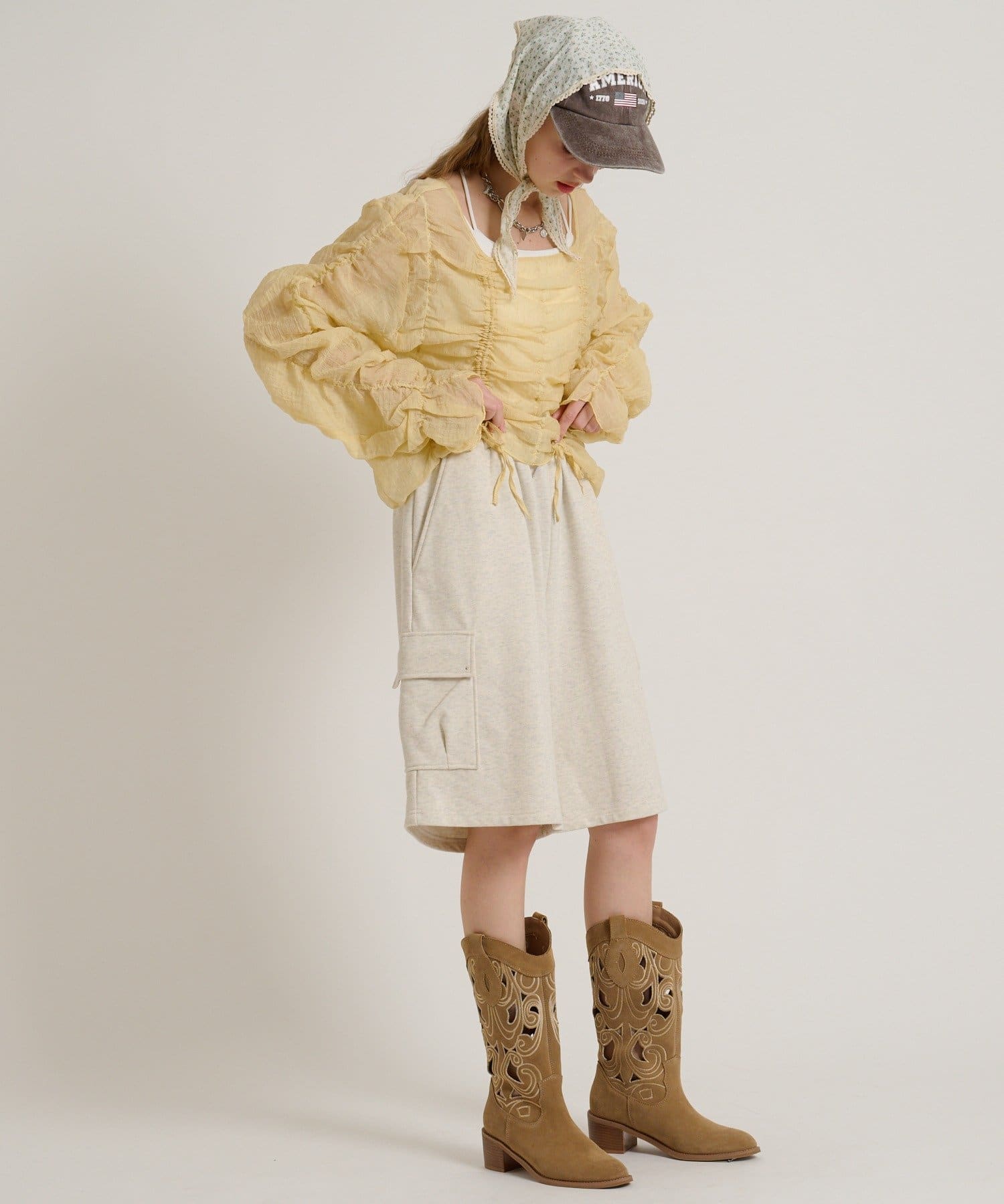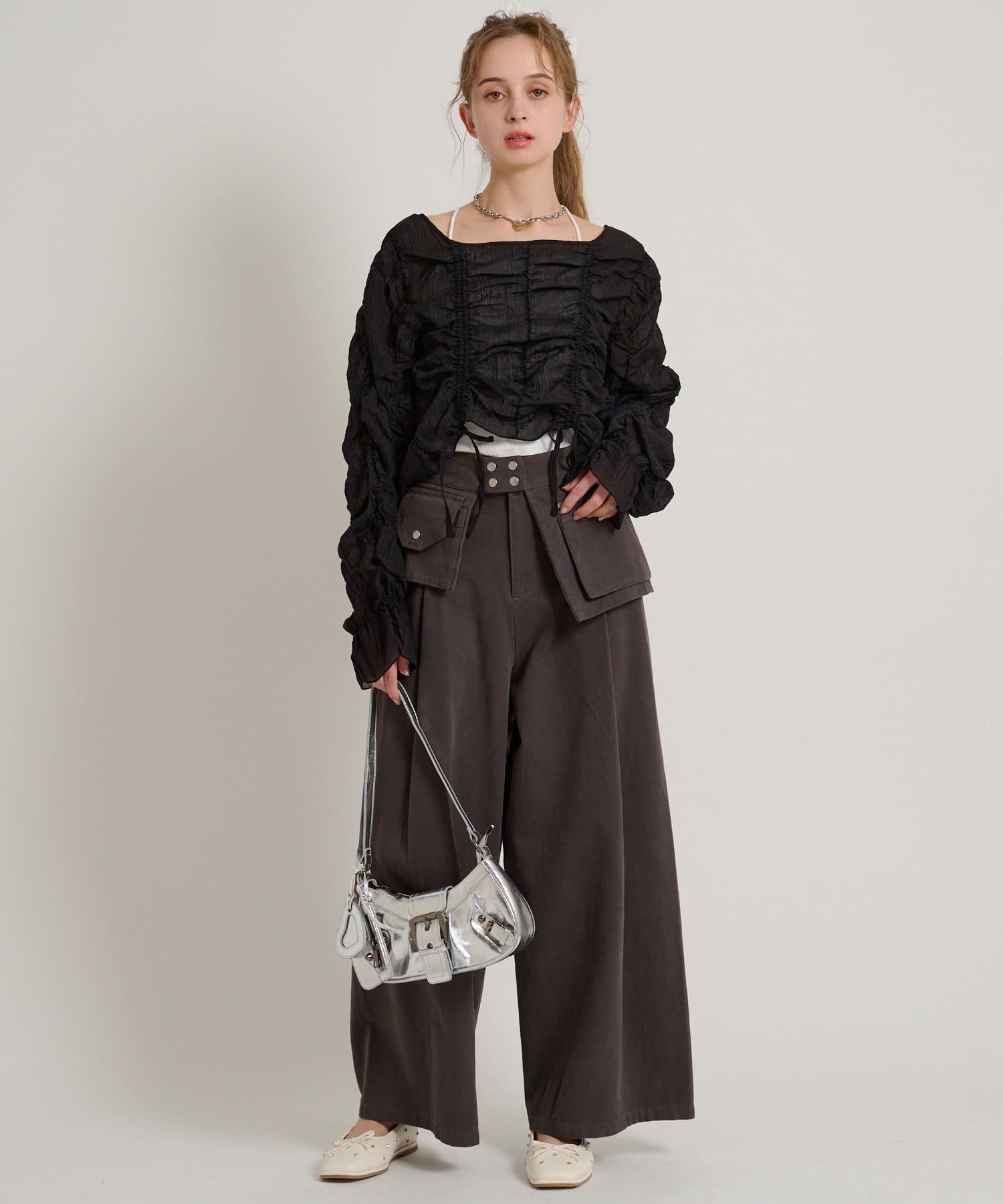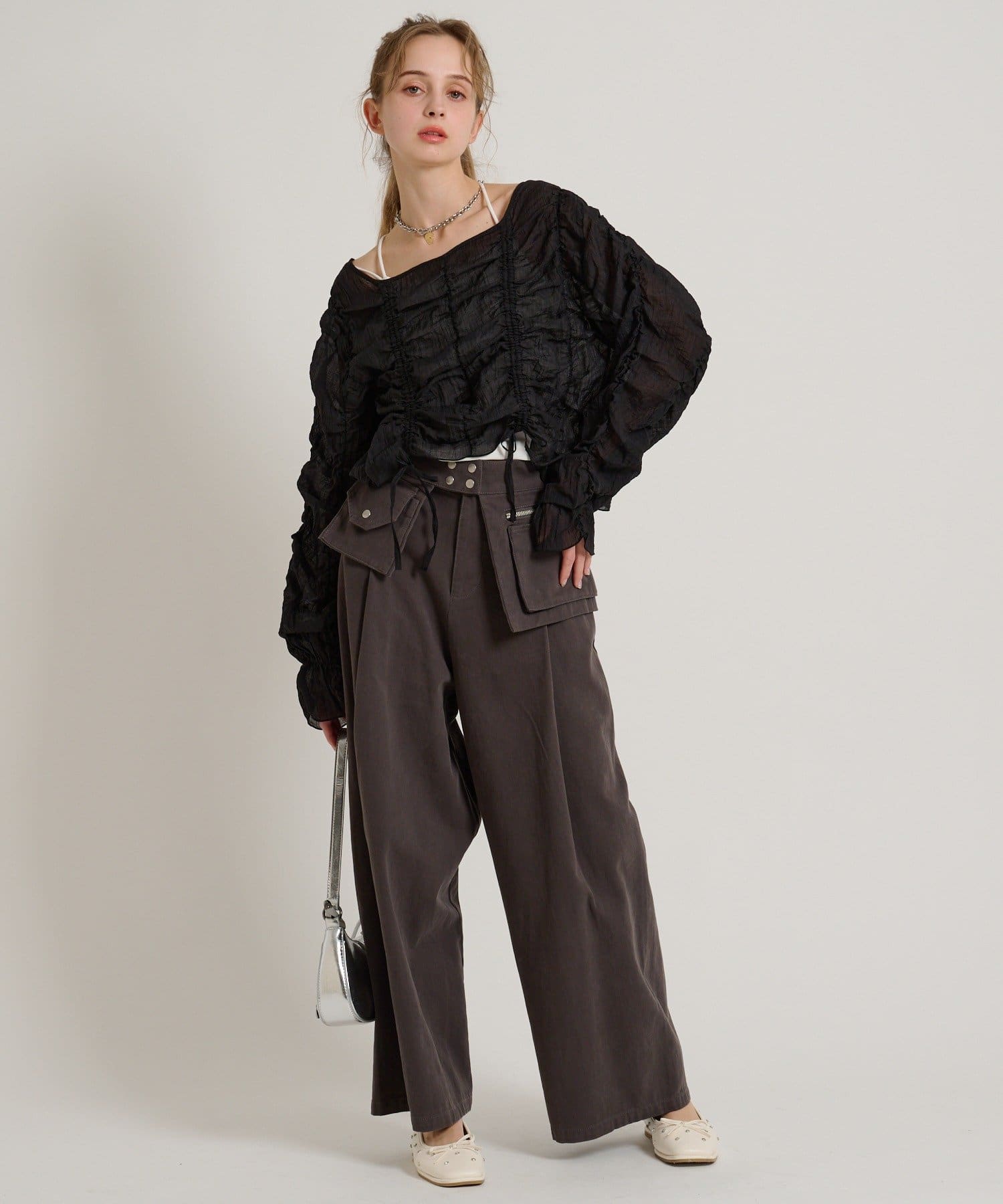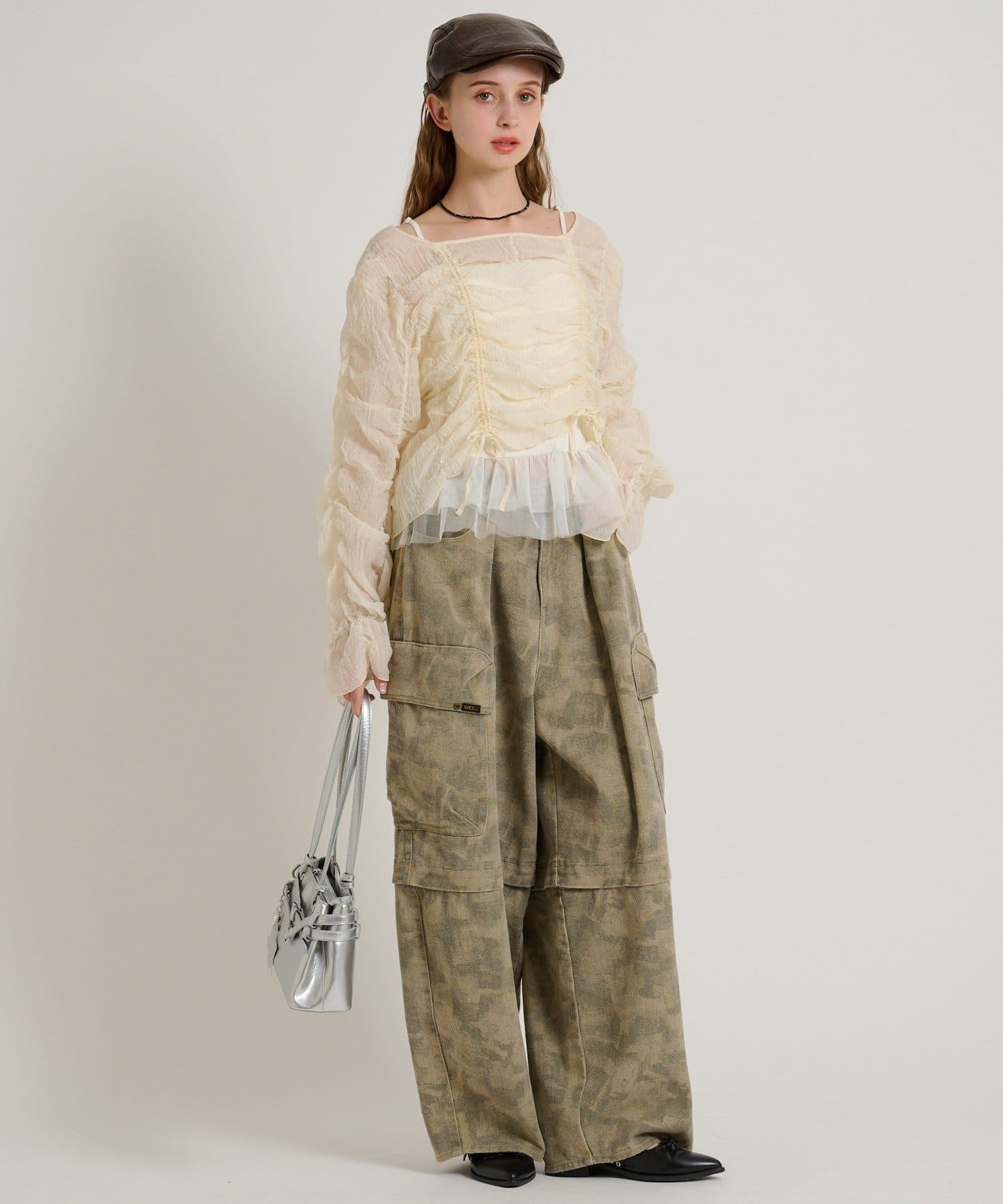 ・透け感のある生地とホイップのようにたっぷり入ったギャザーで着やせ効果も◎