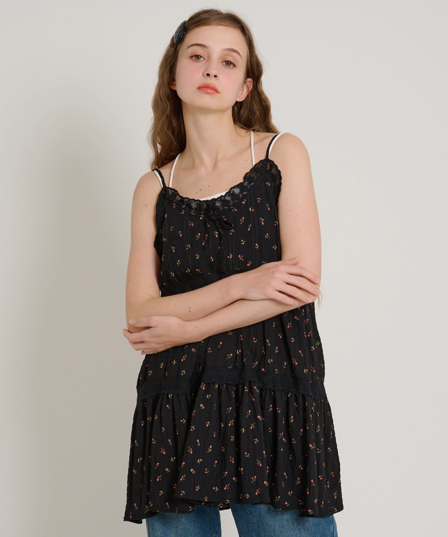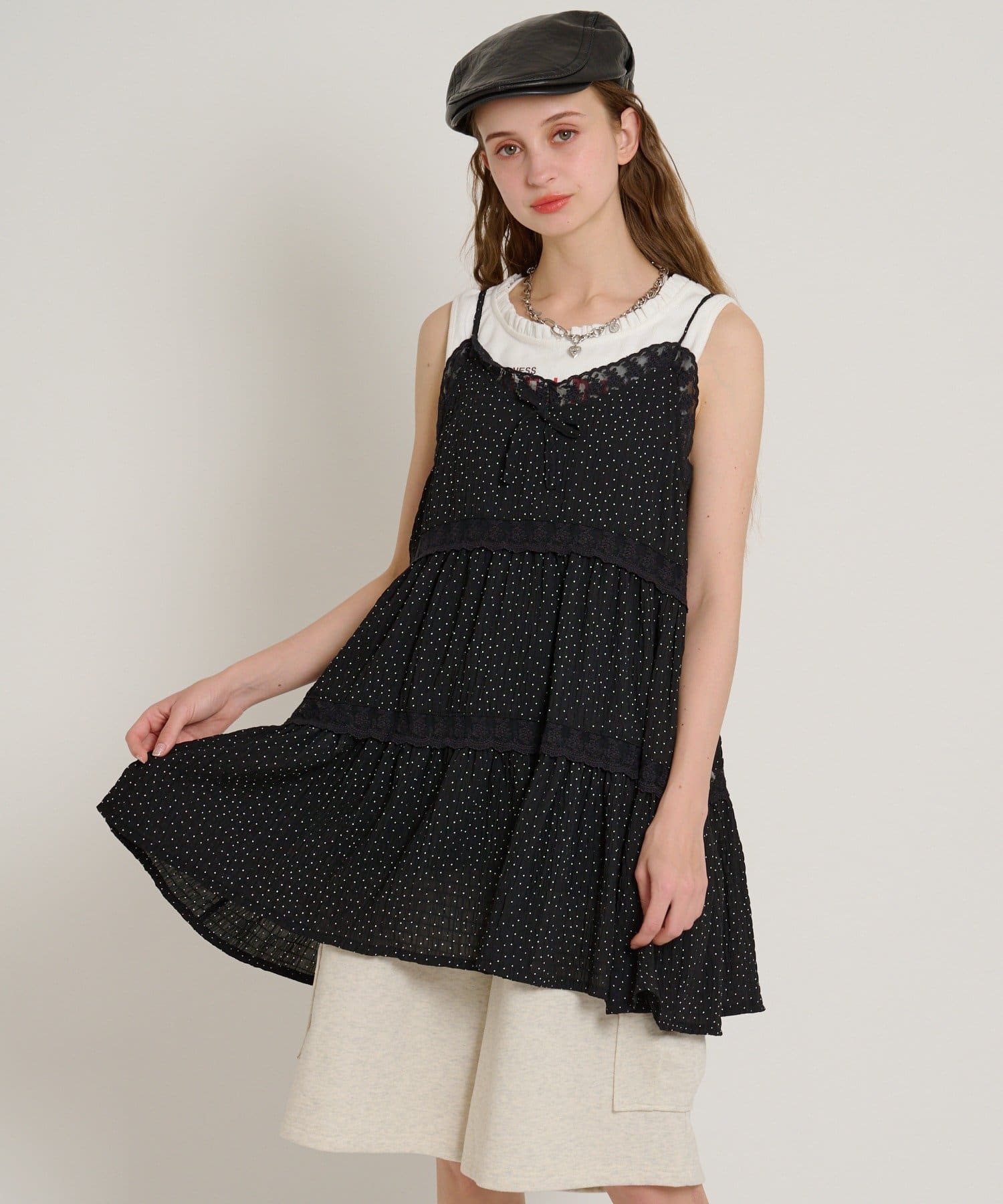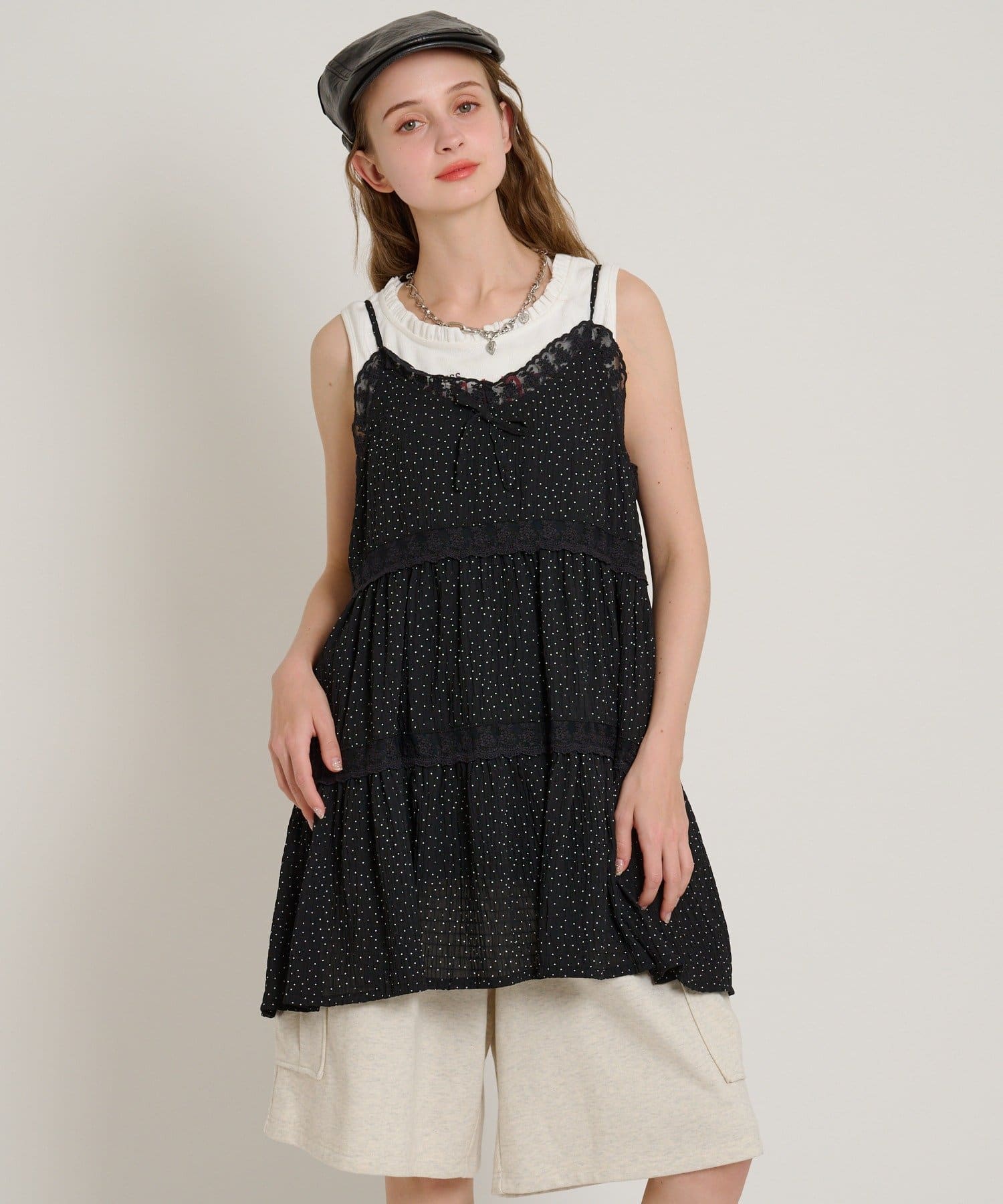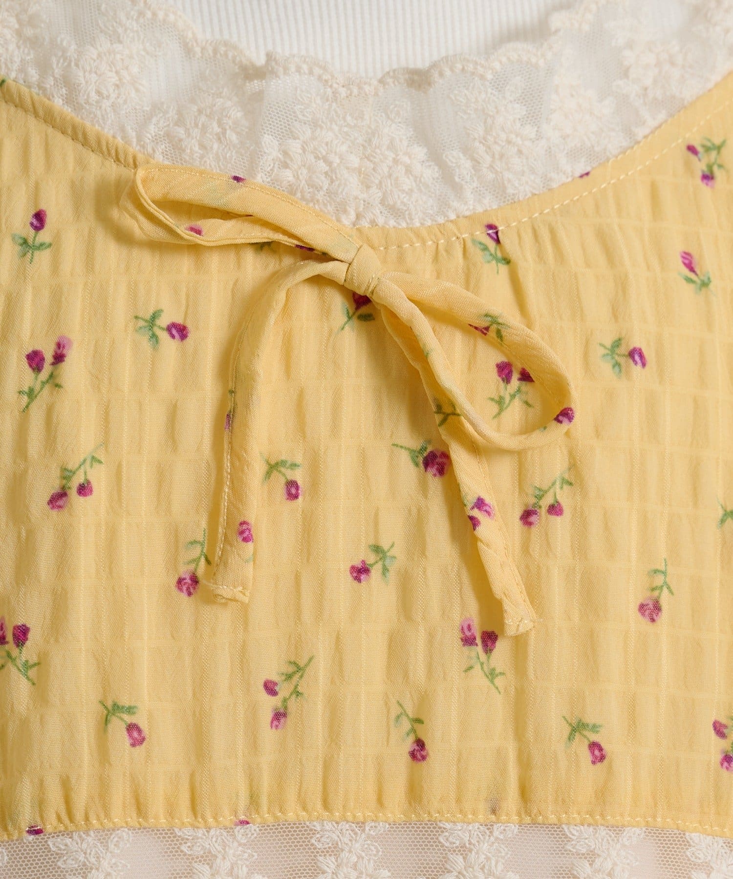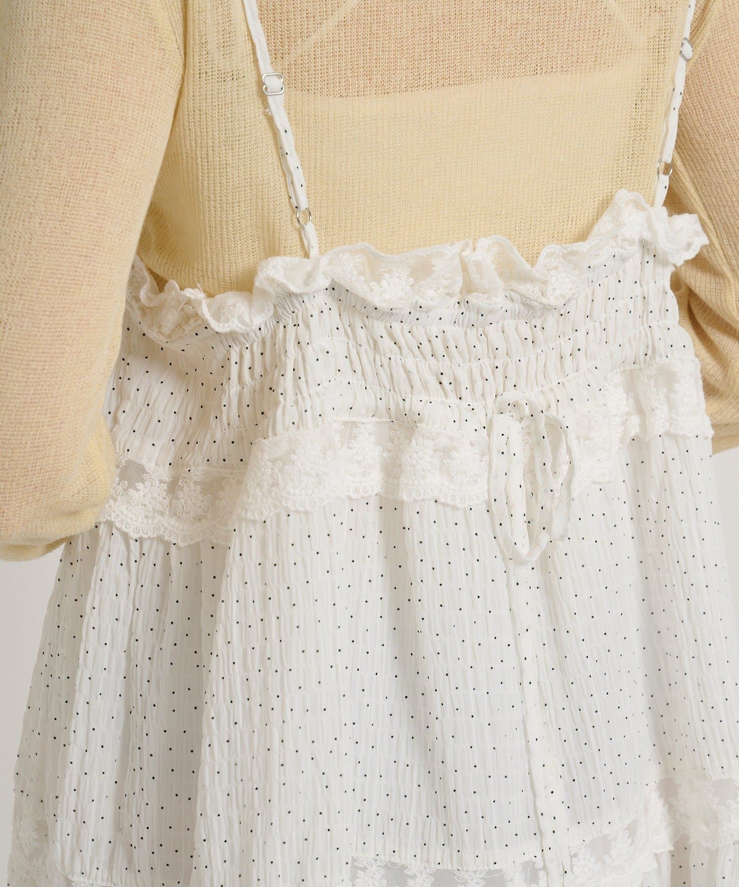 【5色展開/花柄・ドット】レース使いミニキャミワンピース