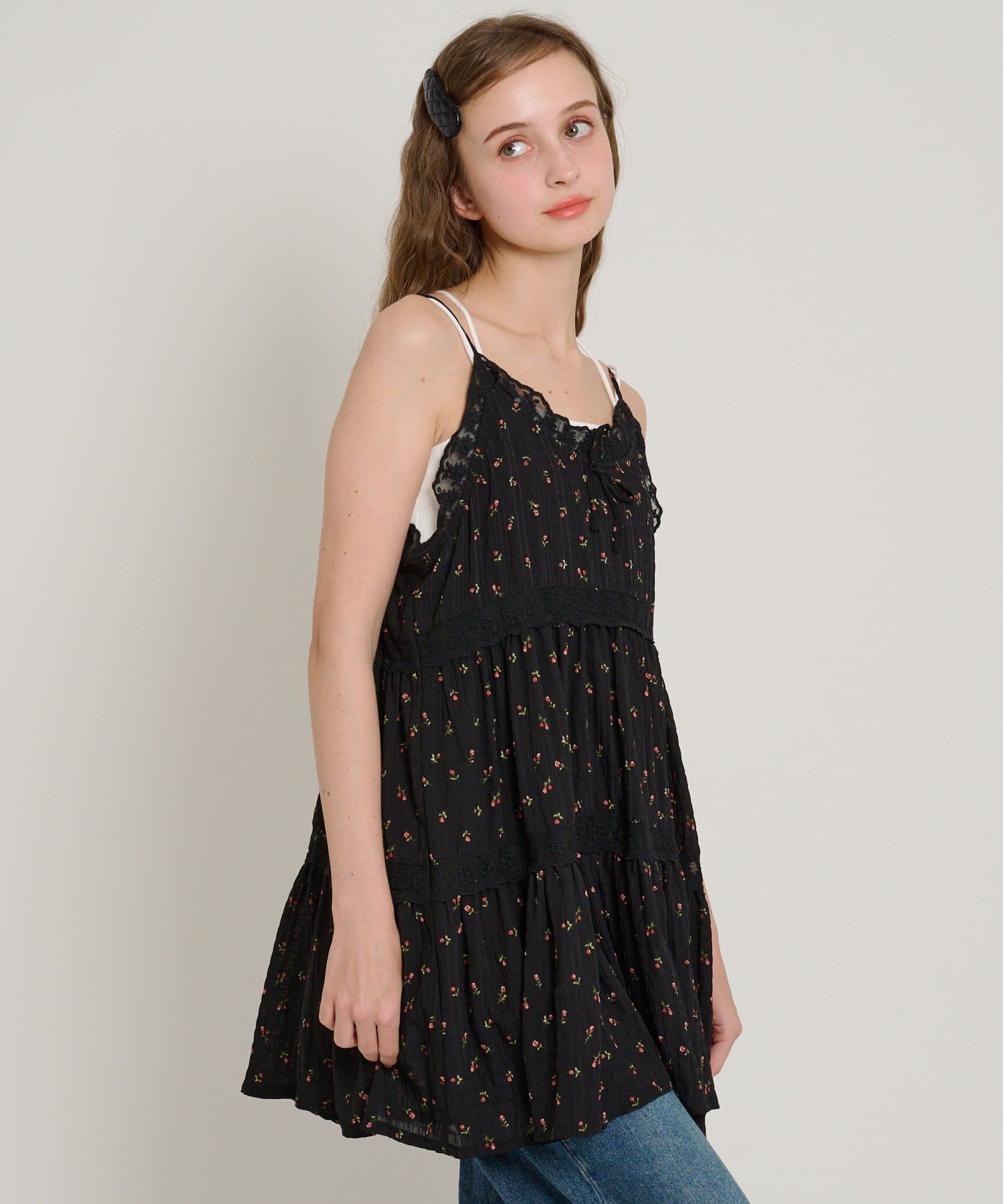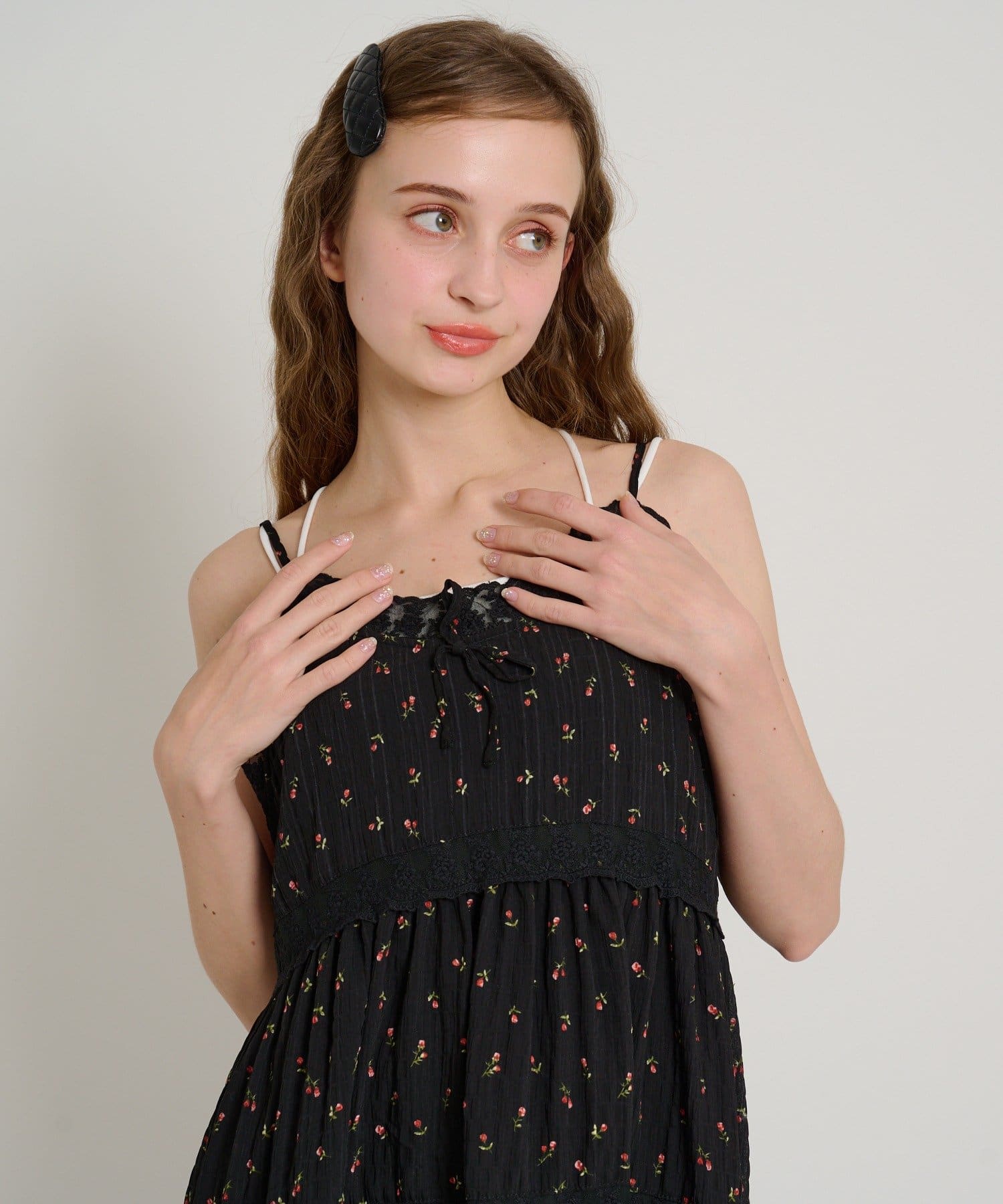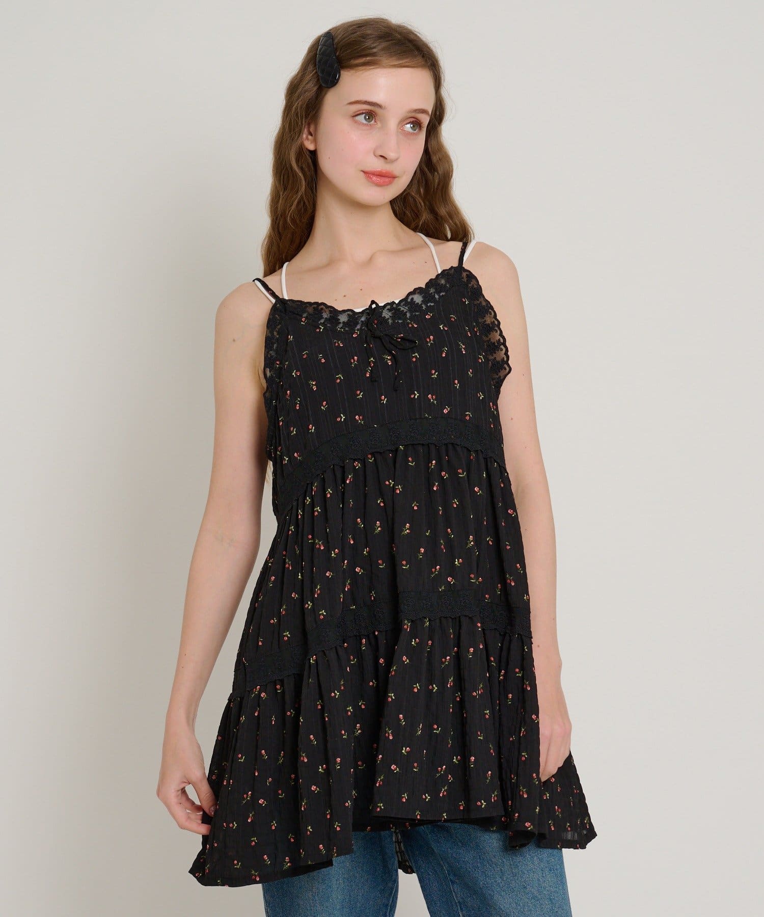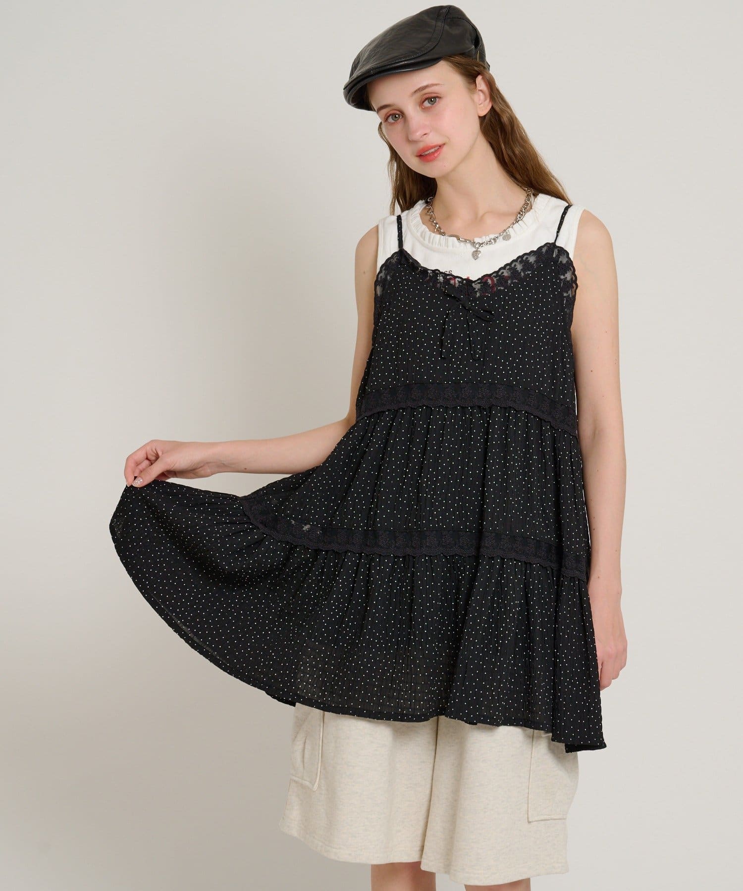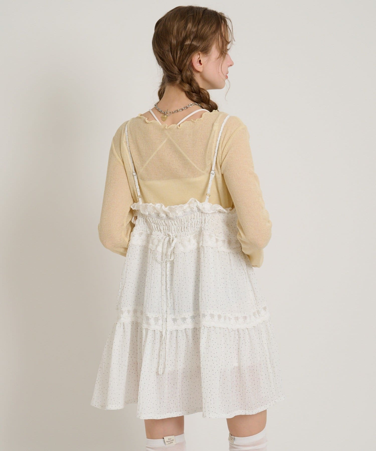 【5色展開/花柄・ドット】レース使いミニキャミワンピース