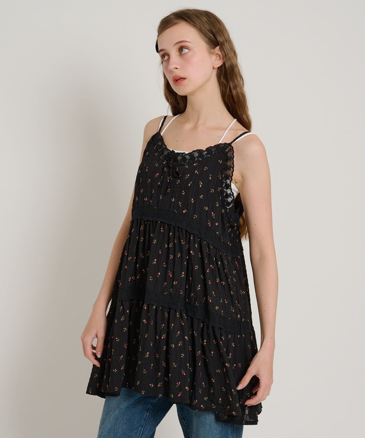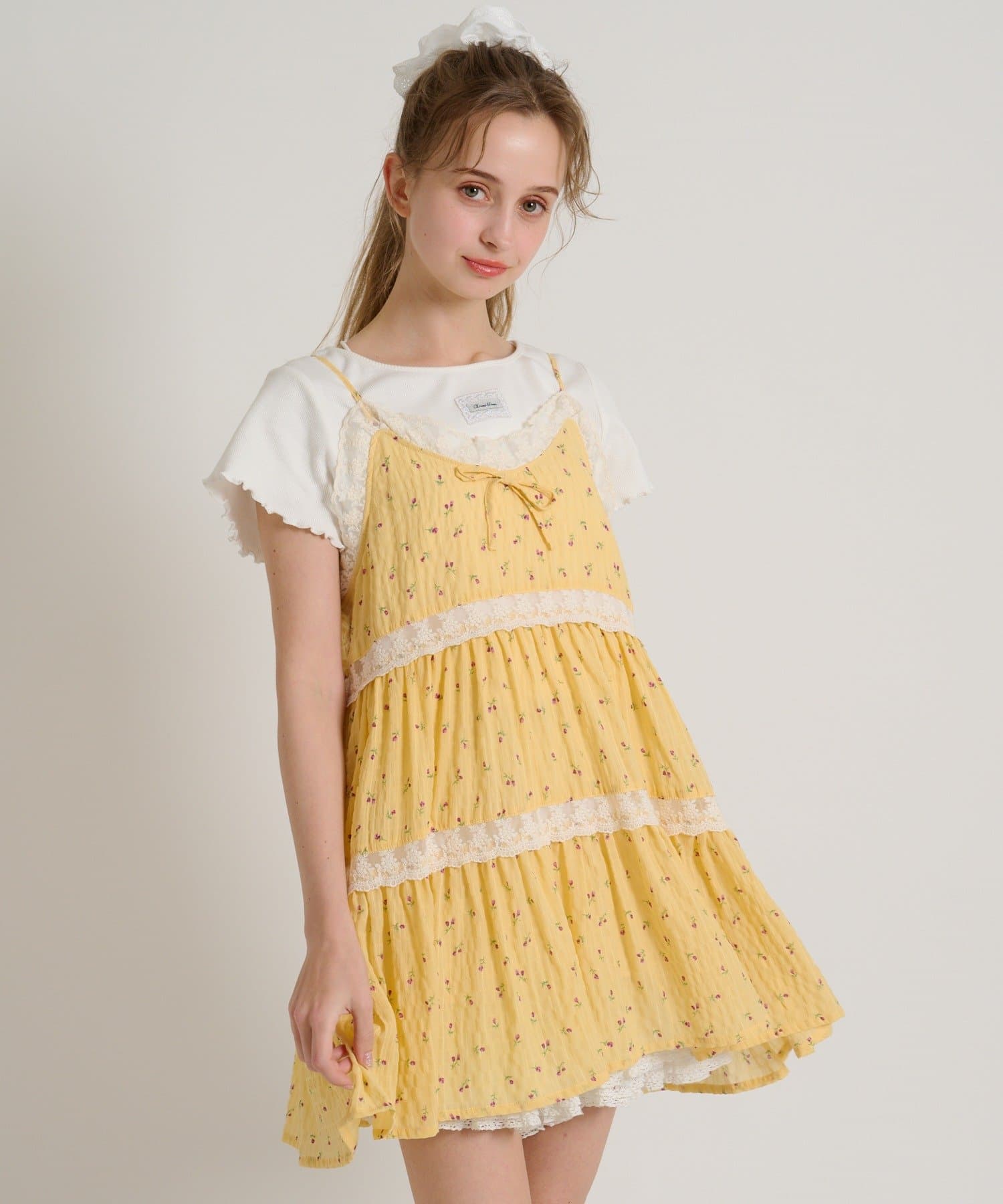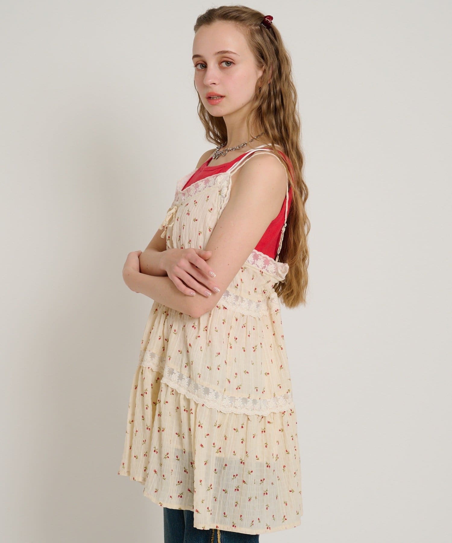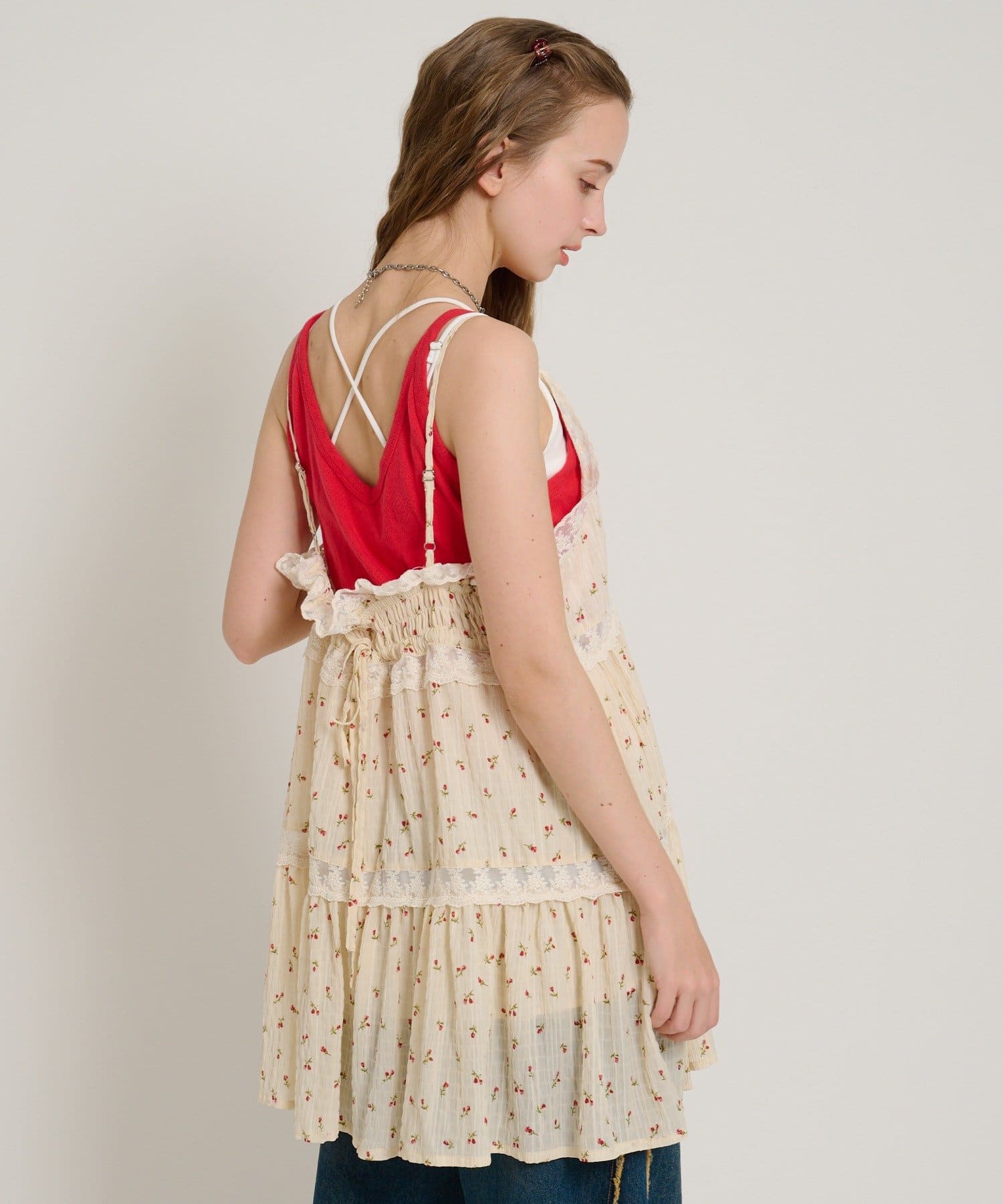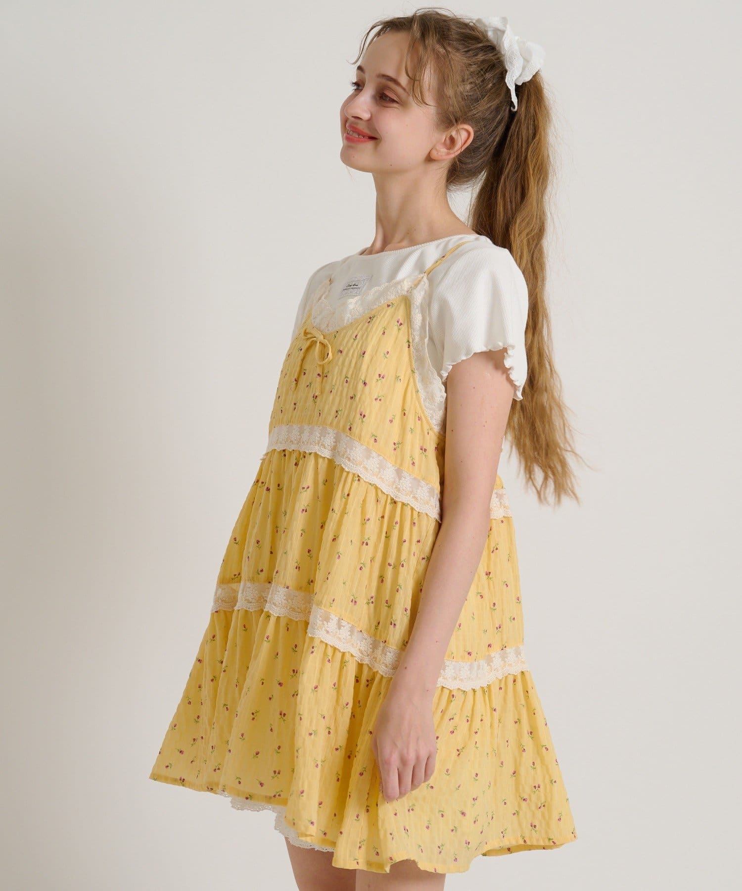 【5色展開/花柄・ドット】レース使いミニキャミワンピース