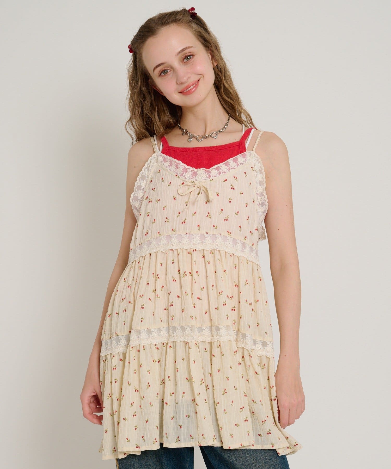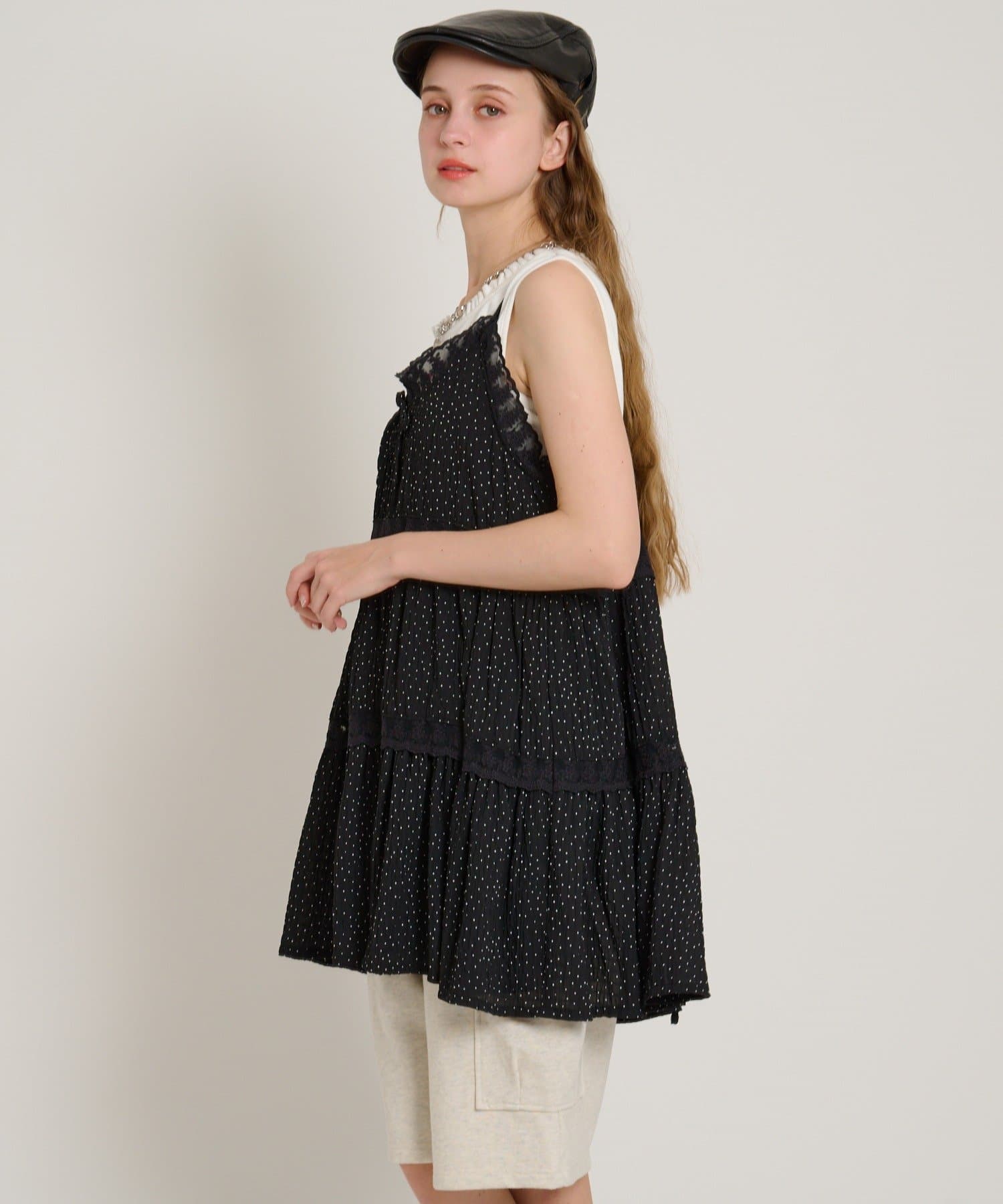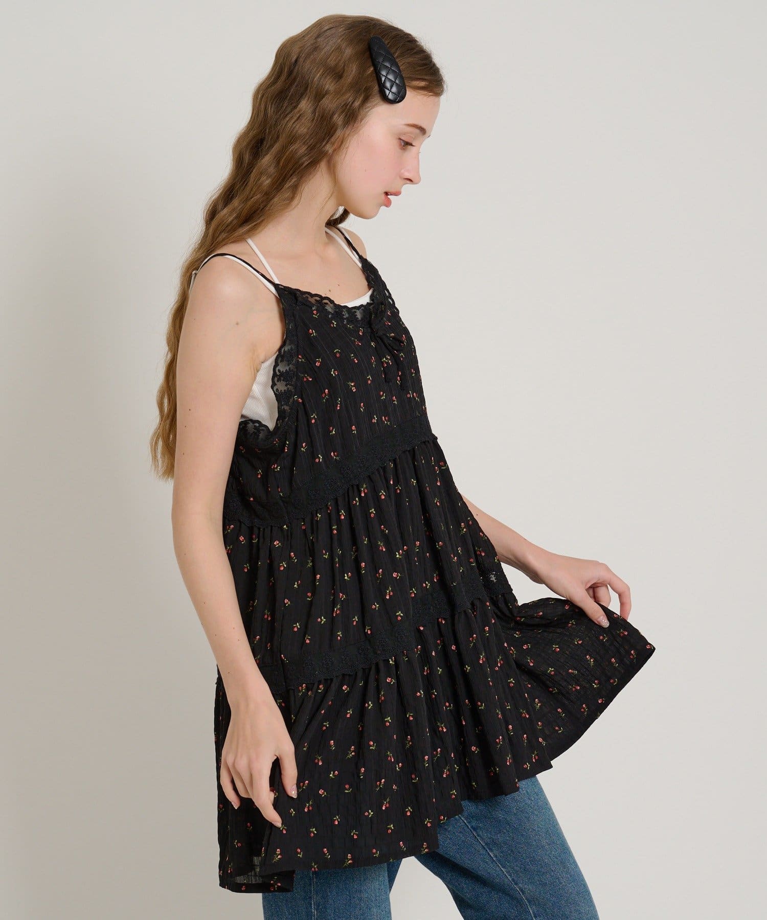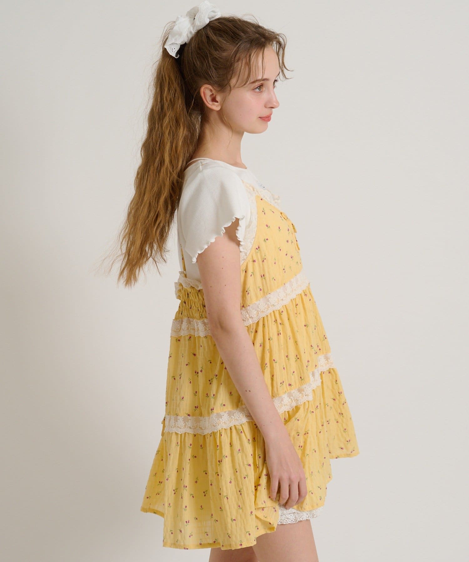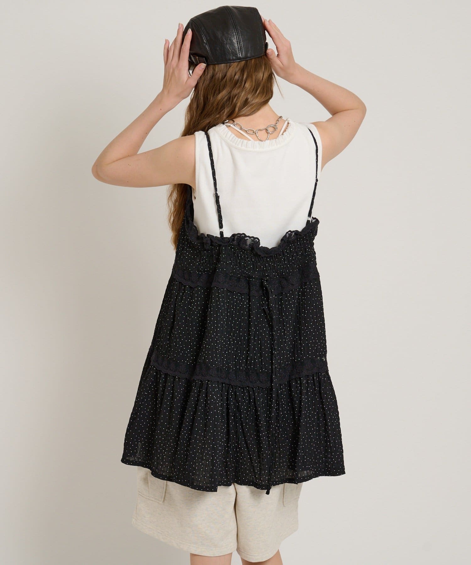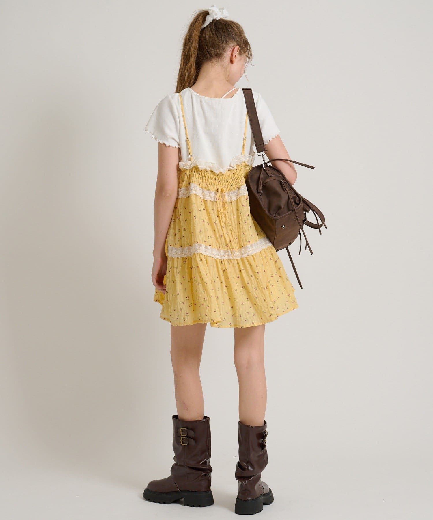 【5色展開/花柄・ドット】レース使いミニキャミワンピース