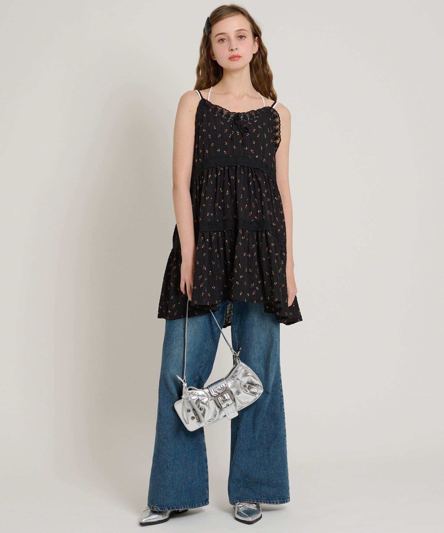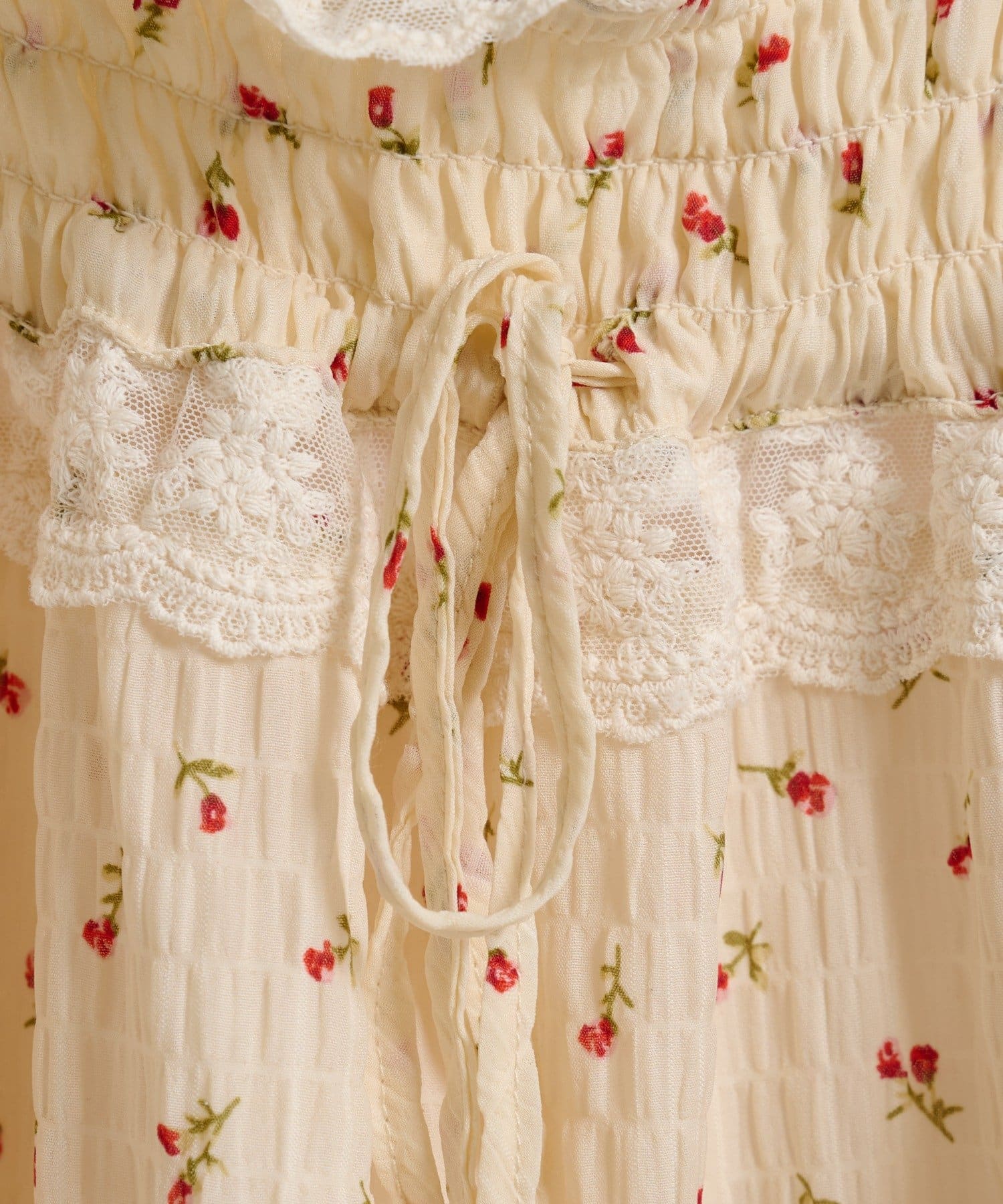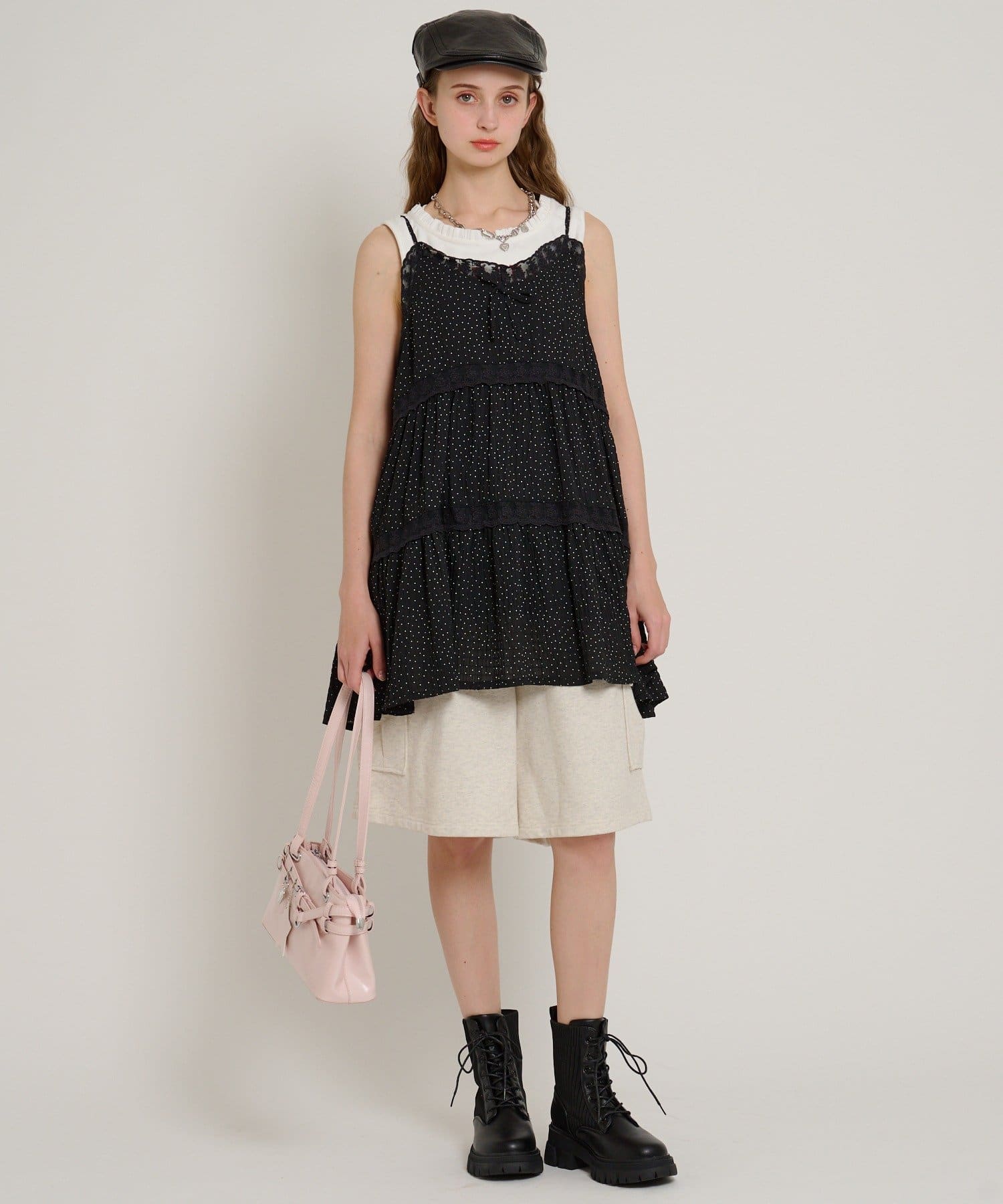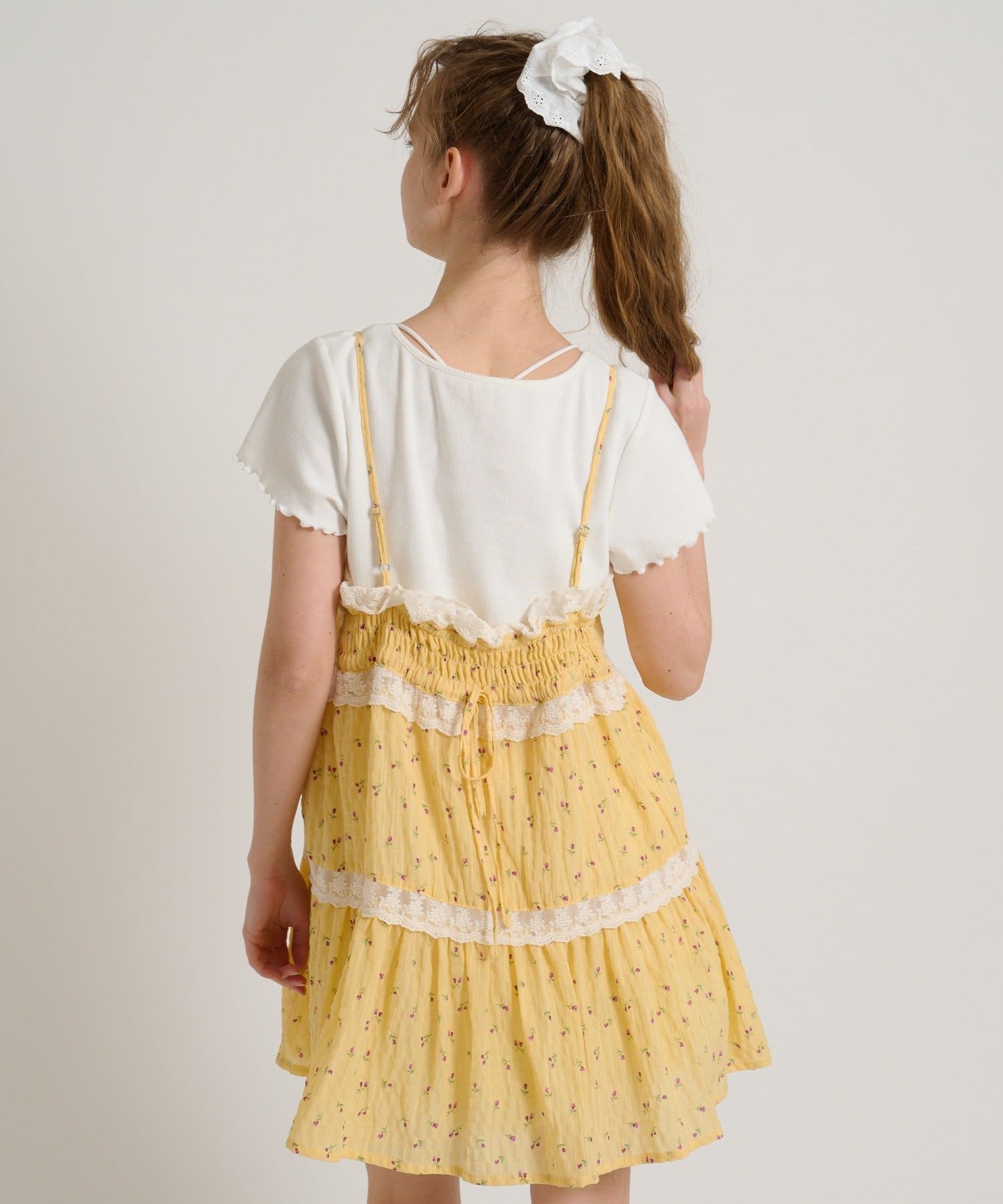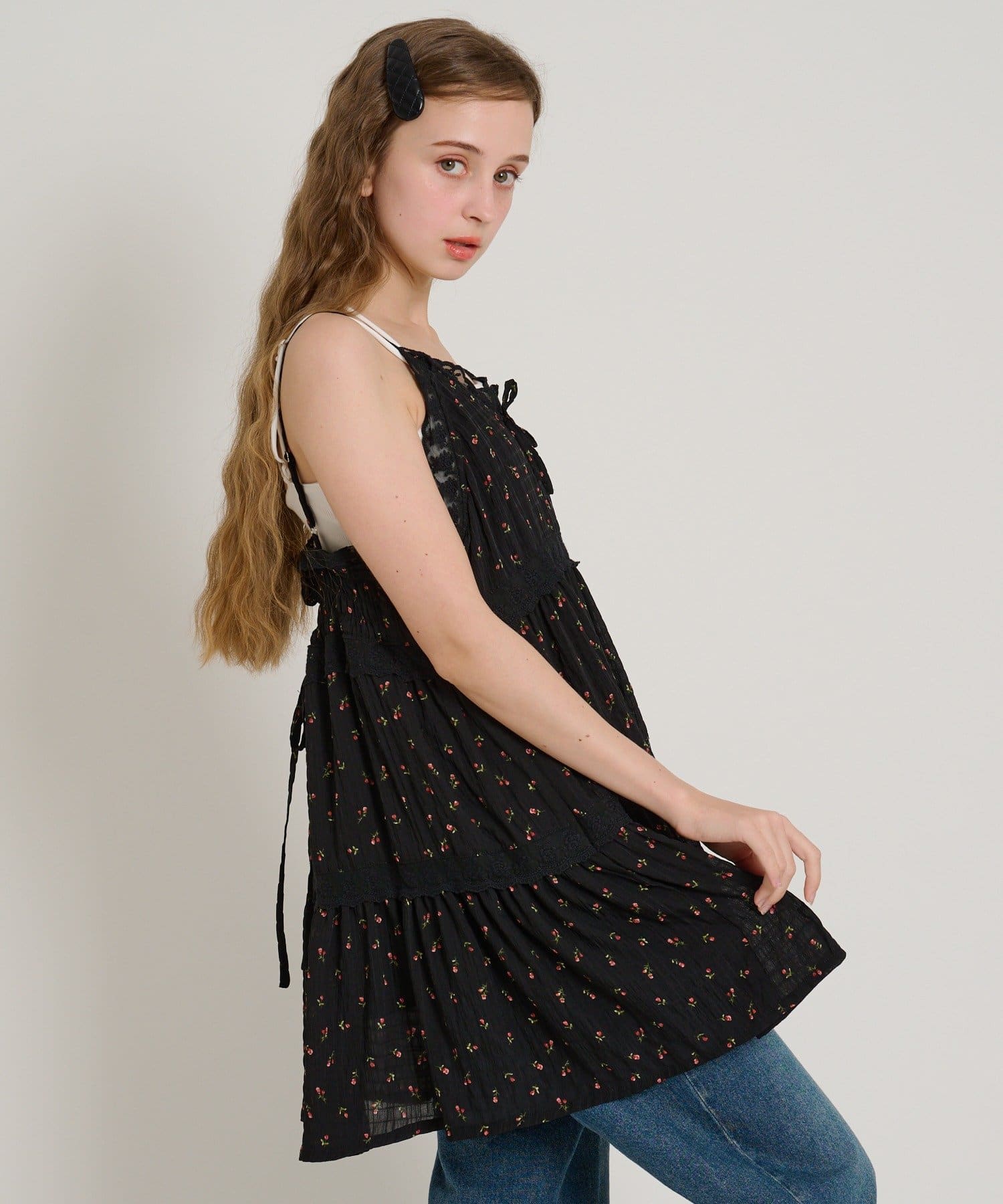 【5色展開/花柄・ドット】レース使いミニキャミワンピース