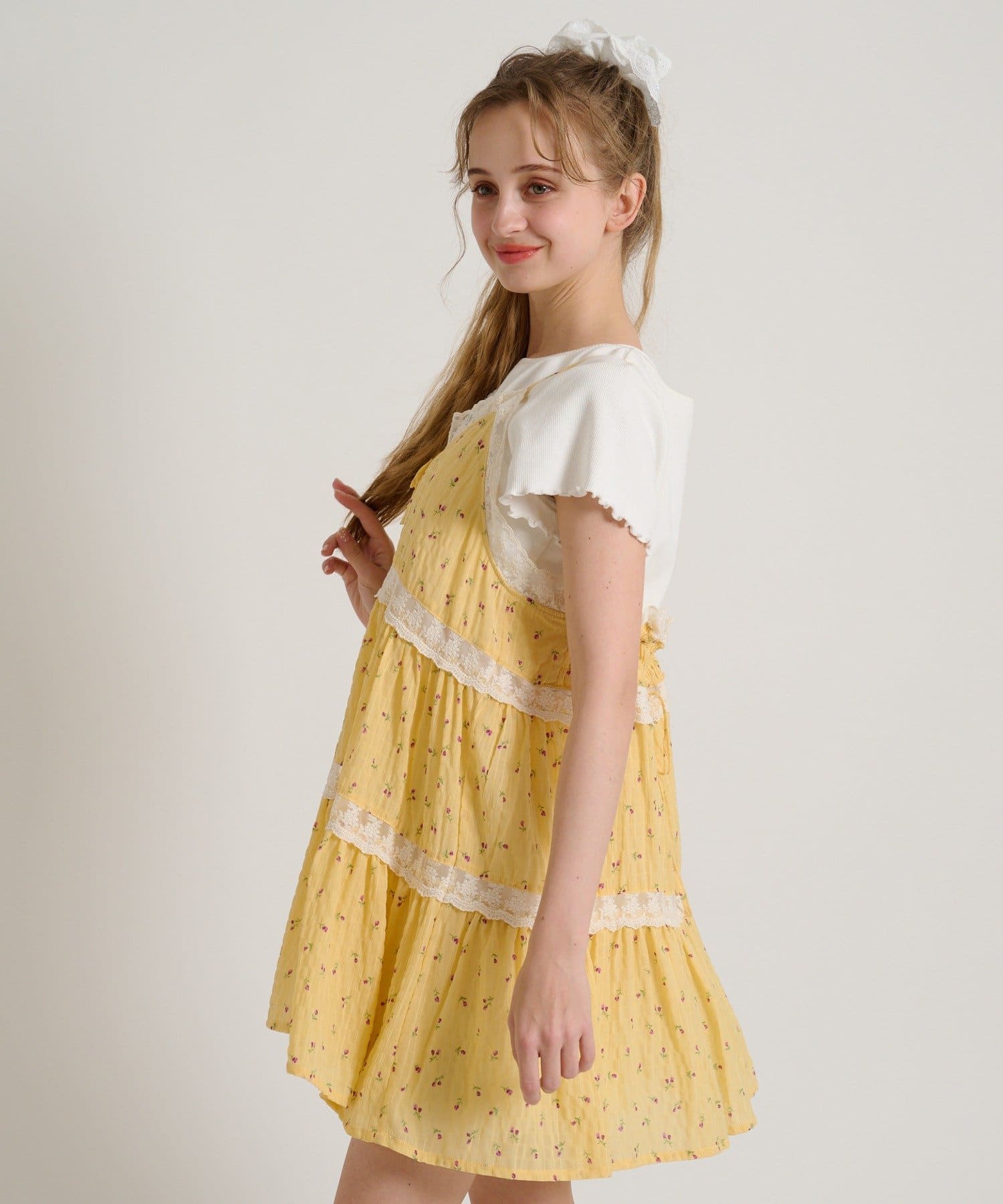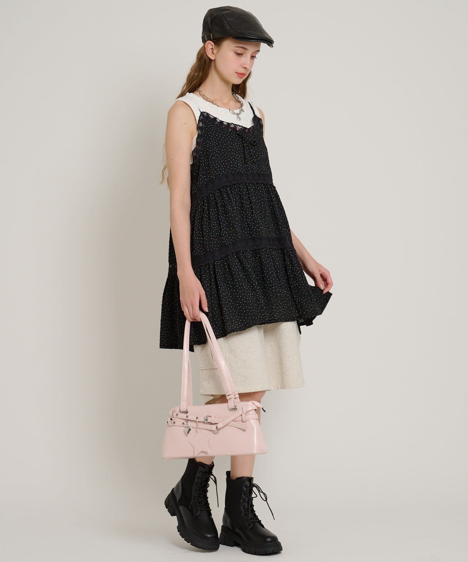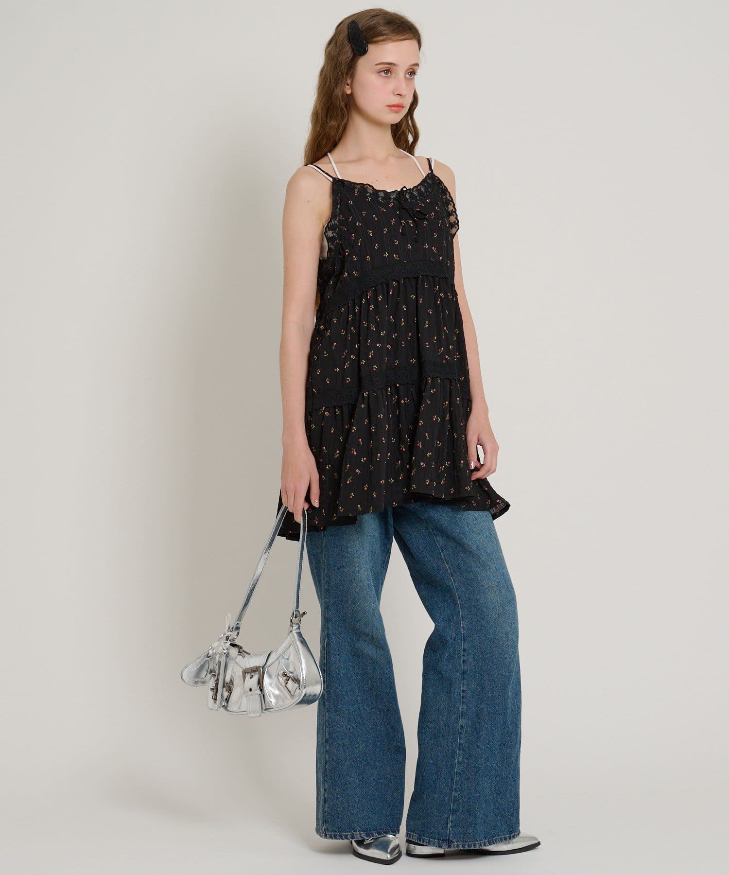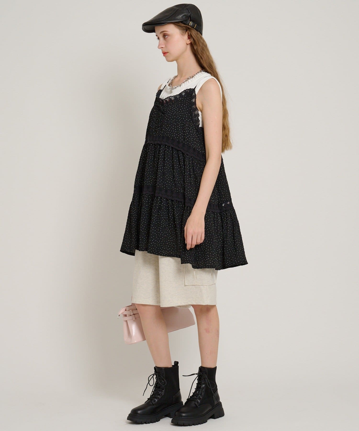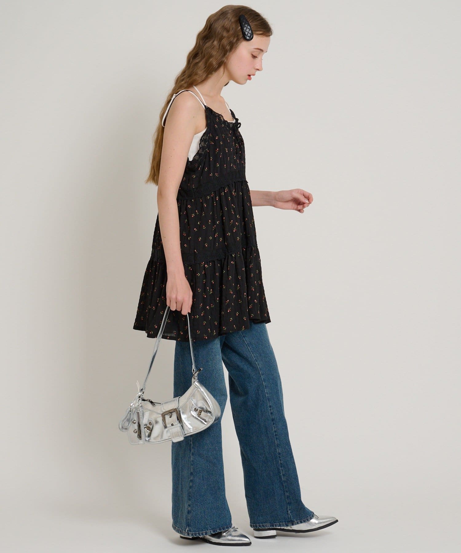 【5色展開/花柄・ドット】レース使いミニキャミワンピース