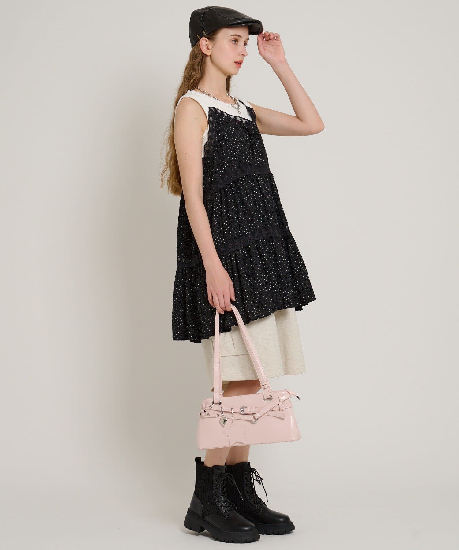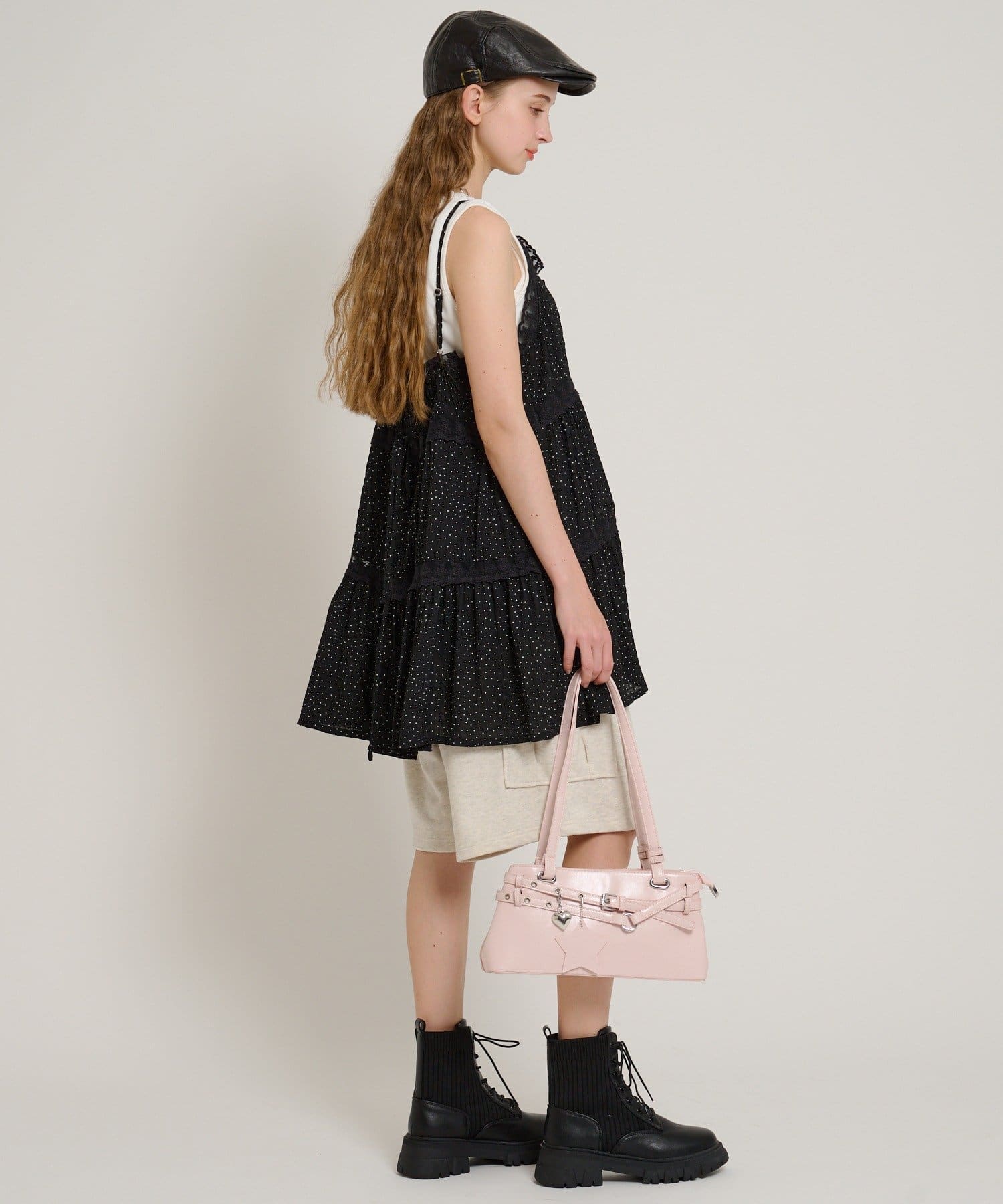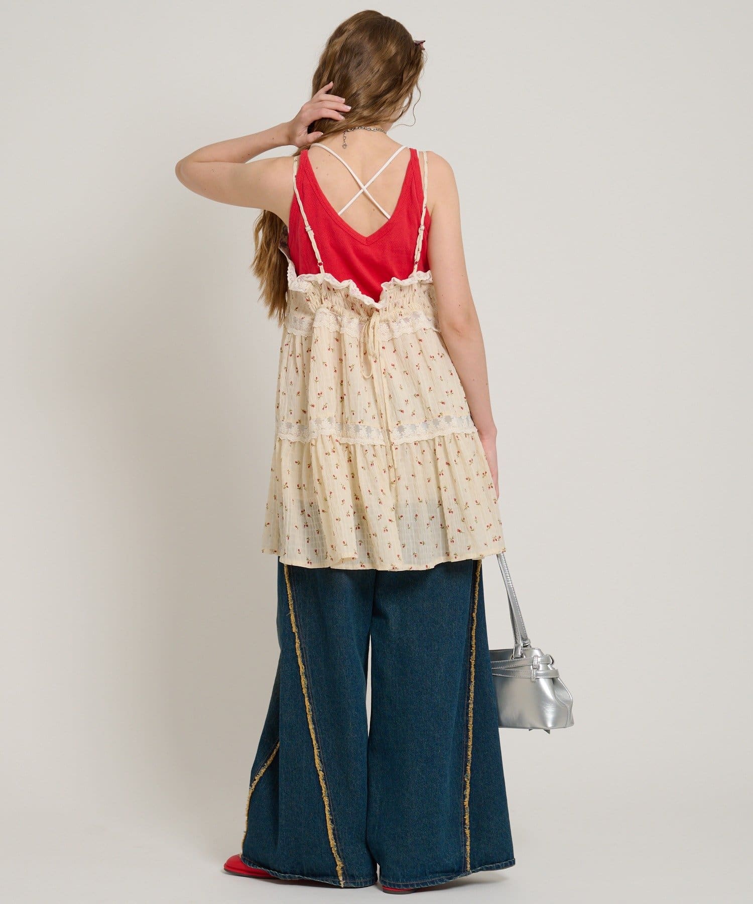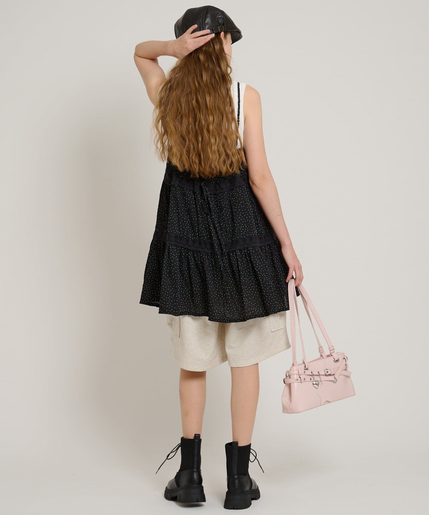 ・コンパクトなTシャツやタンクトップを合わせるとすっきり見えします