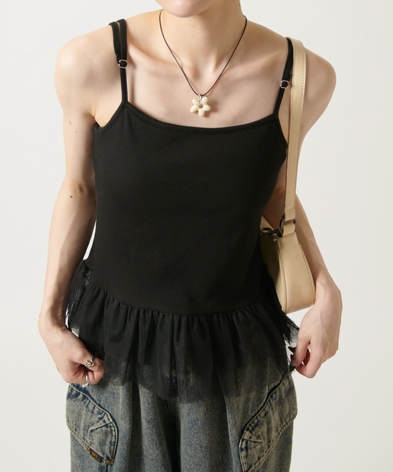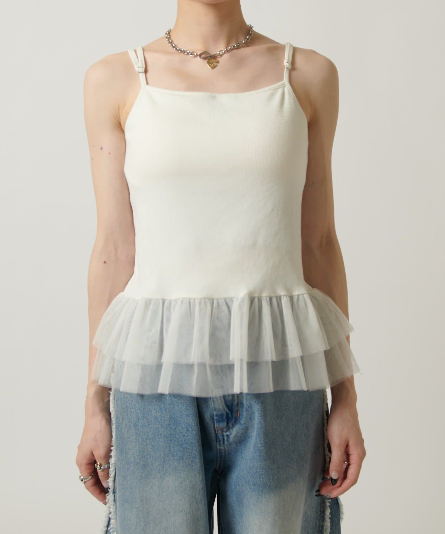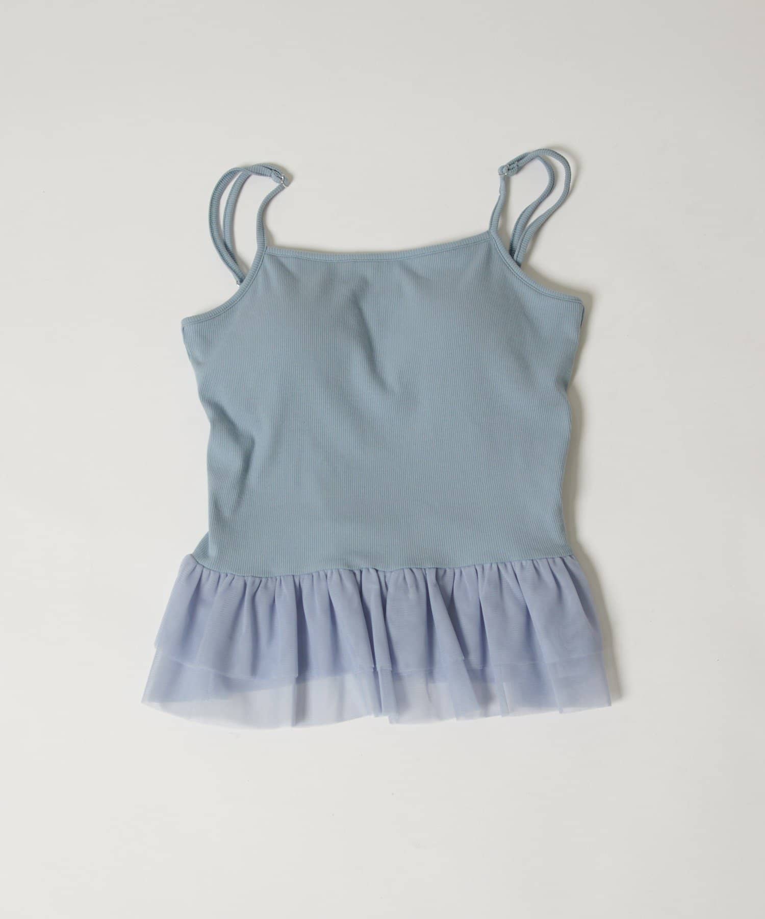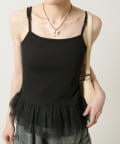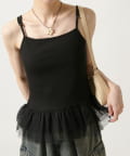 裾のチュールフリルがポイントのカップ付きキャミソール