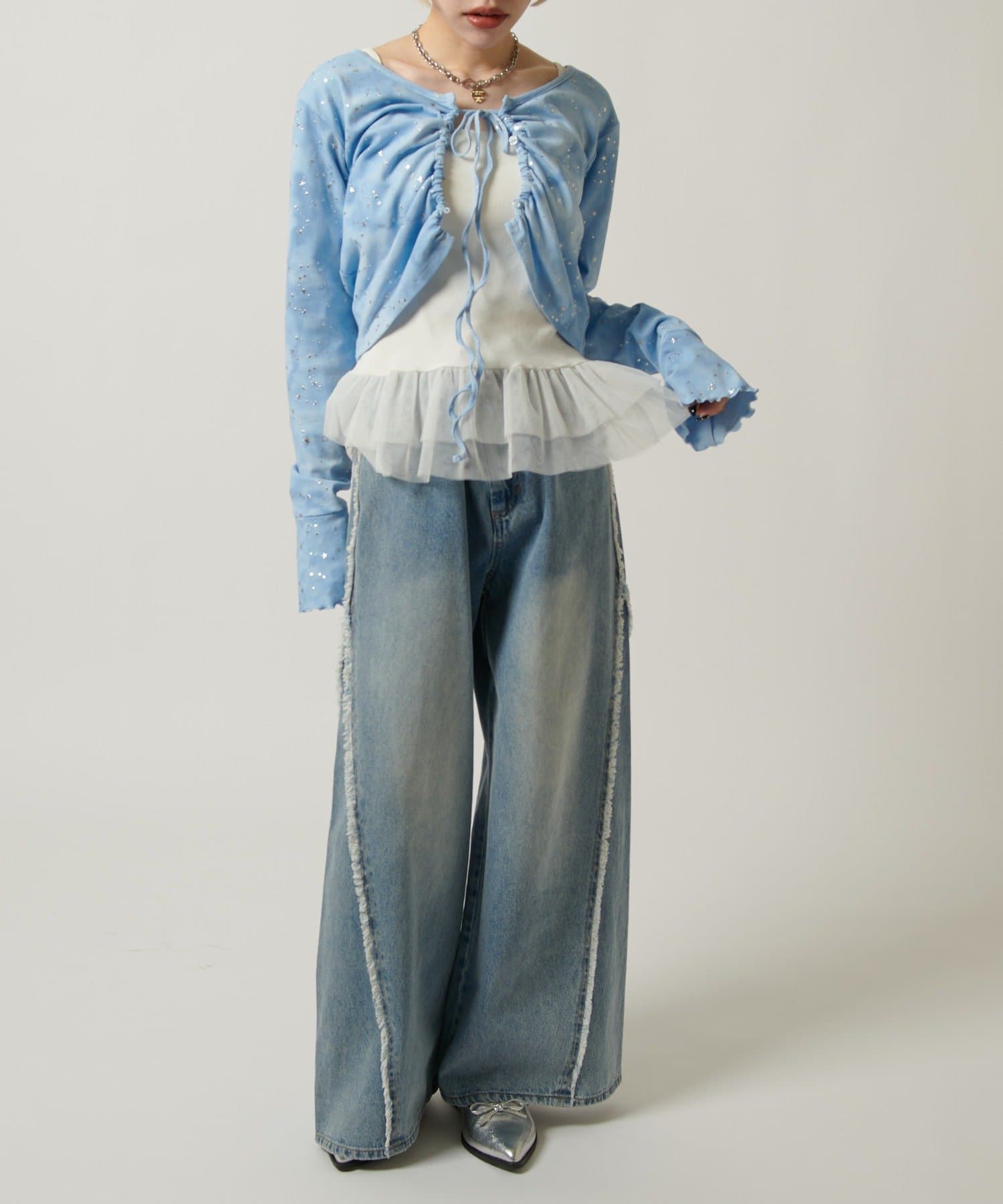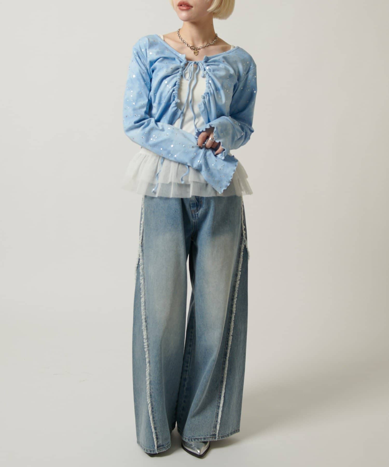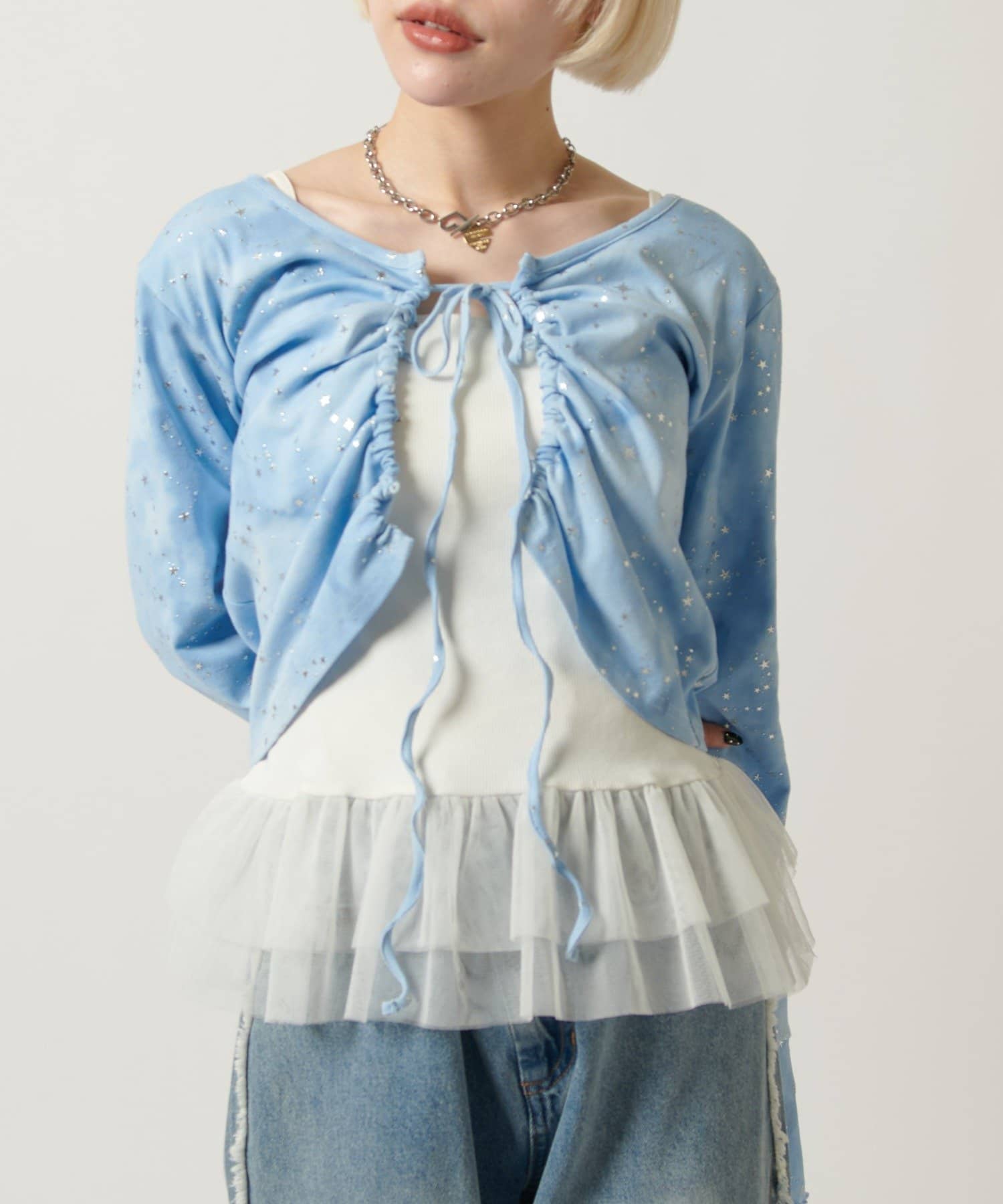 ・カットソーの上にレイヤードして裾のチュールを見せると一気に今っぽく♡