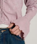 ・体のラインを拾わない伸縮性のある生地とフレア袖ですっきり見え