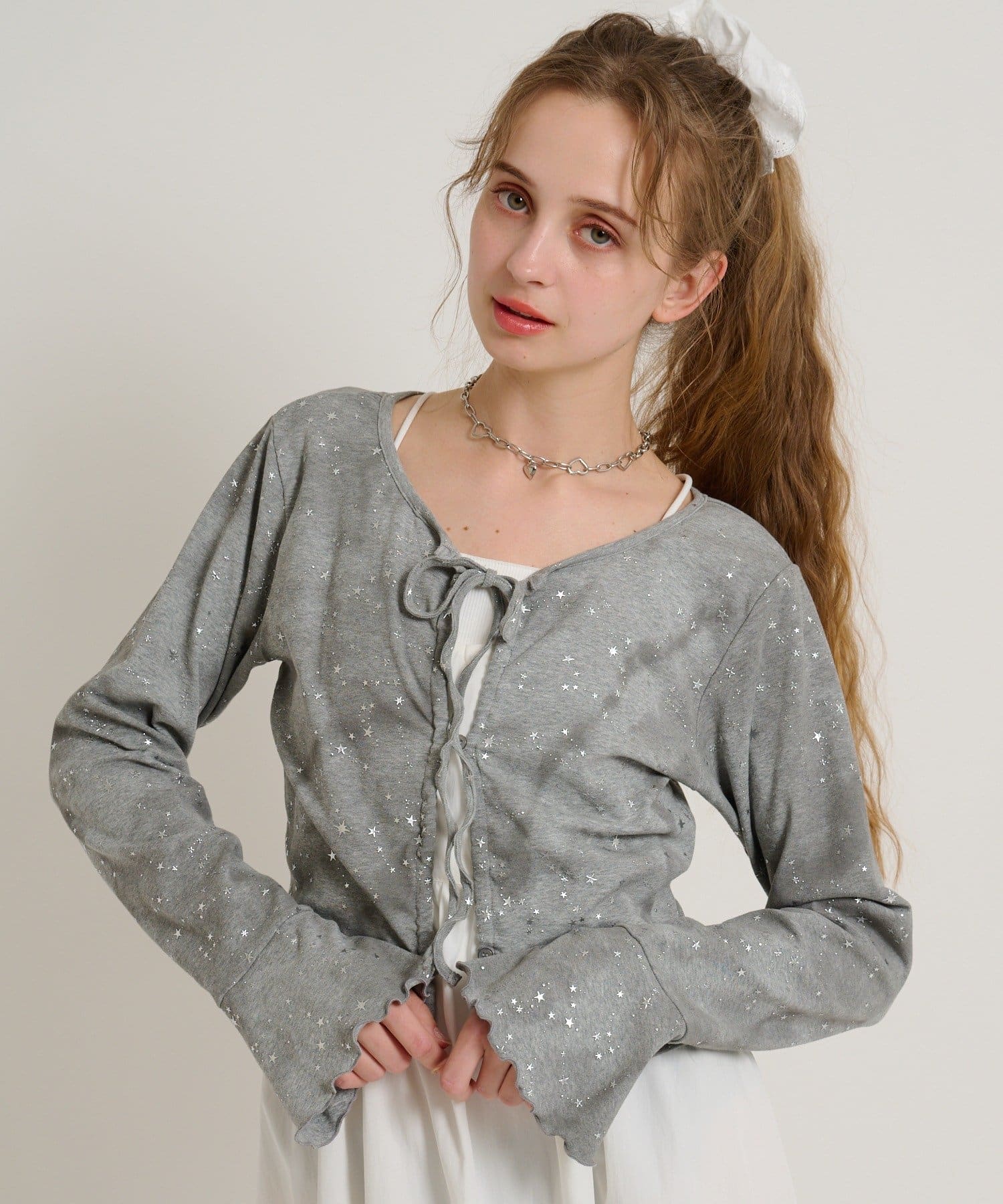 【5色展開/前リボン】星リボンカーデ