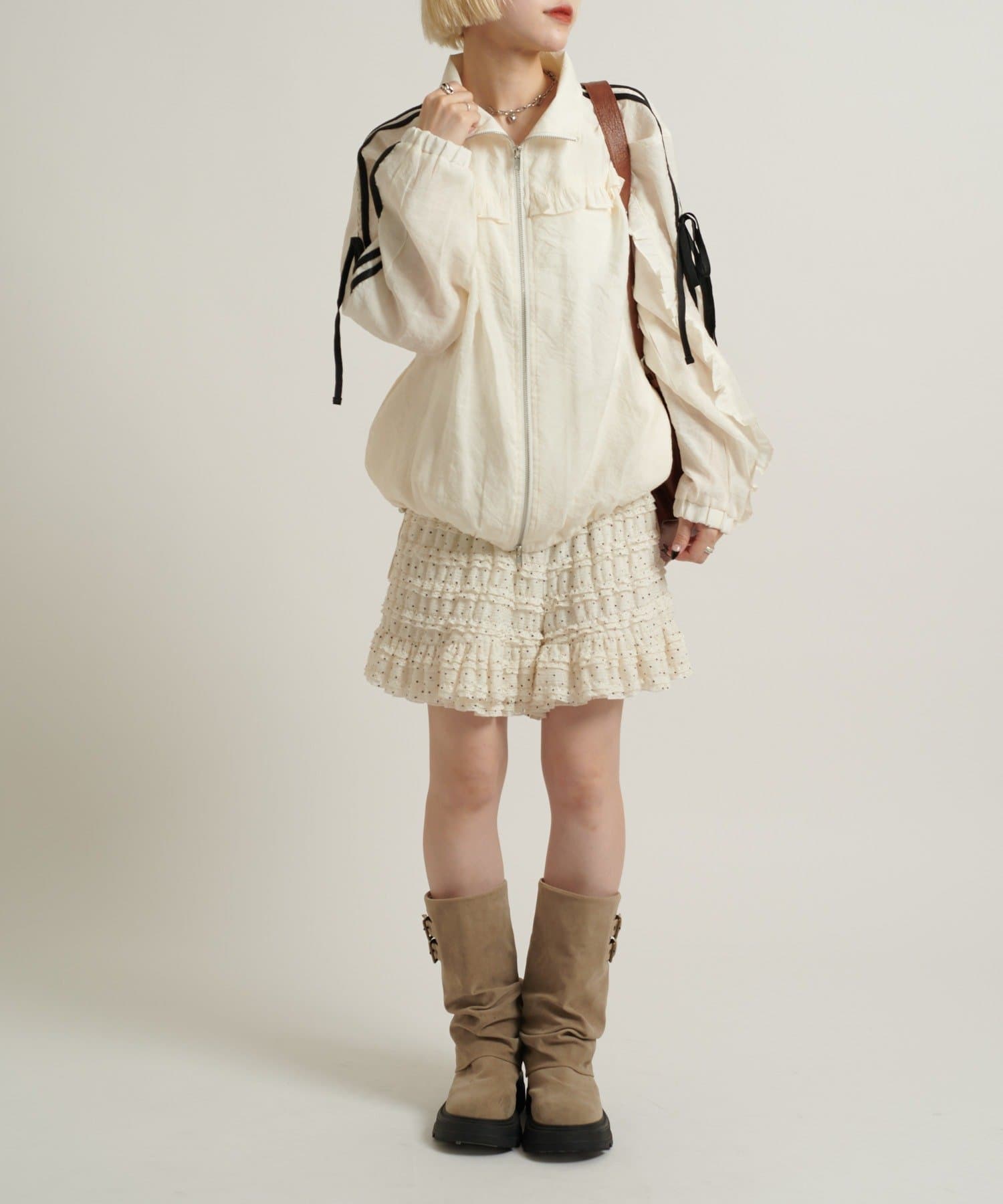 定番のフリルブルゾンがレース素材も加えアップデートして登場♡