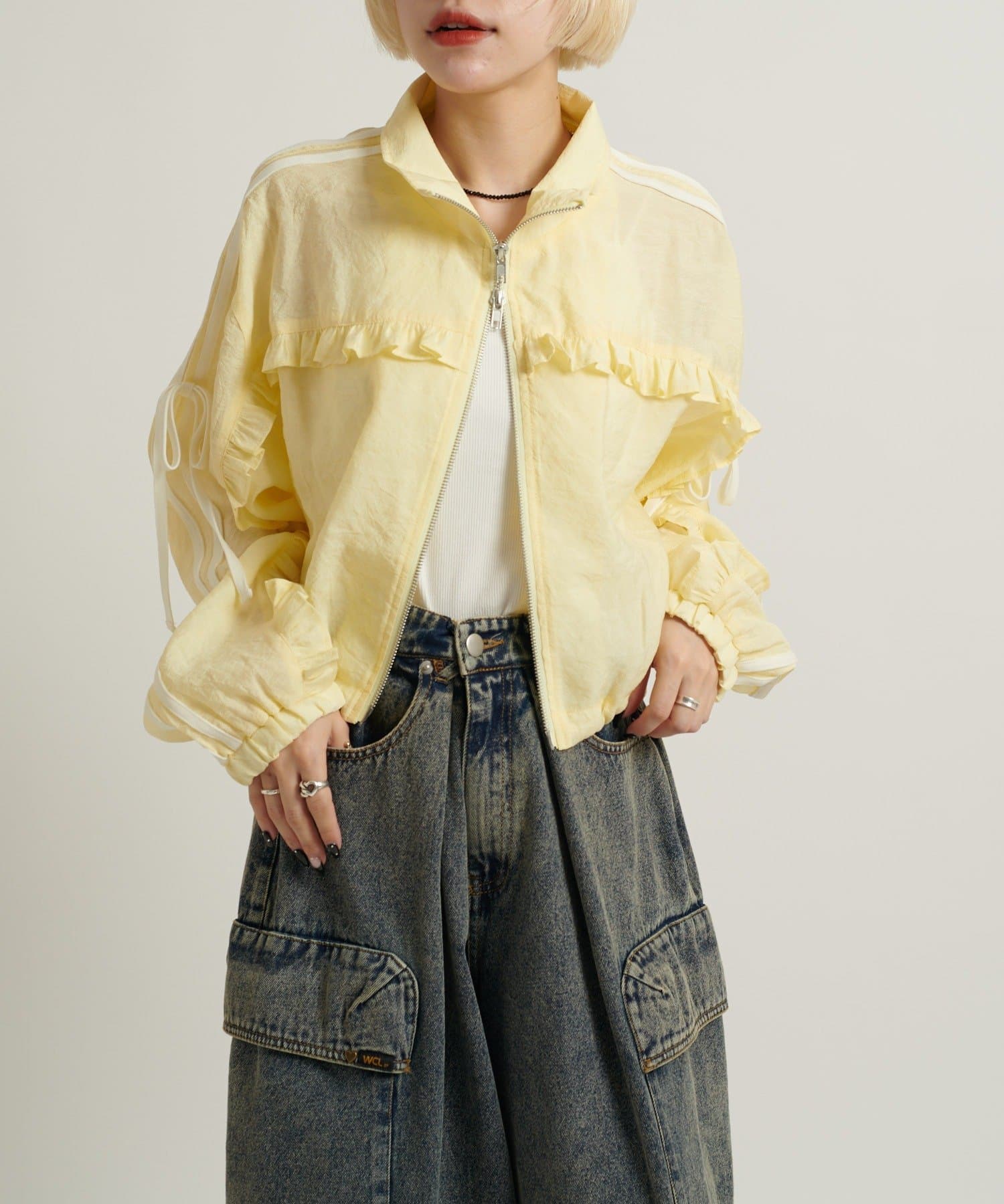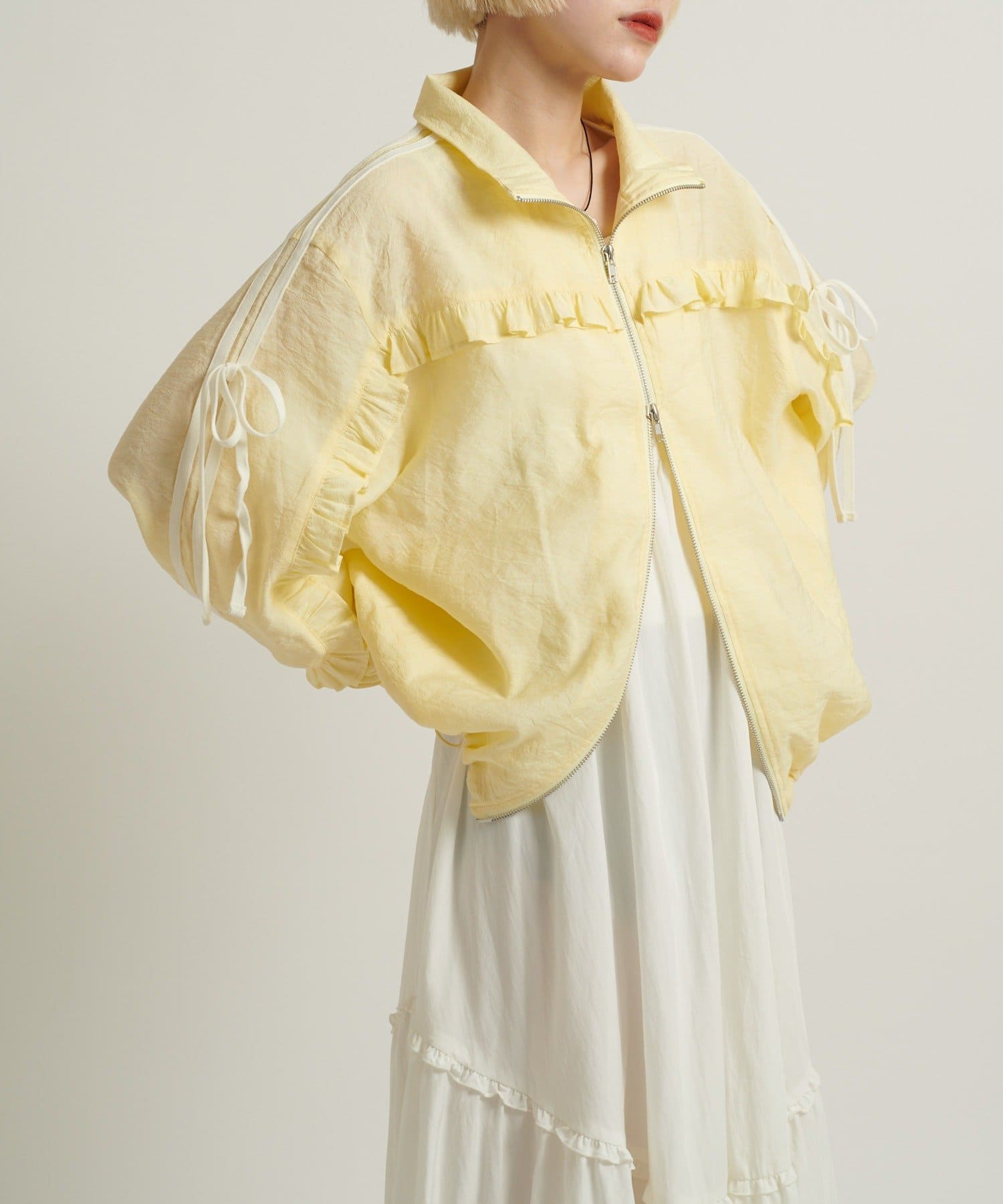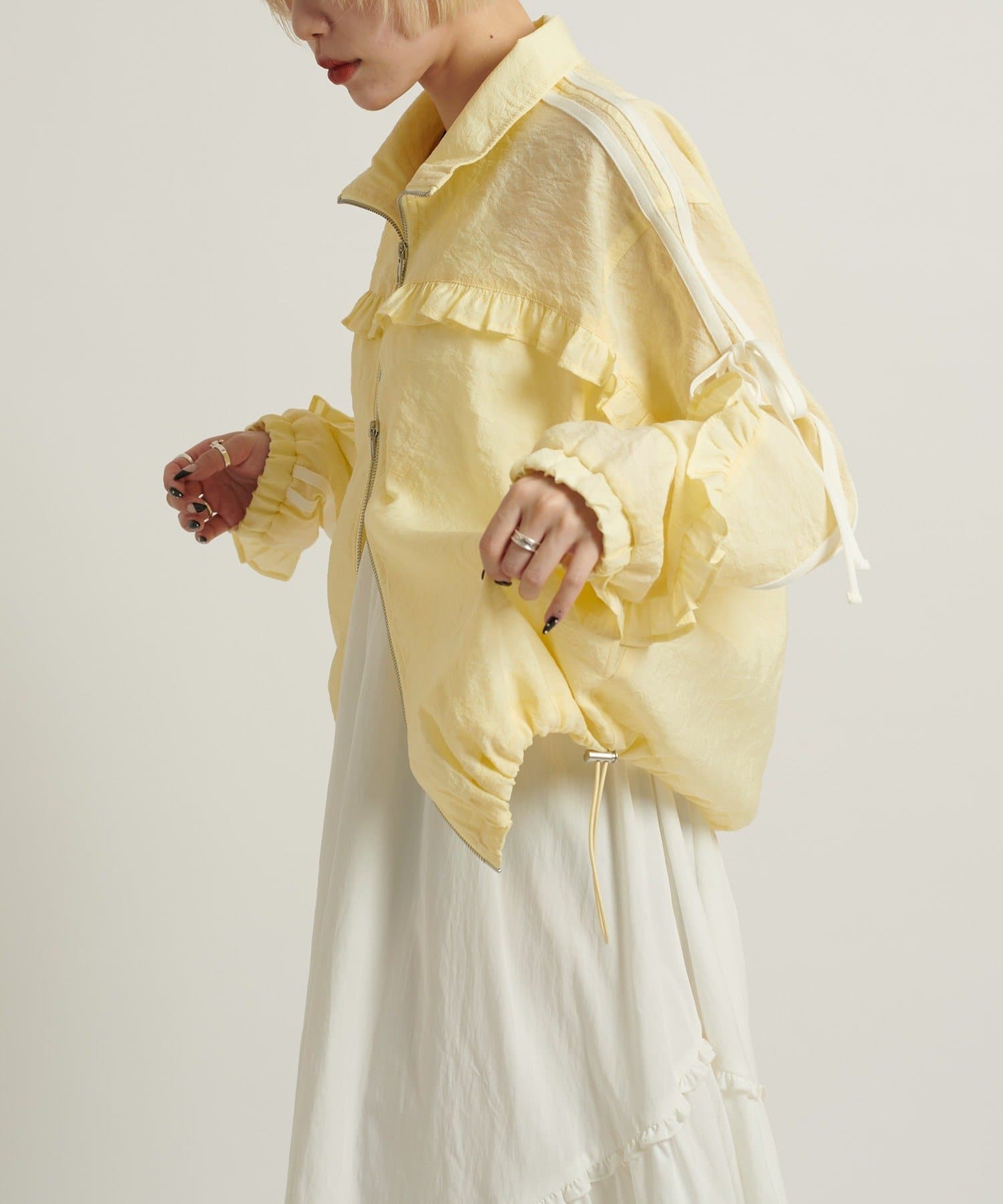 【2サイズ展開/5色展開】シアーフリルブルゾン