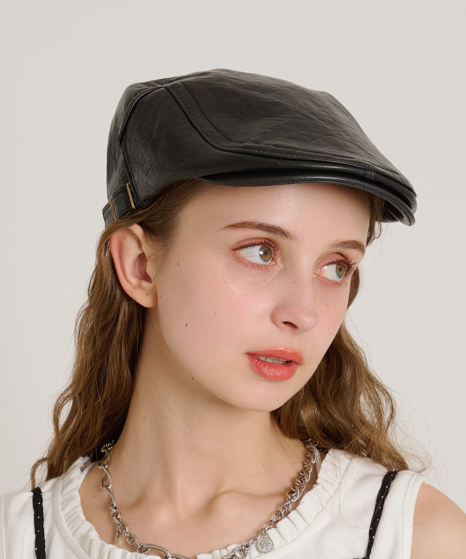 ・柔らかいフェイクレザーのハンチング