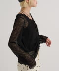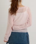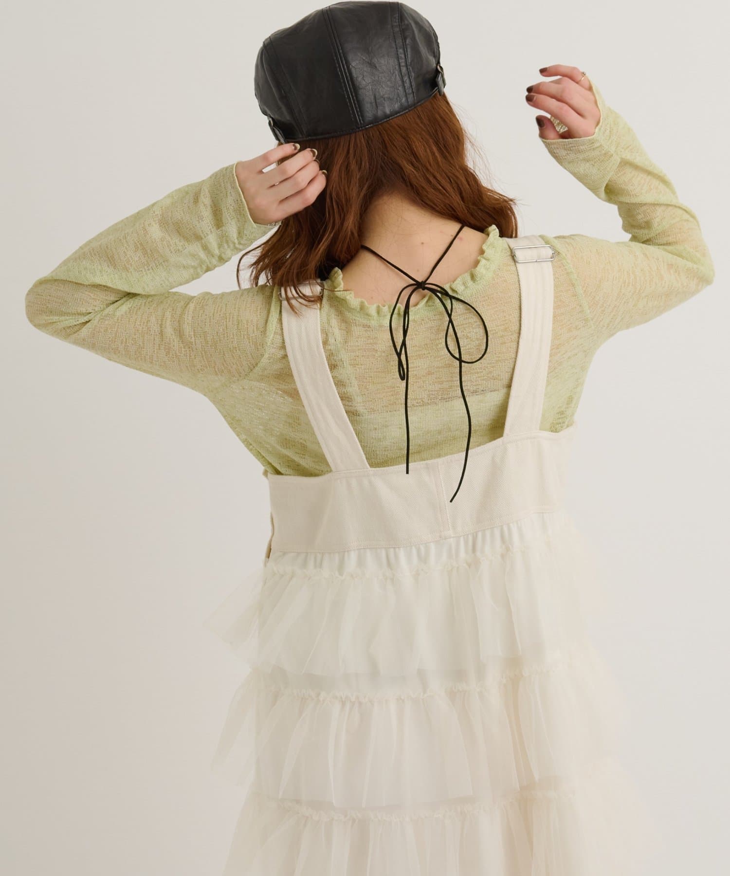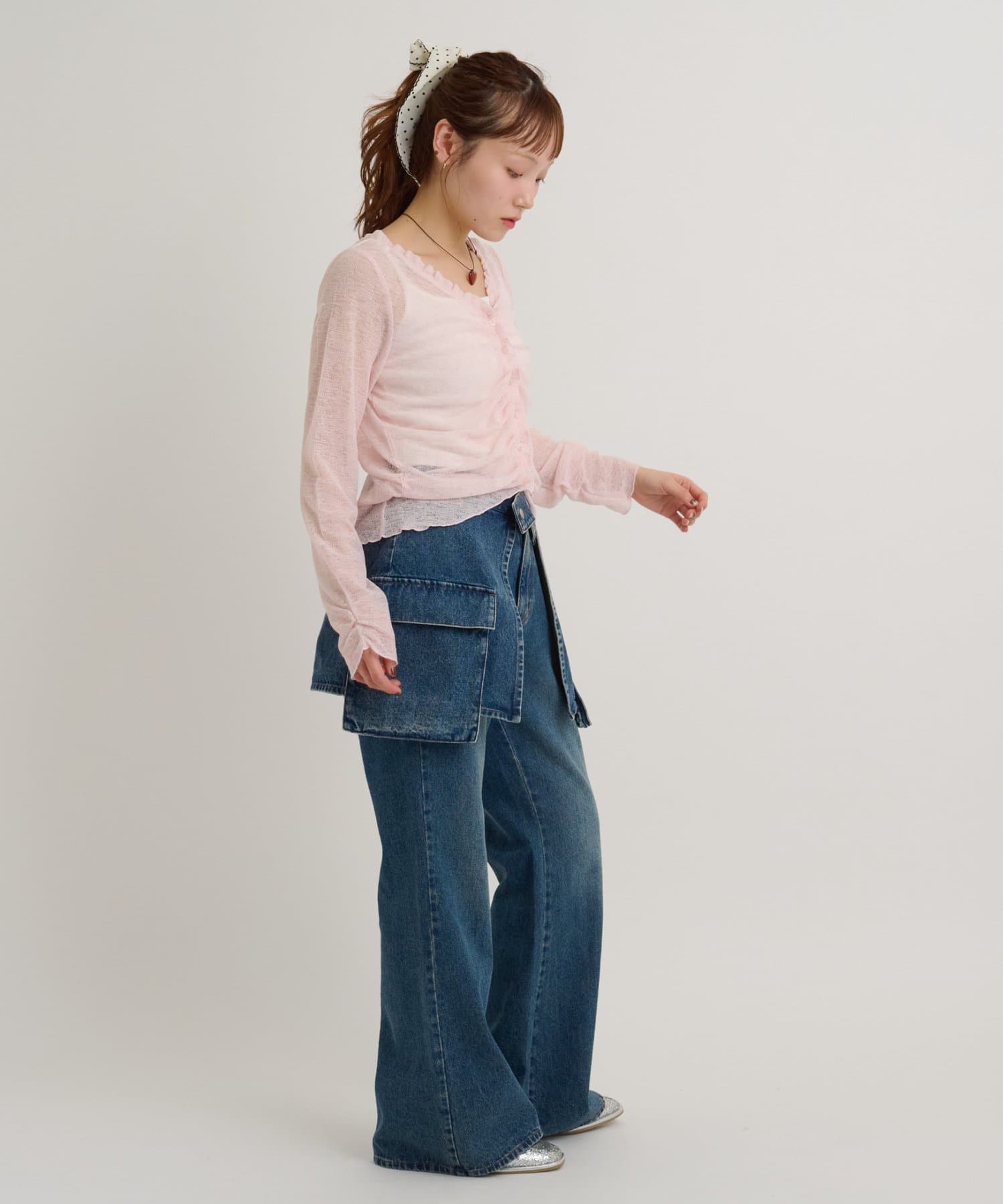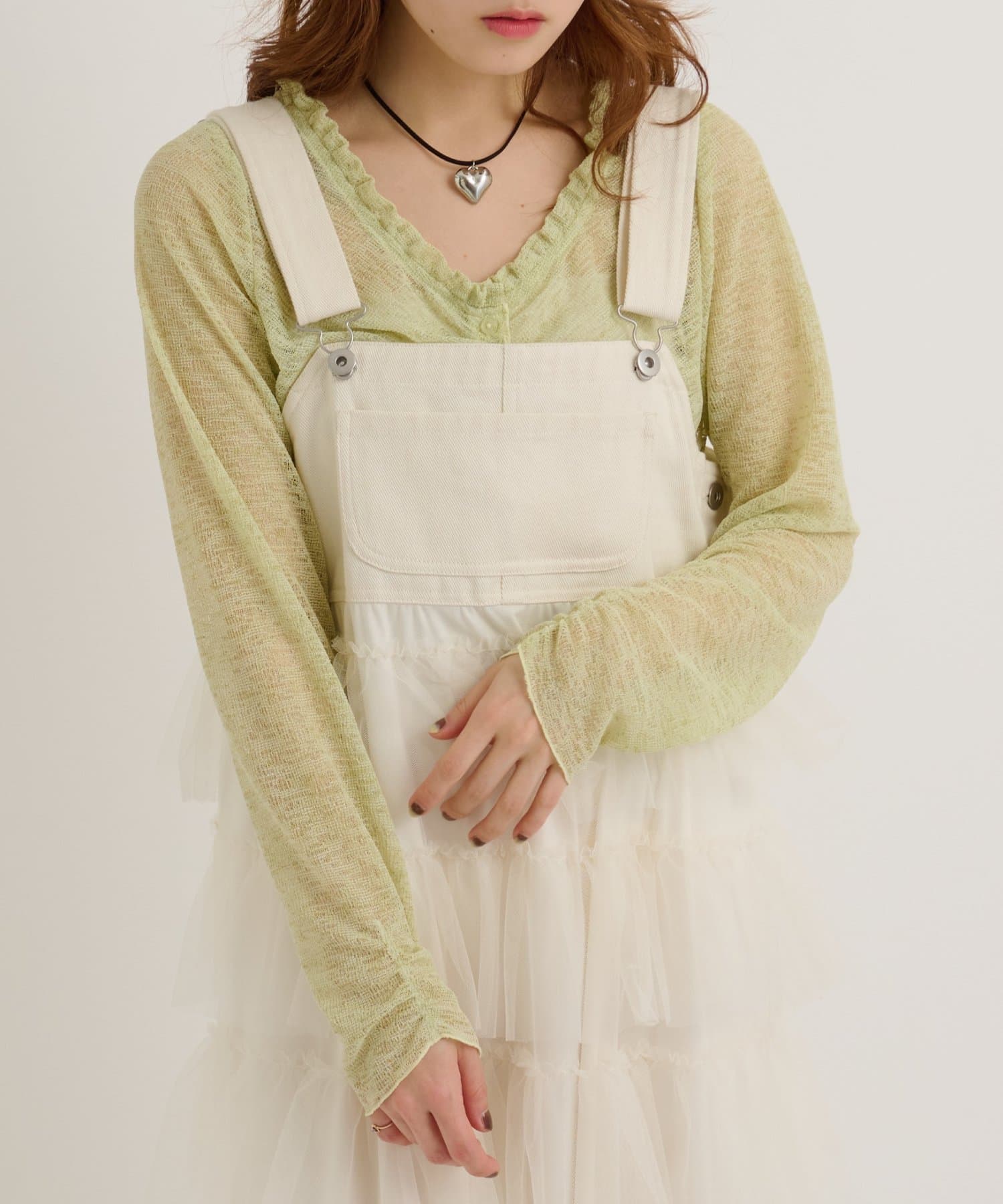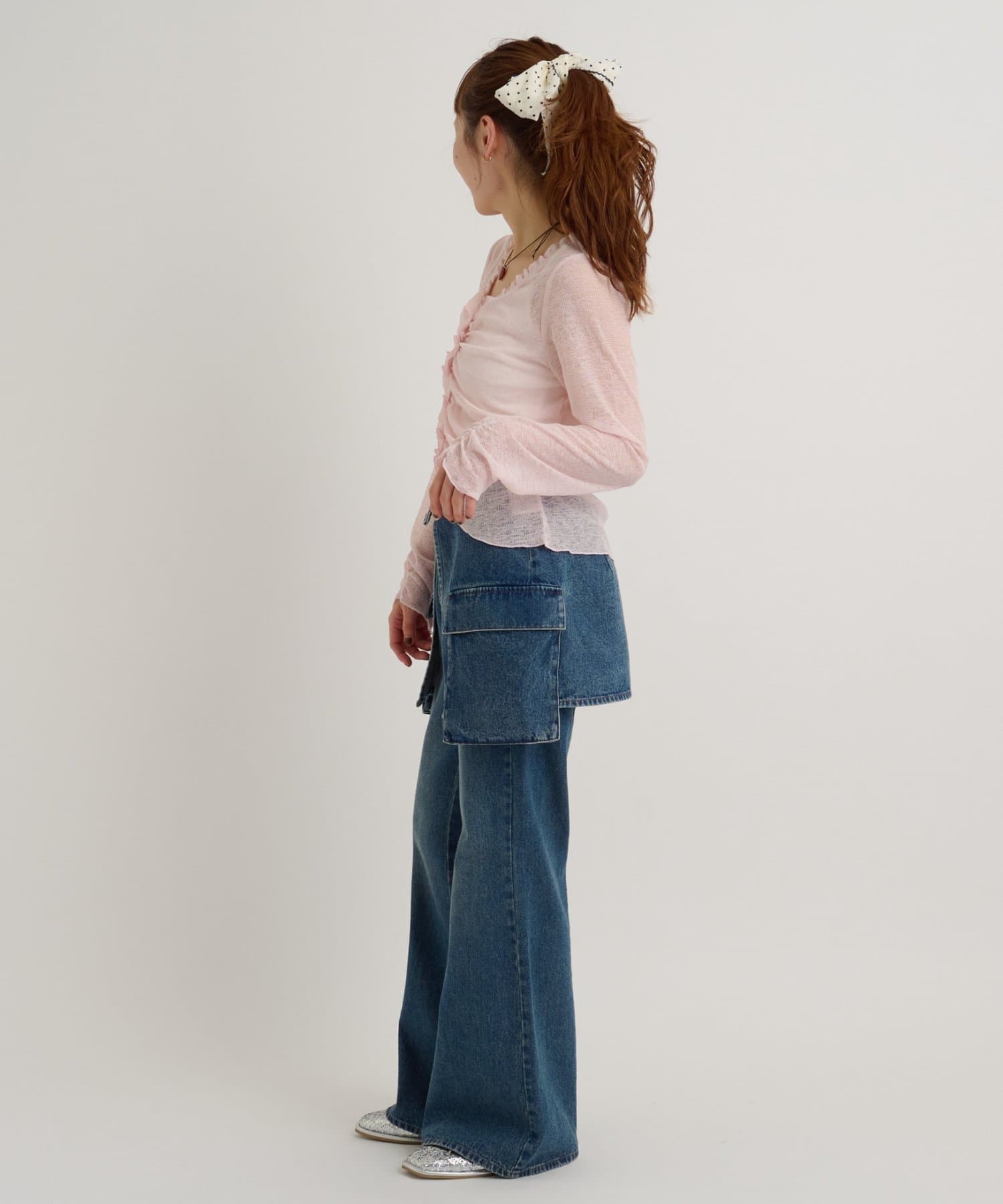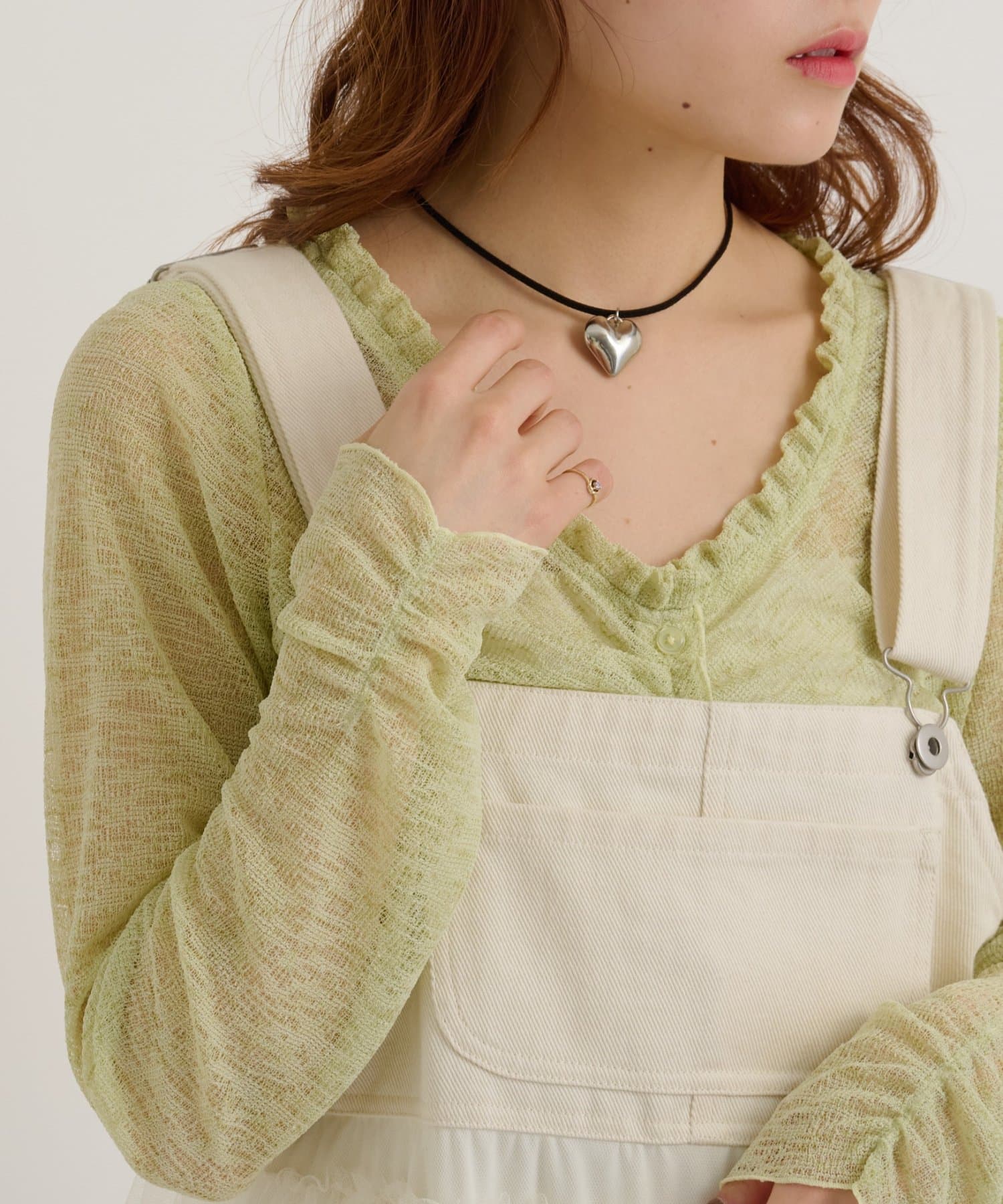 ・胸元のフリルが女性らしい印象のシアーカーディガン