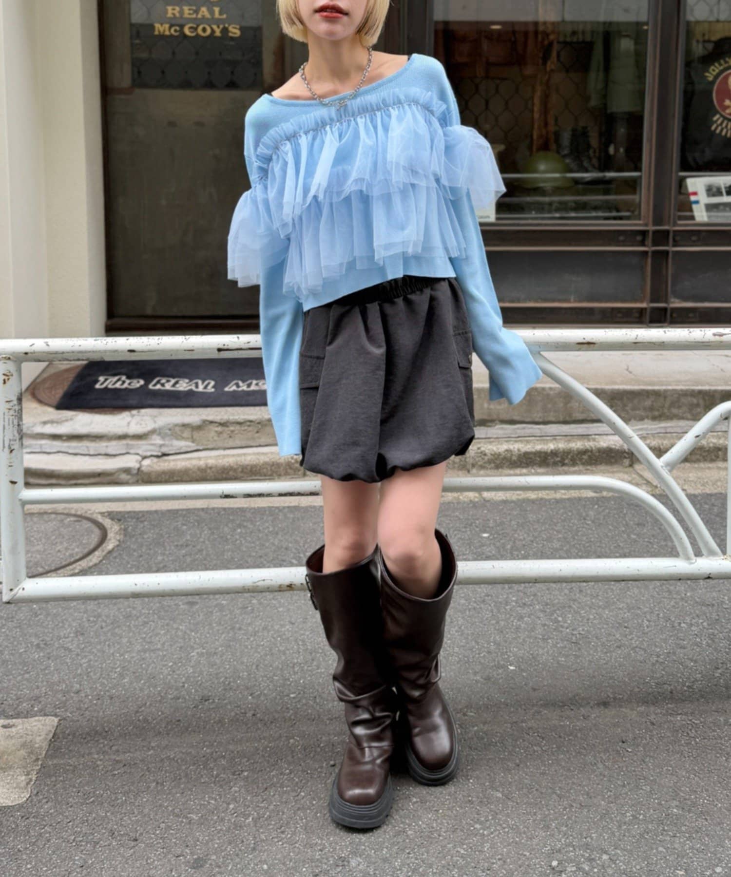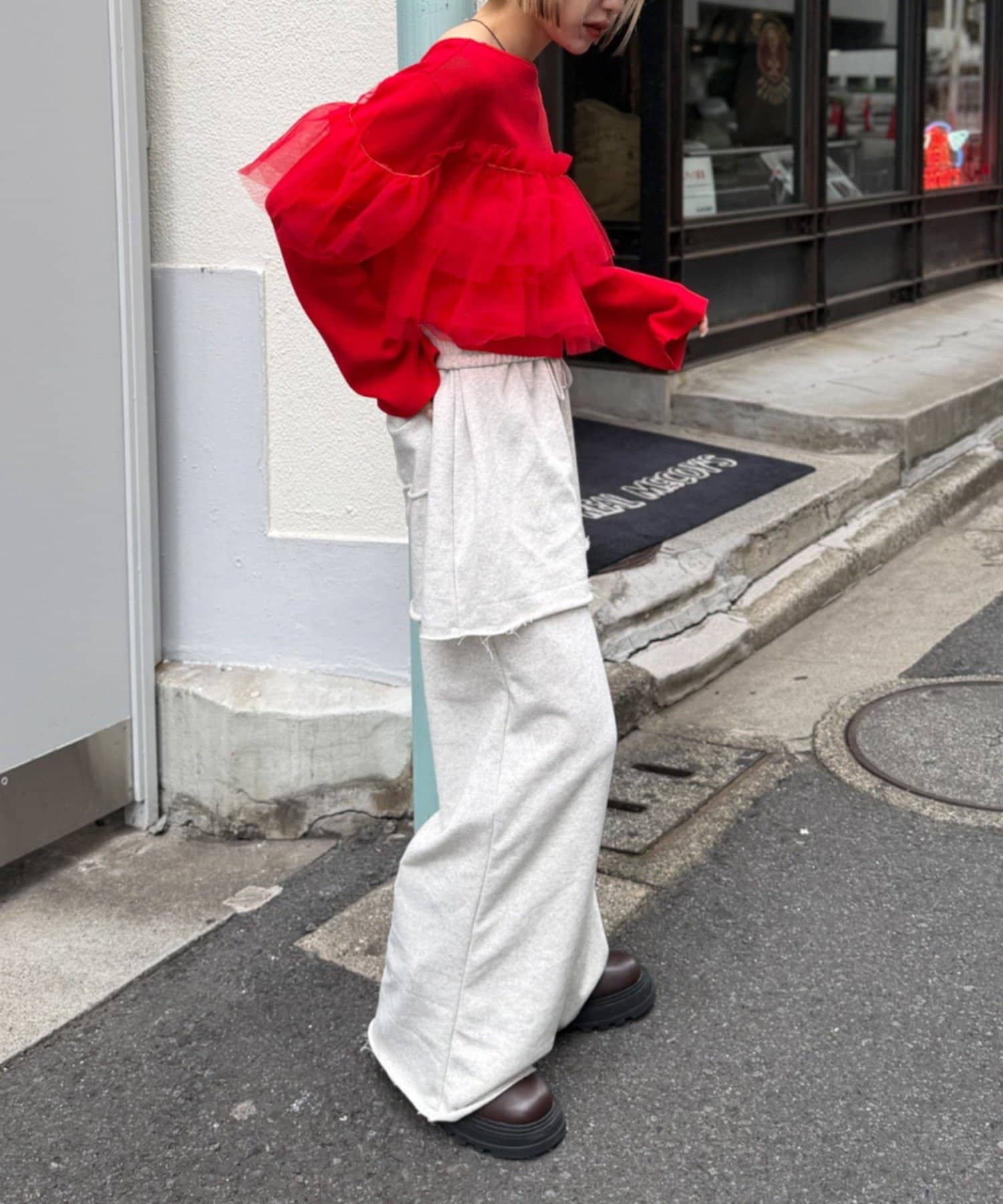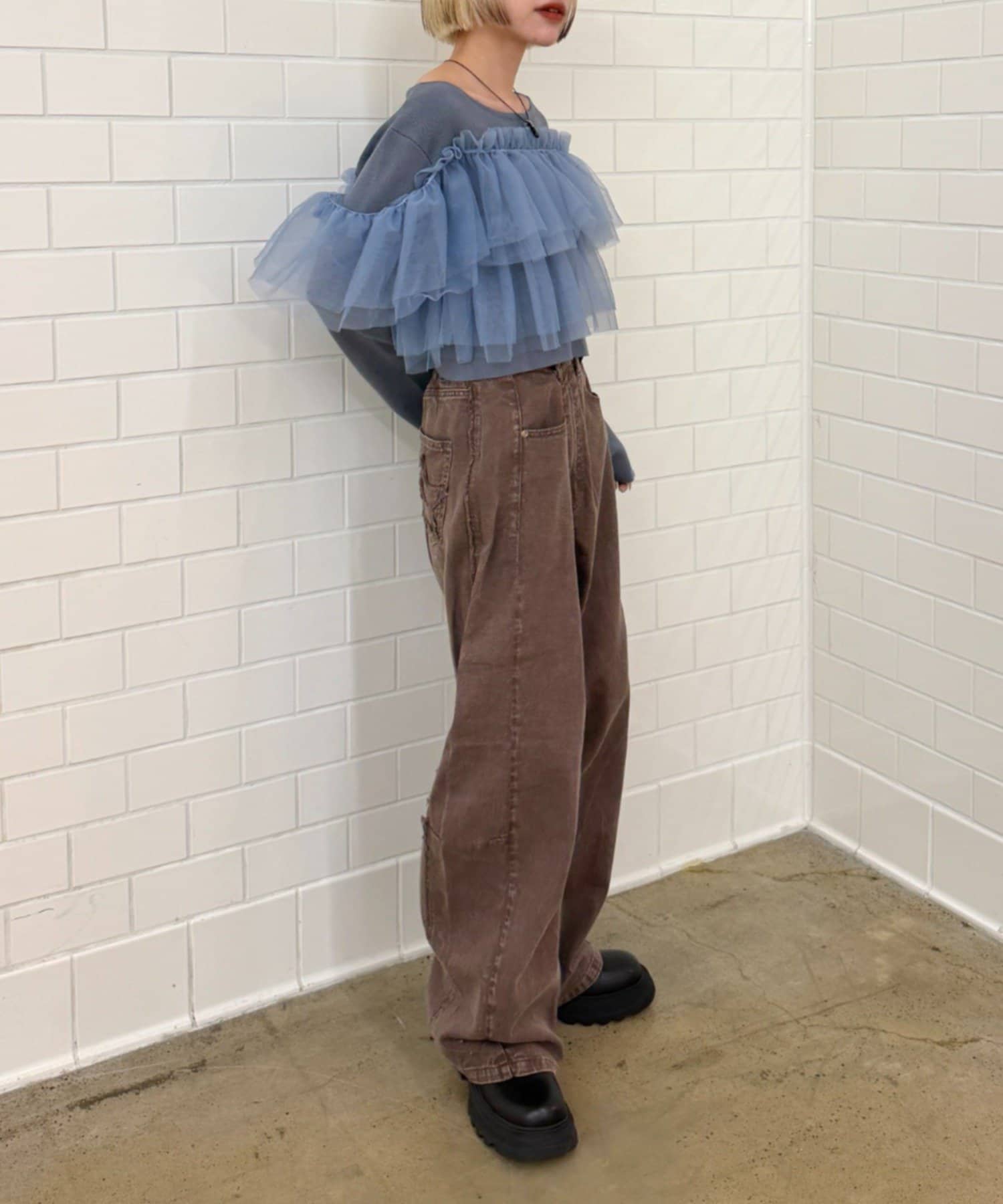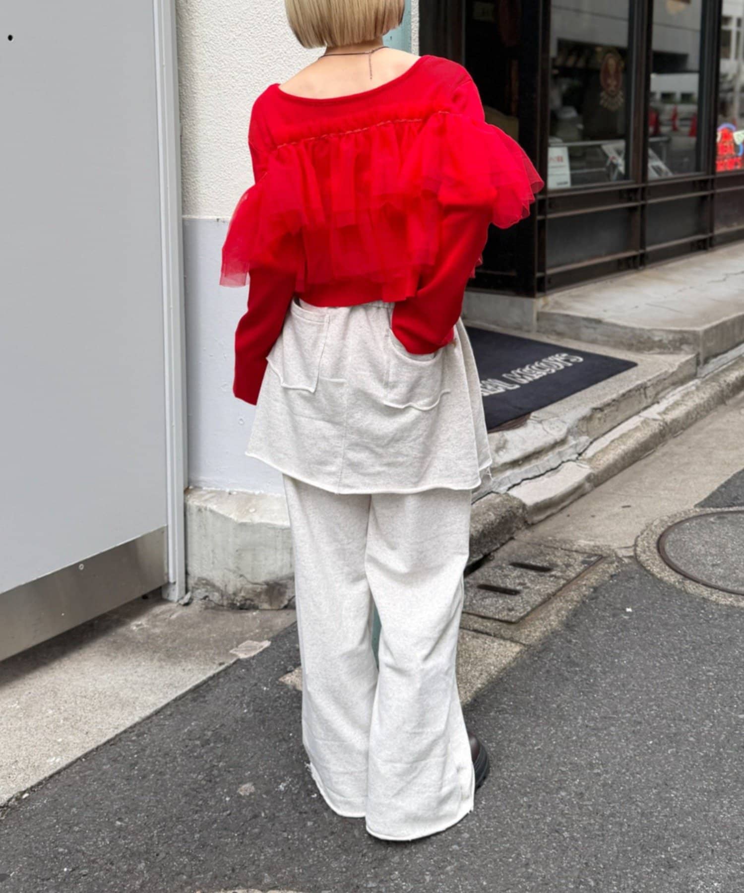 ・少し着丈が短めでハイウエストのアイテムをインしてごわつく心配なし♪