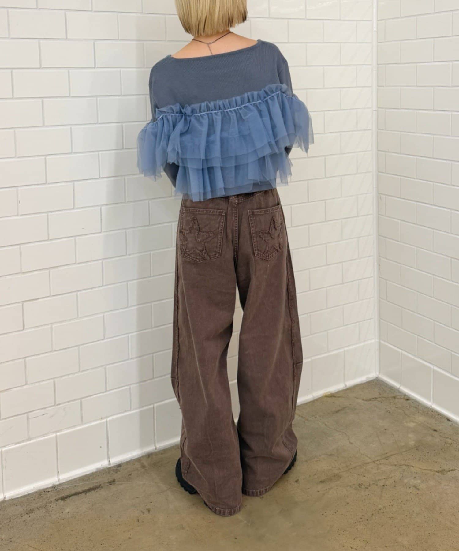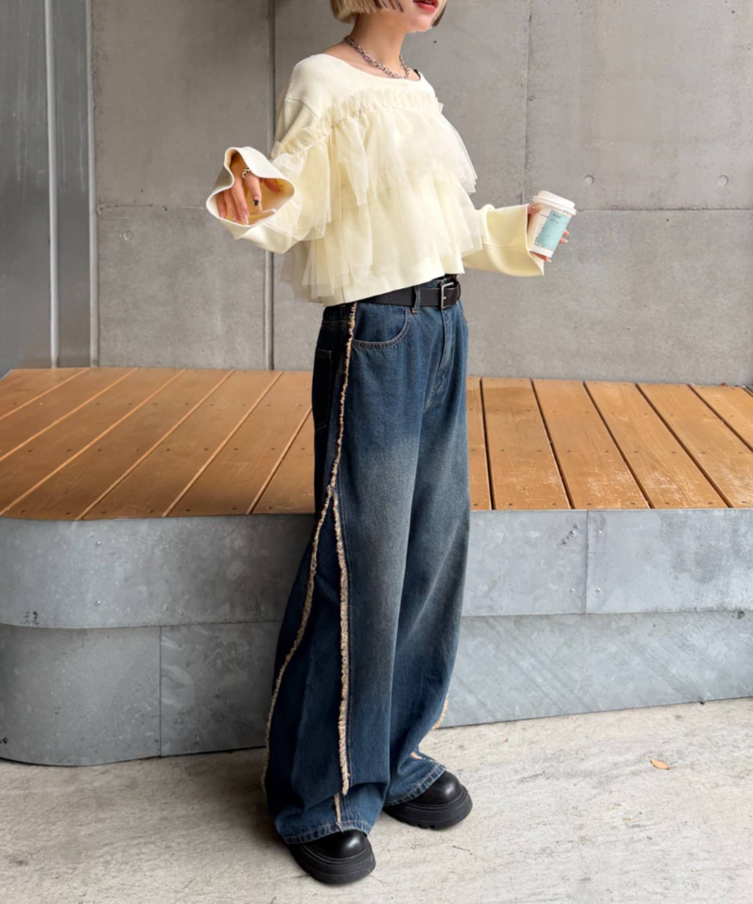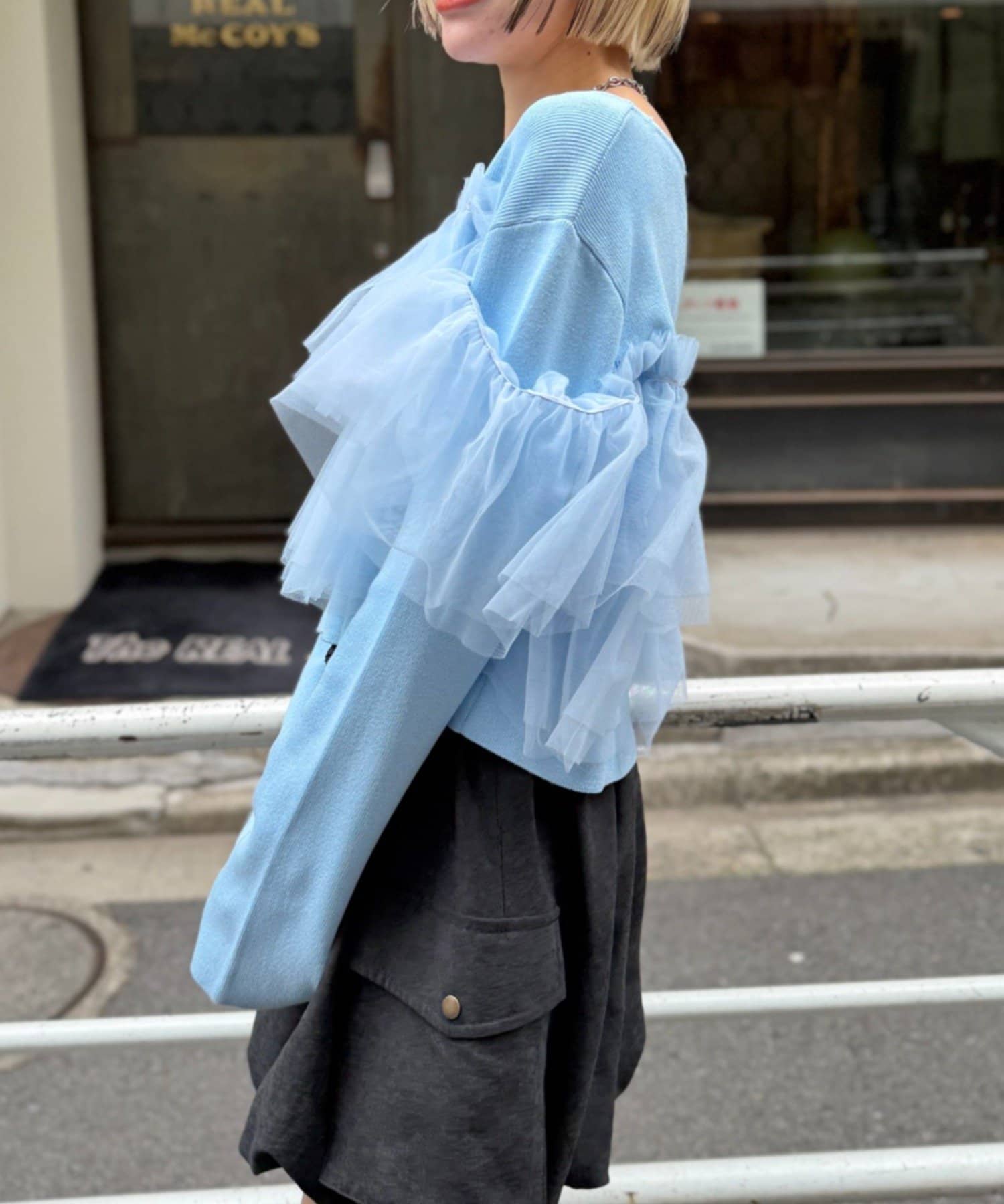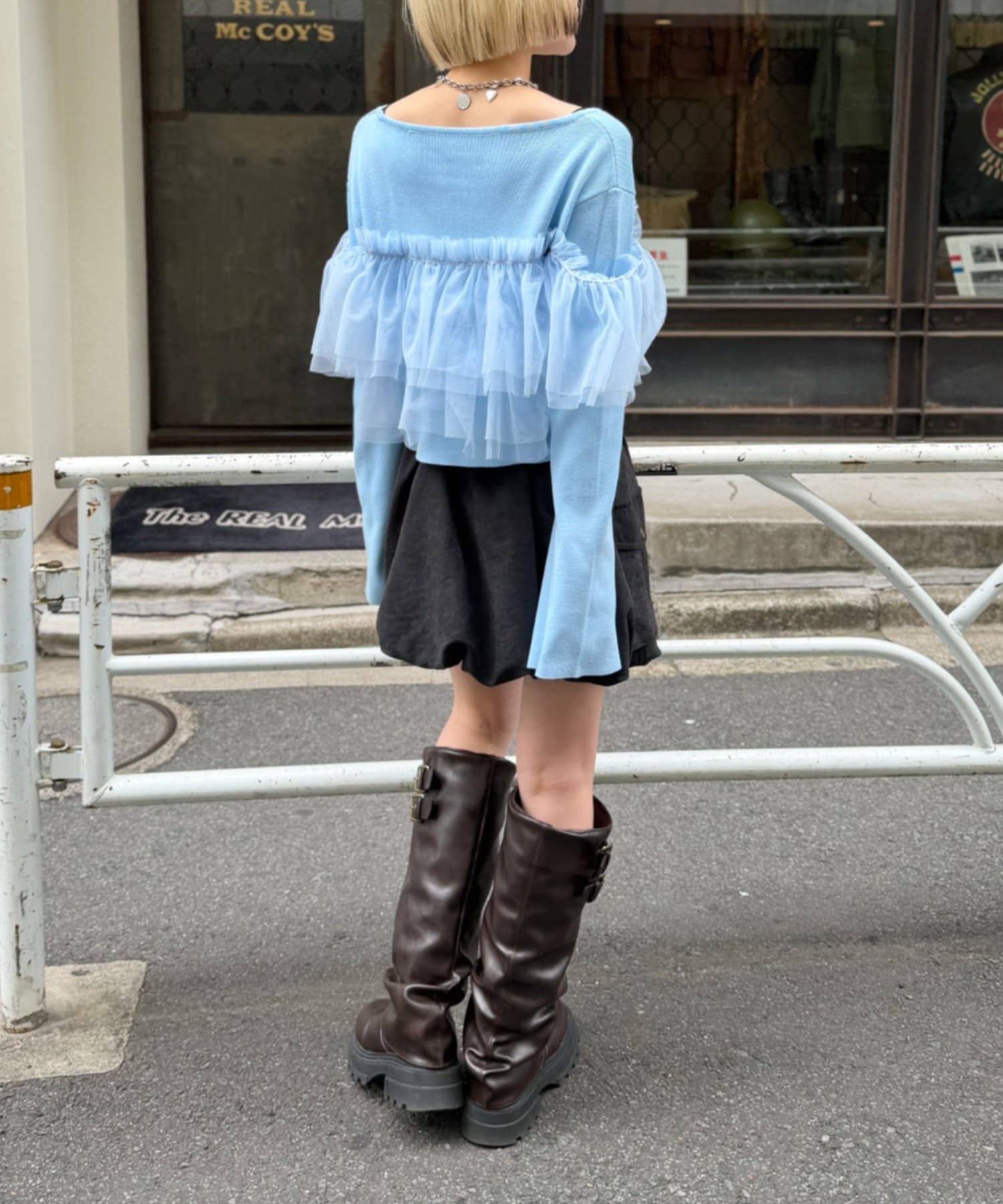・少し着丈が短めでハイウエストのアイテムをインしてごわつく心配なし♪